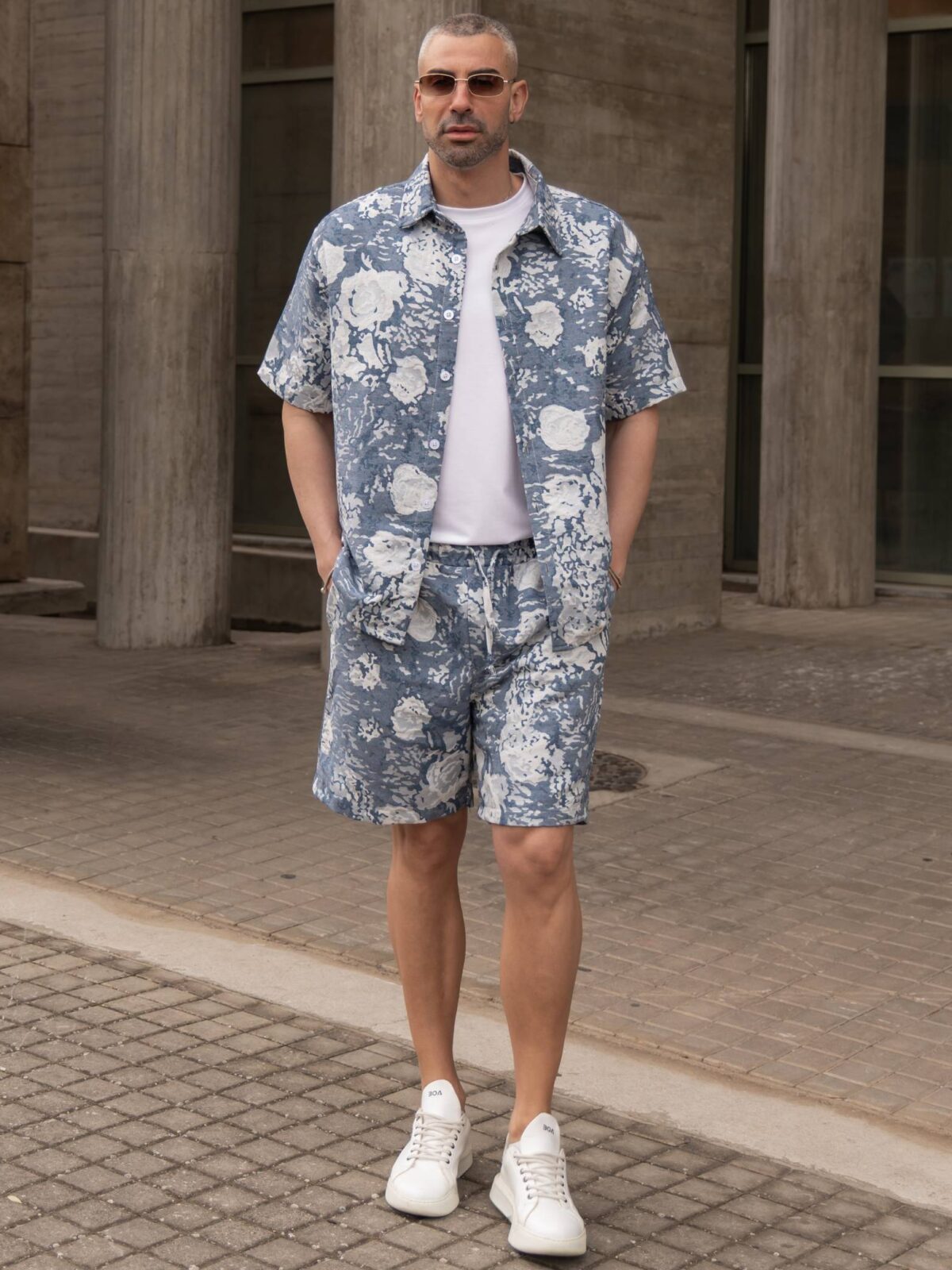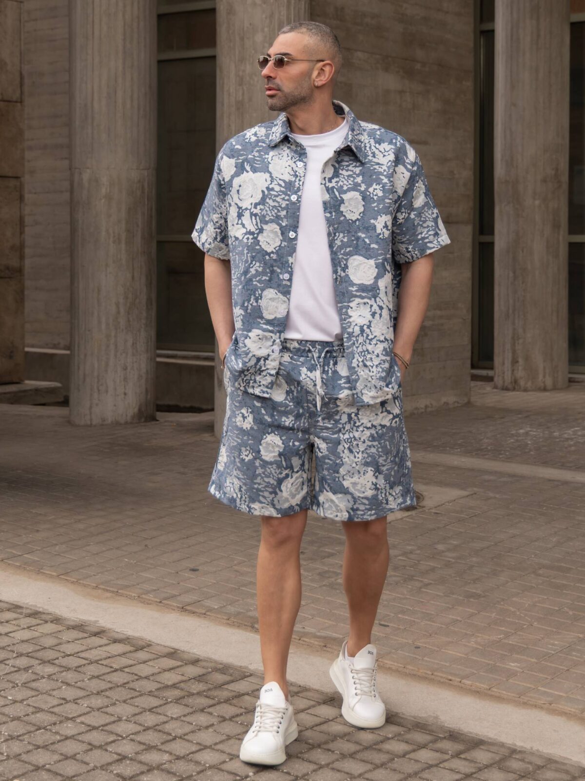 Πουκάμισο γκρι 3/4 μανίκι με βερμούδα σε oversized γραμμή