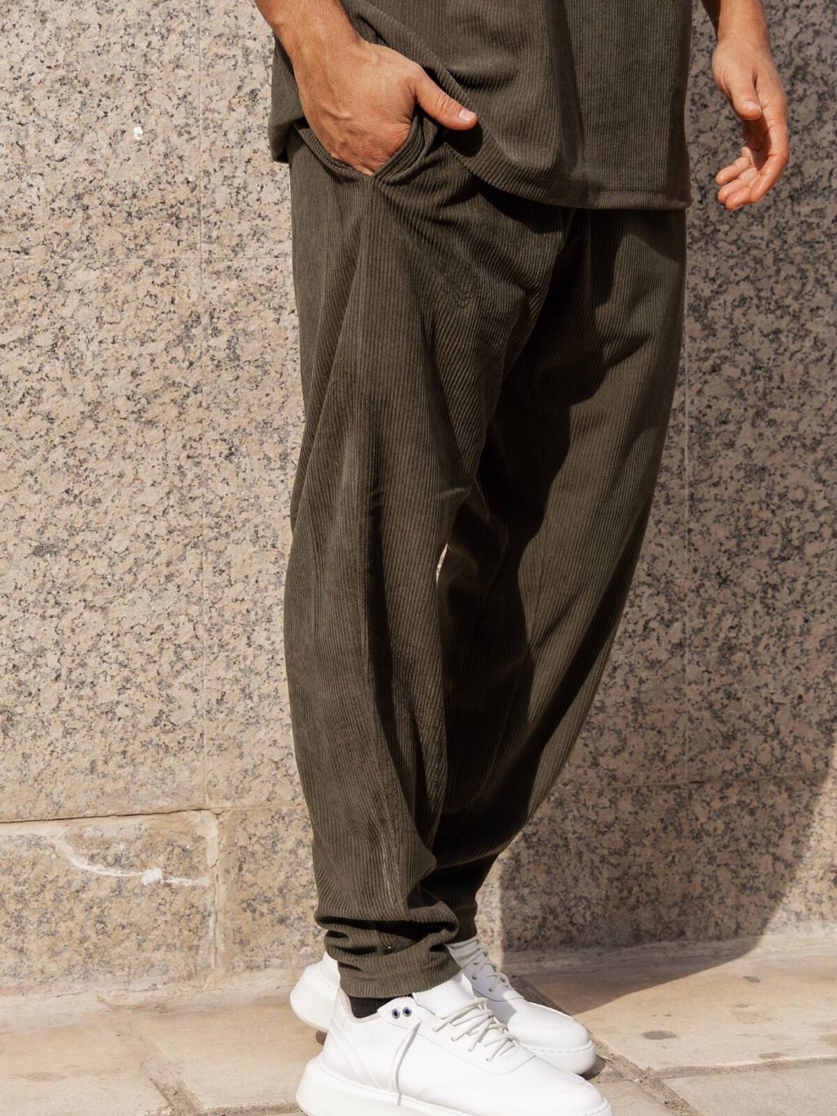 Παντελόνι χακί κοτλέ σε oversized γραμμή