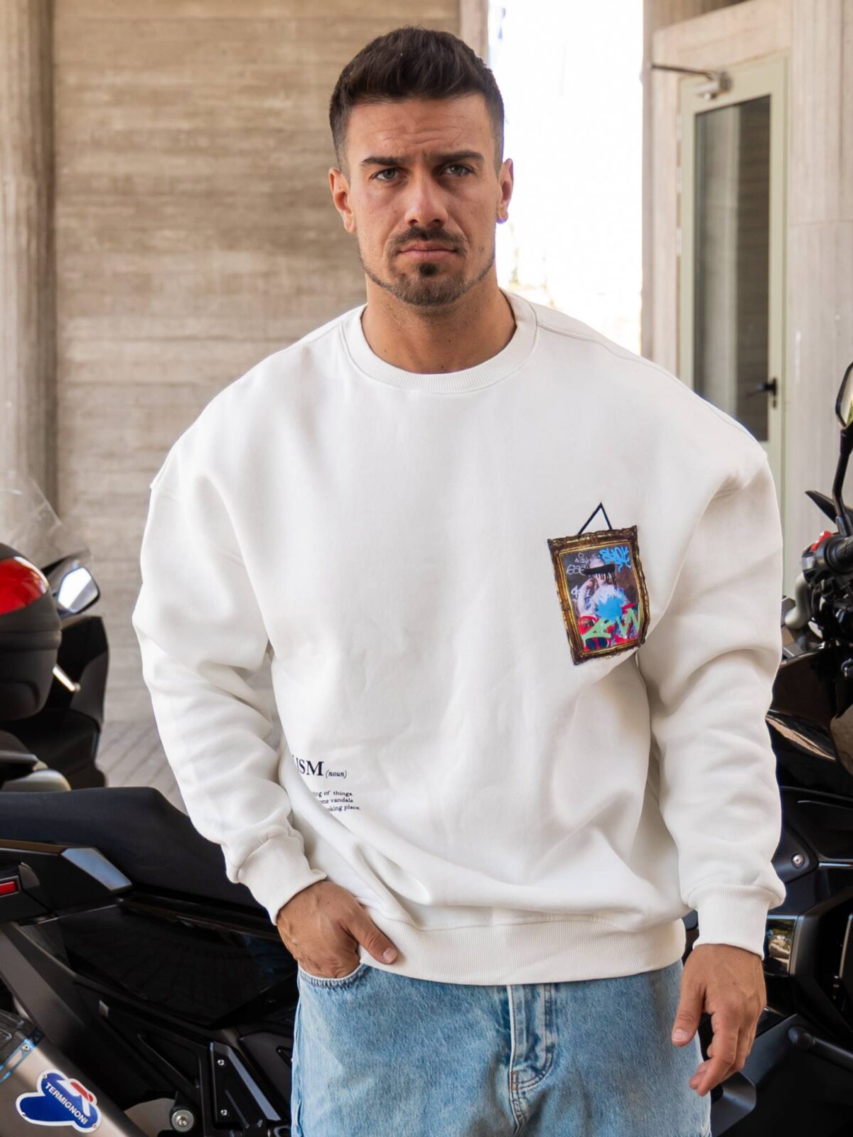 Φούτερ λευκό με στάμπα σε oversized γραμμή