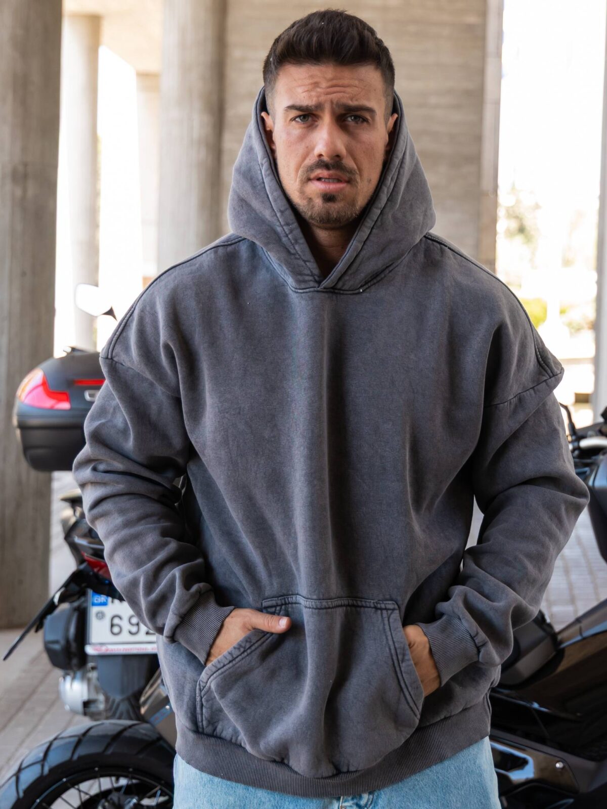 Φούτερ πετροπλυμένο με κουκούλα σε oversized γραμμή