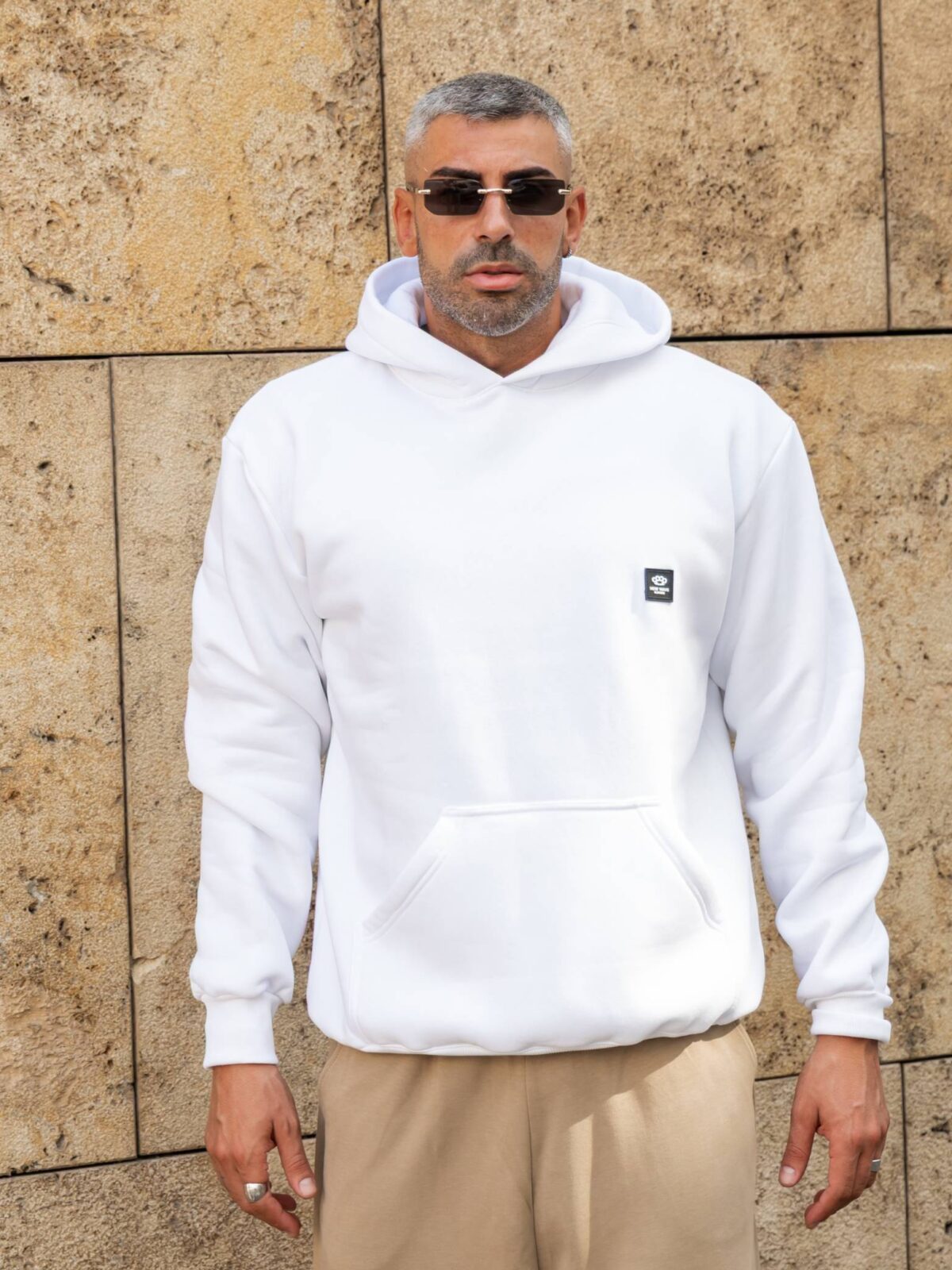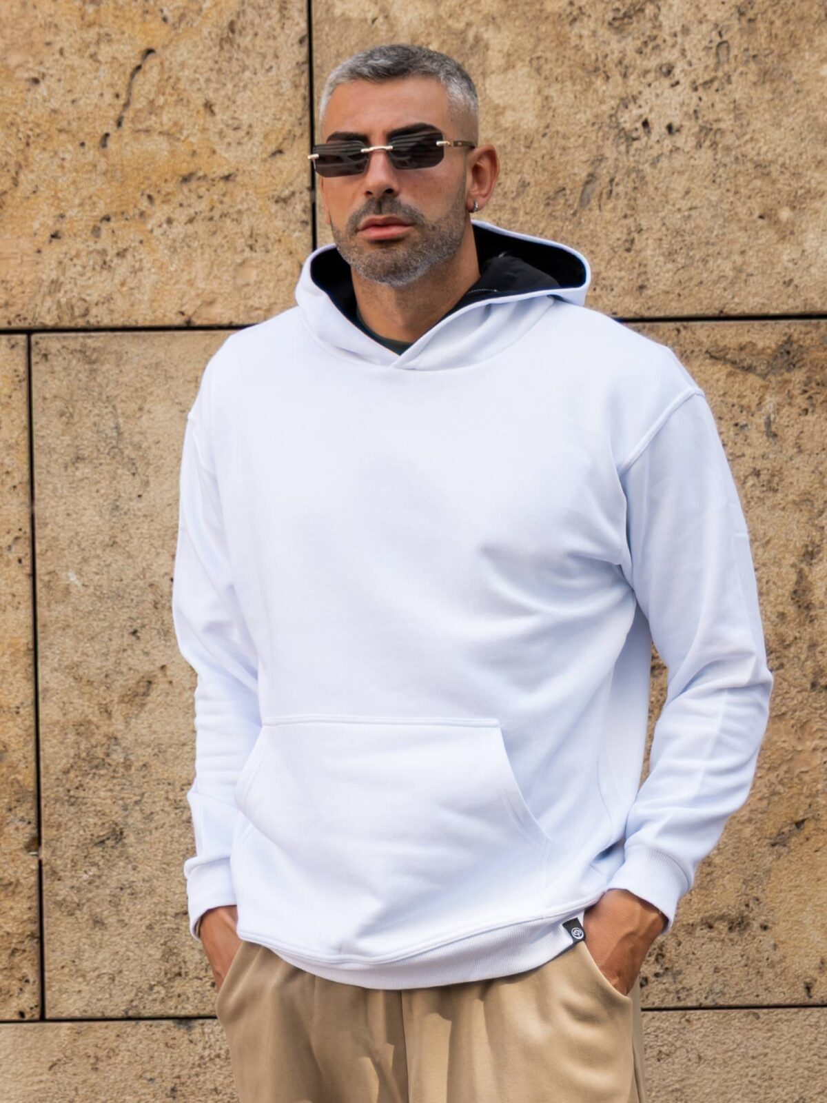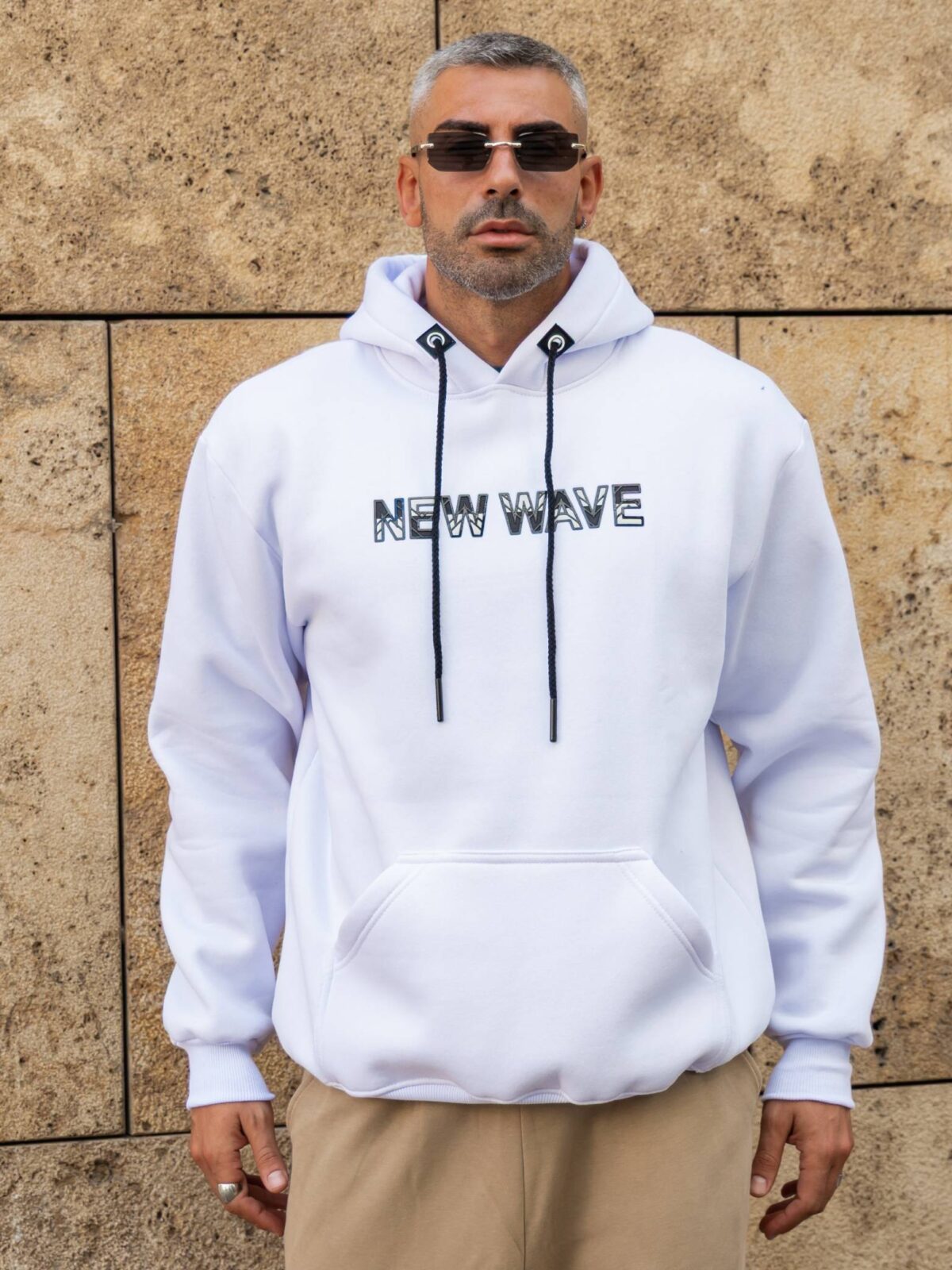 Φούτερ λευκό με κουκούλα σε oversized γραμμή