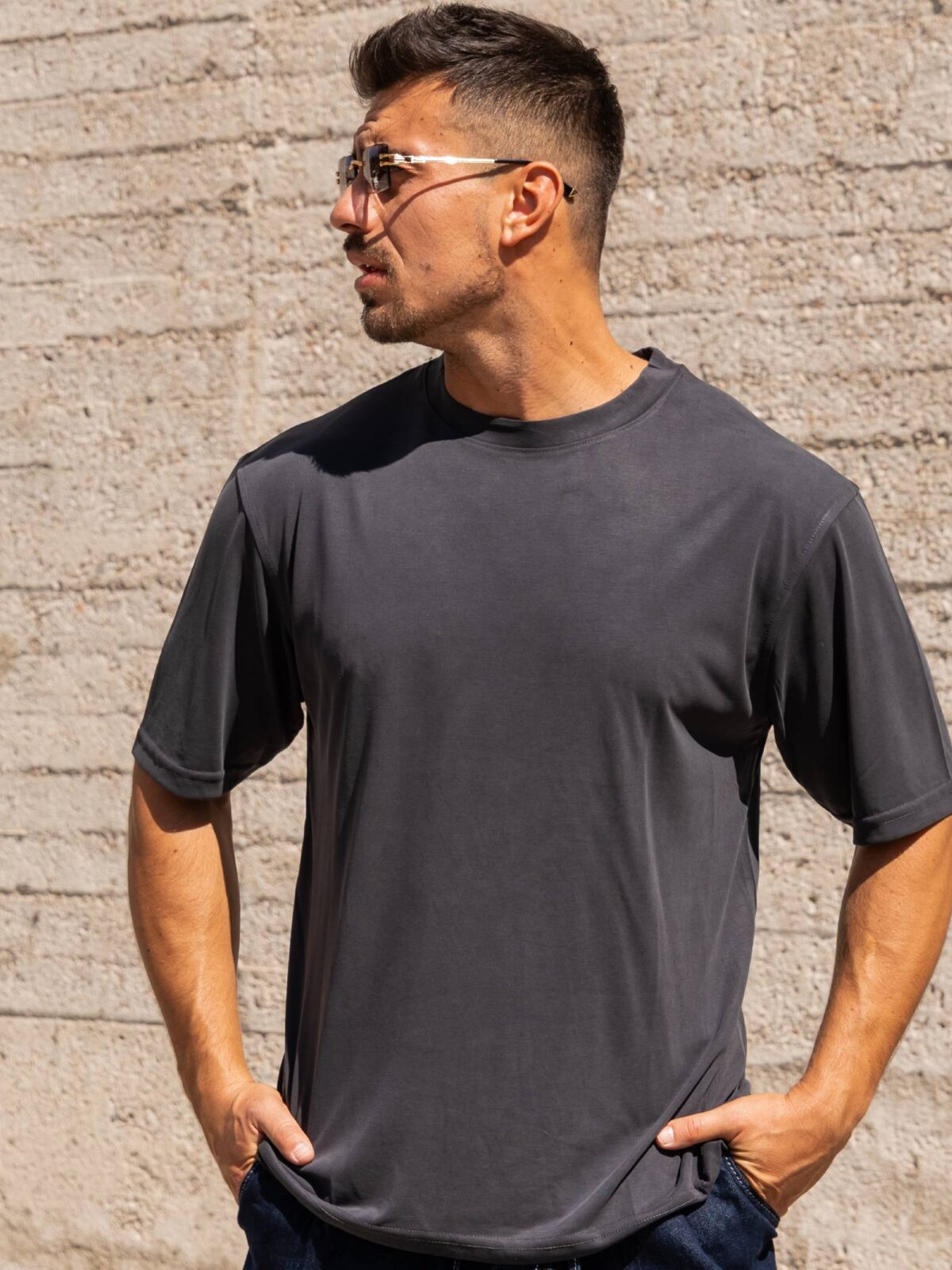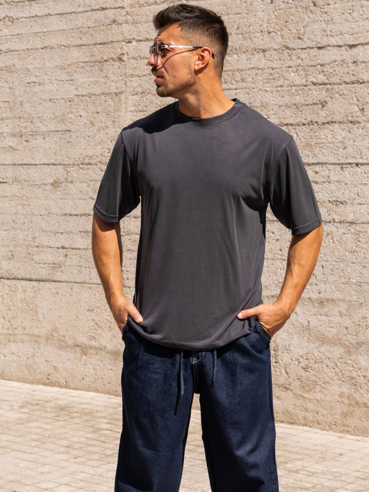 Φούτερ πετροπλυμένο με λαιμόκοψη σε oversized γραμμή