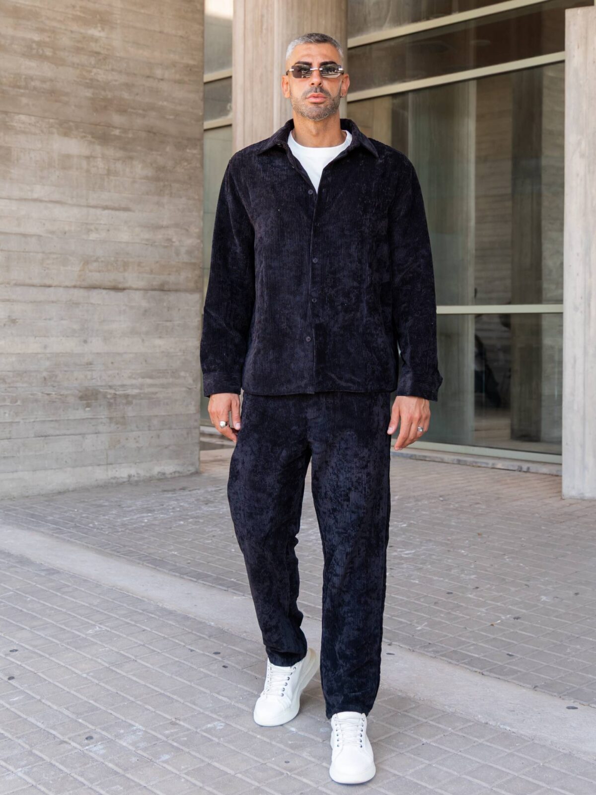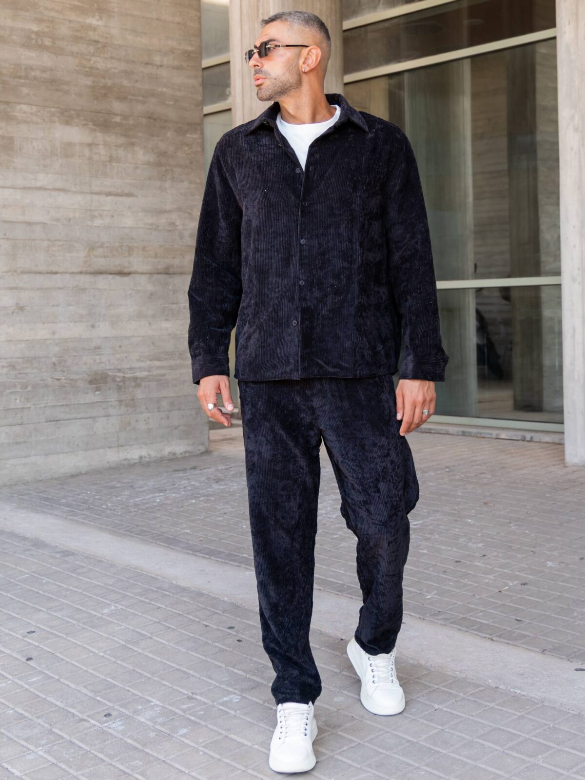 Σετ παντελόνι & πουκάμισο μαύρο κοτλέ σε άνετη γραμμή