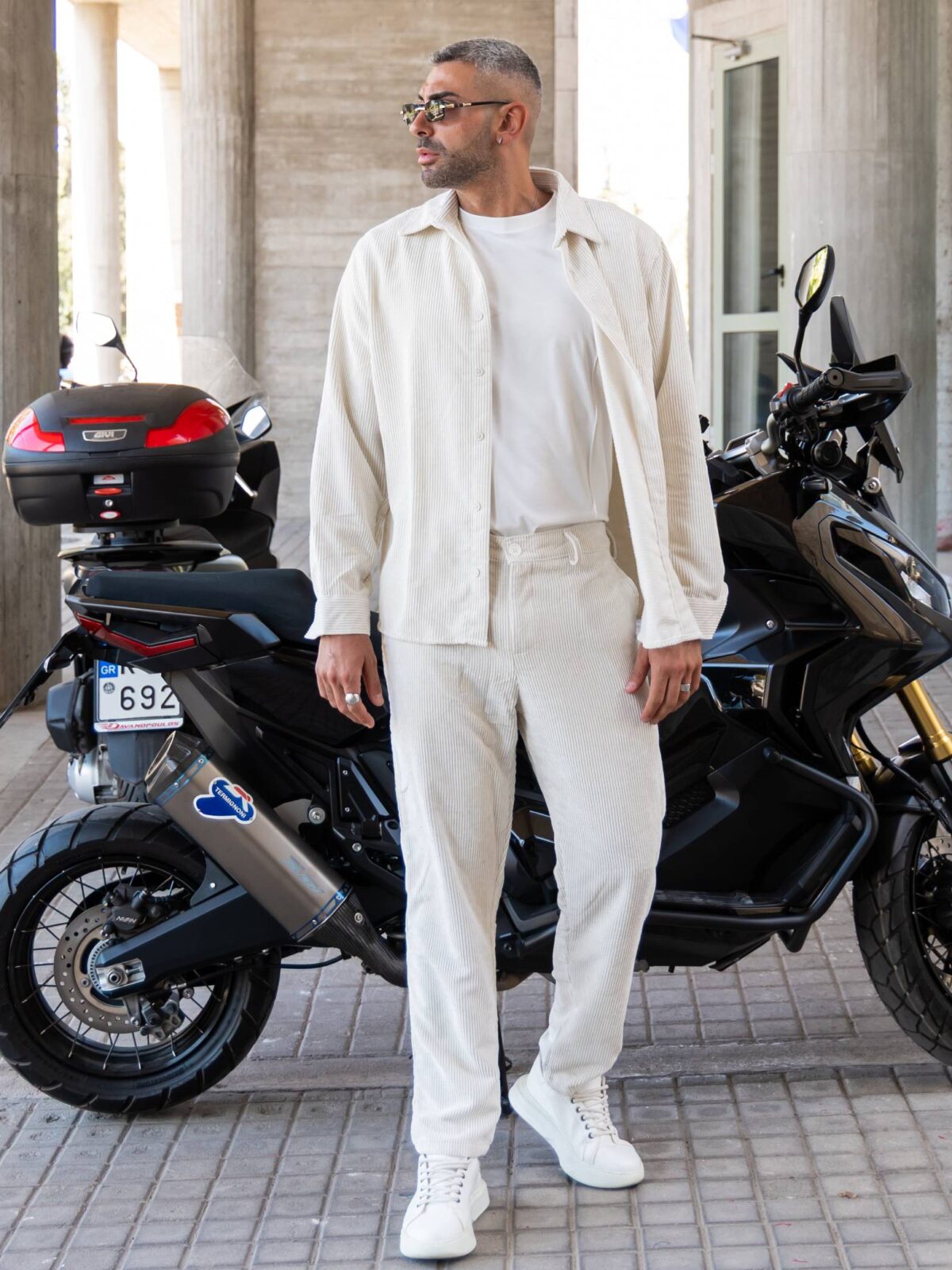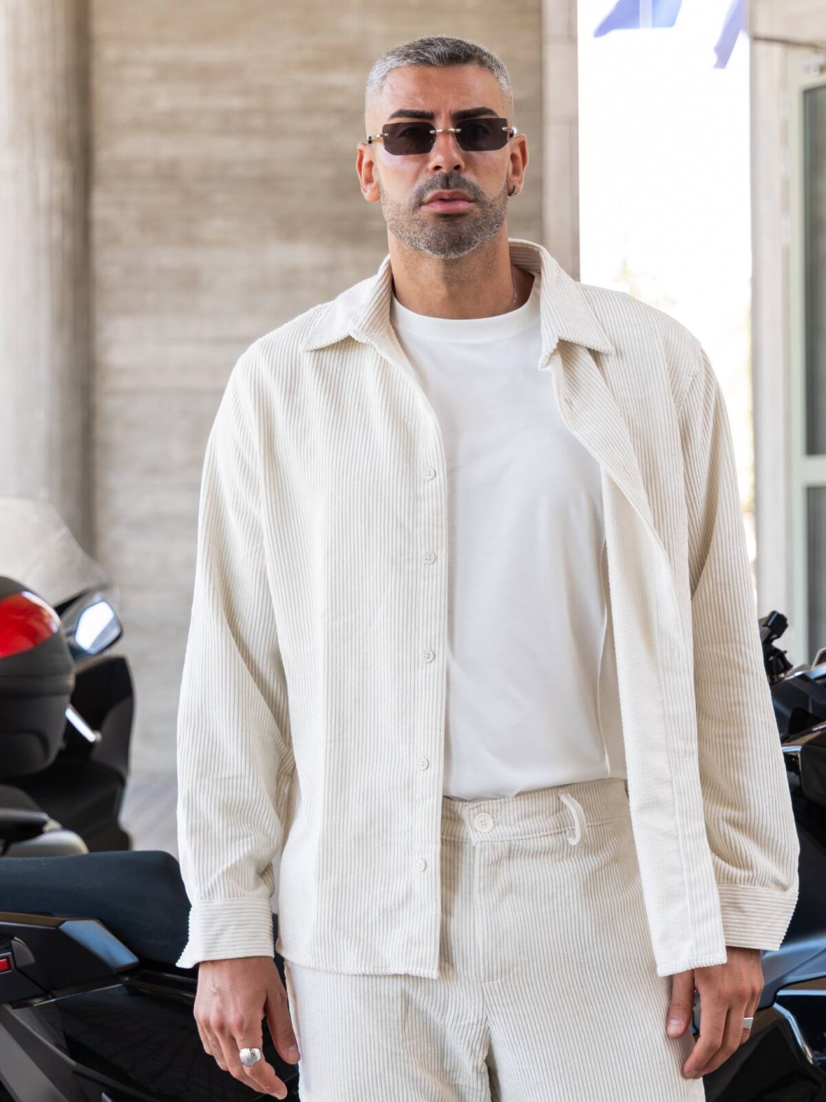 Σετ παντελόνι & πουκάμισο μπεζ κοτλέ σε άνετη γραμμή