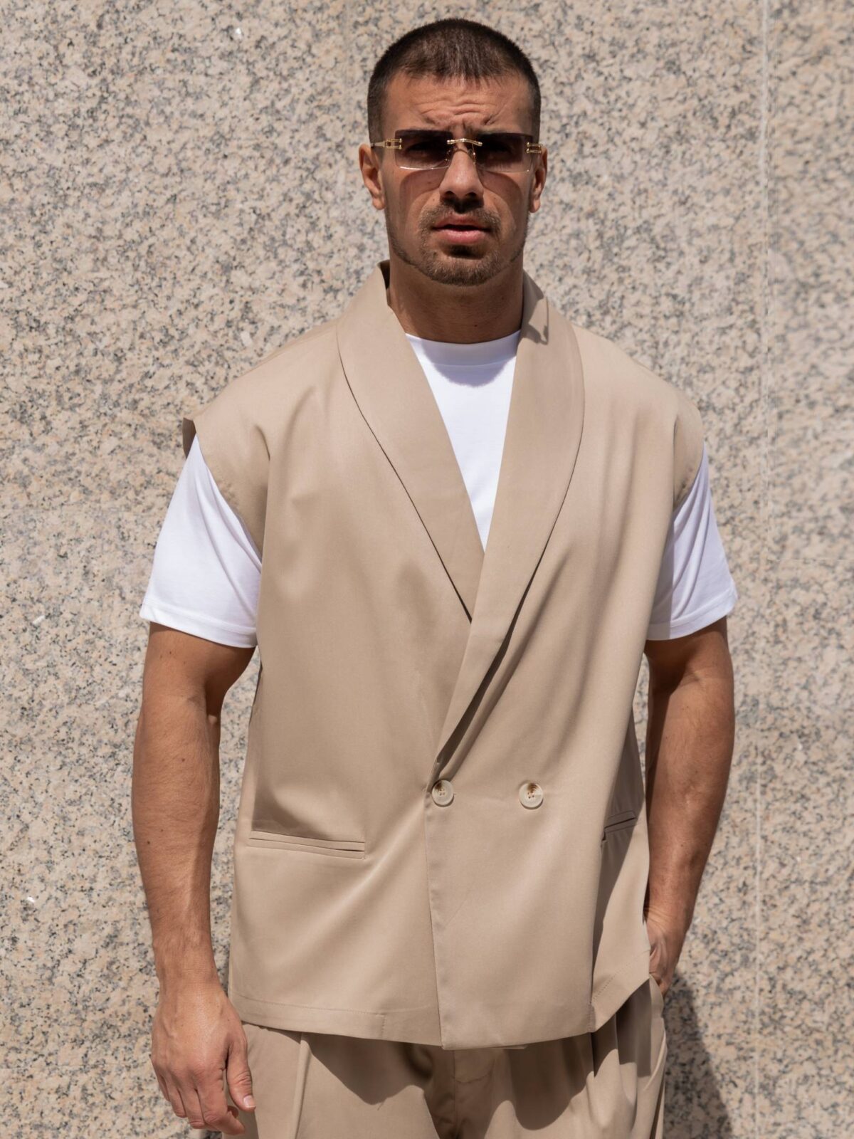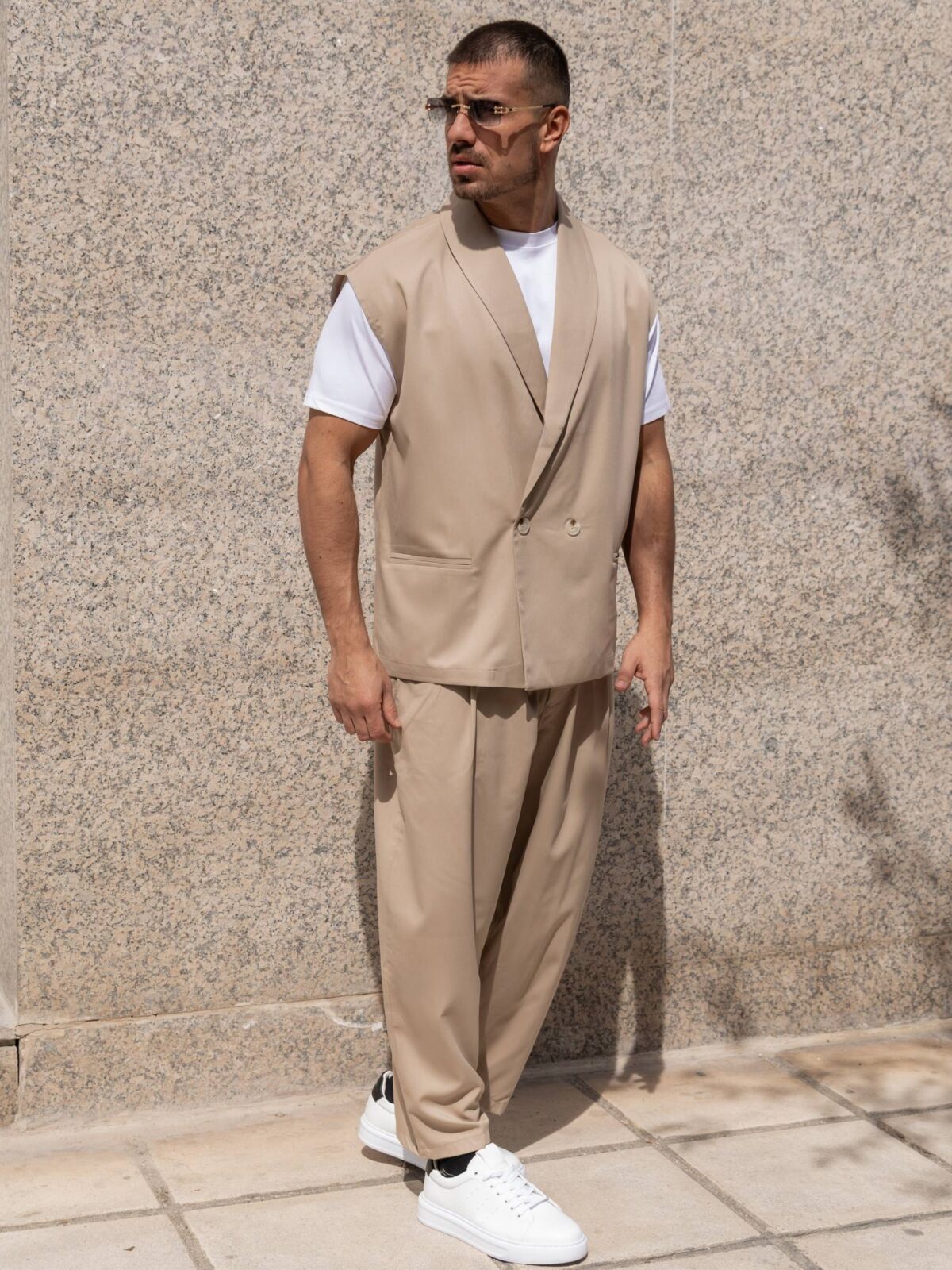 Παντελόνι μπεζ japaneese λινό σε oversized γραμμή