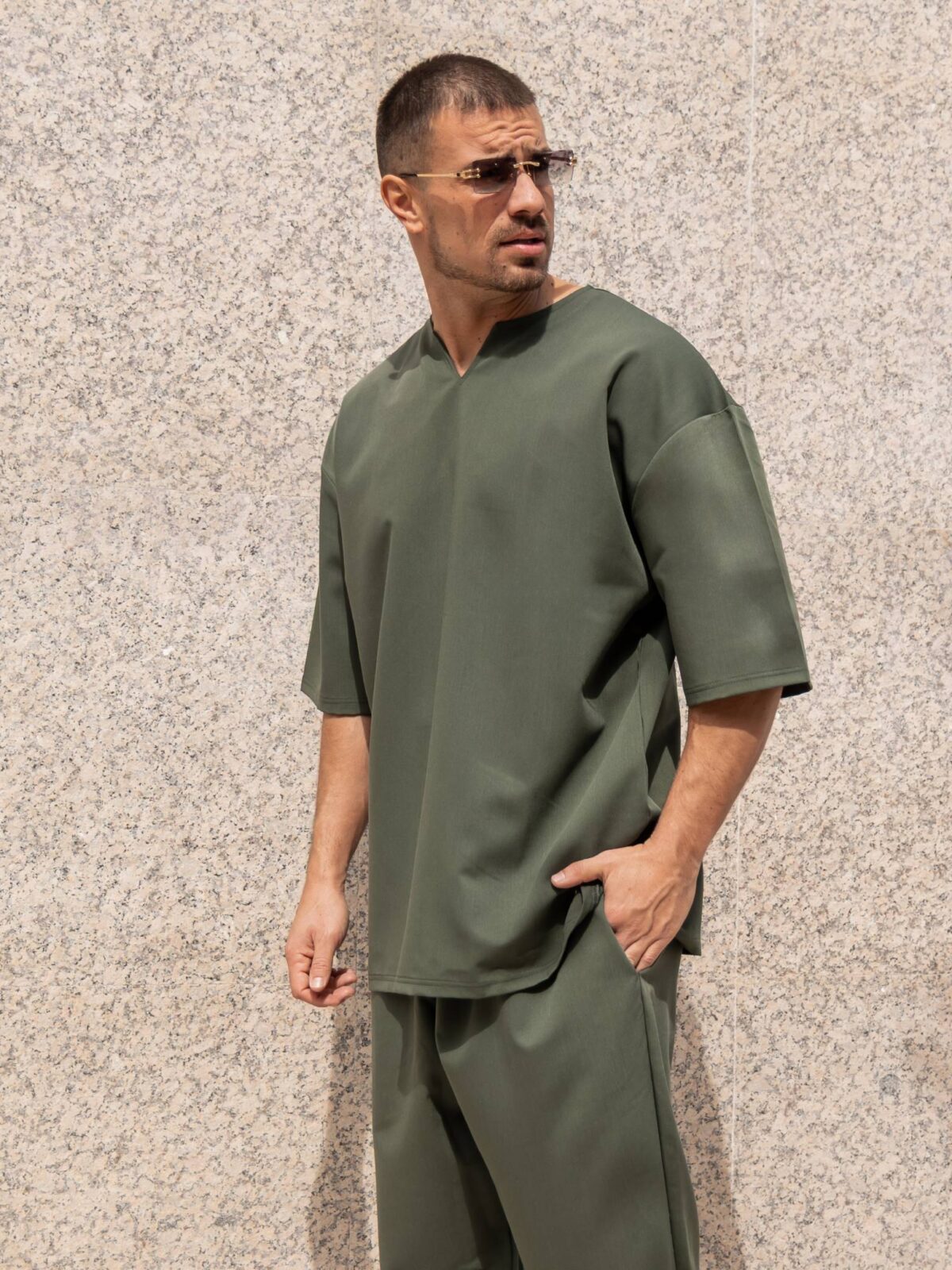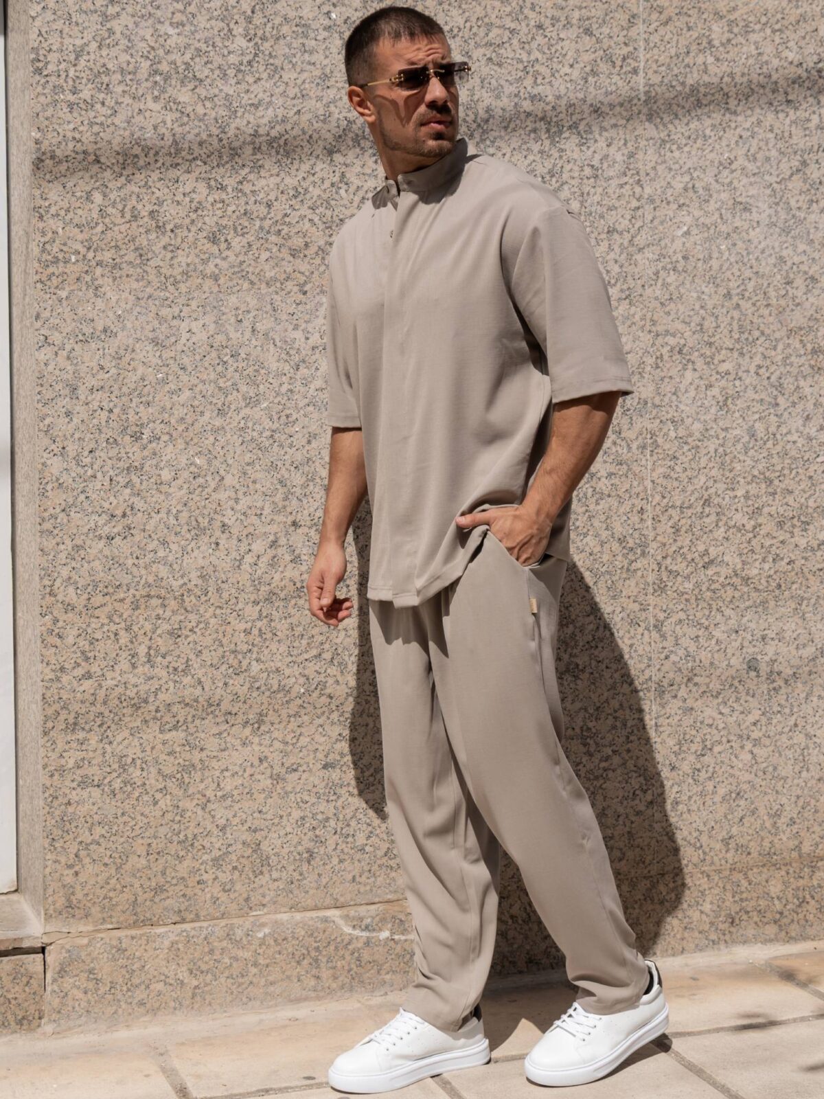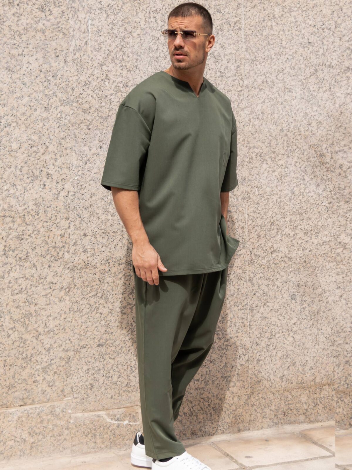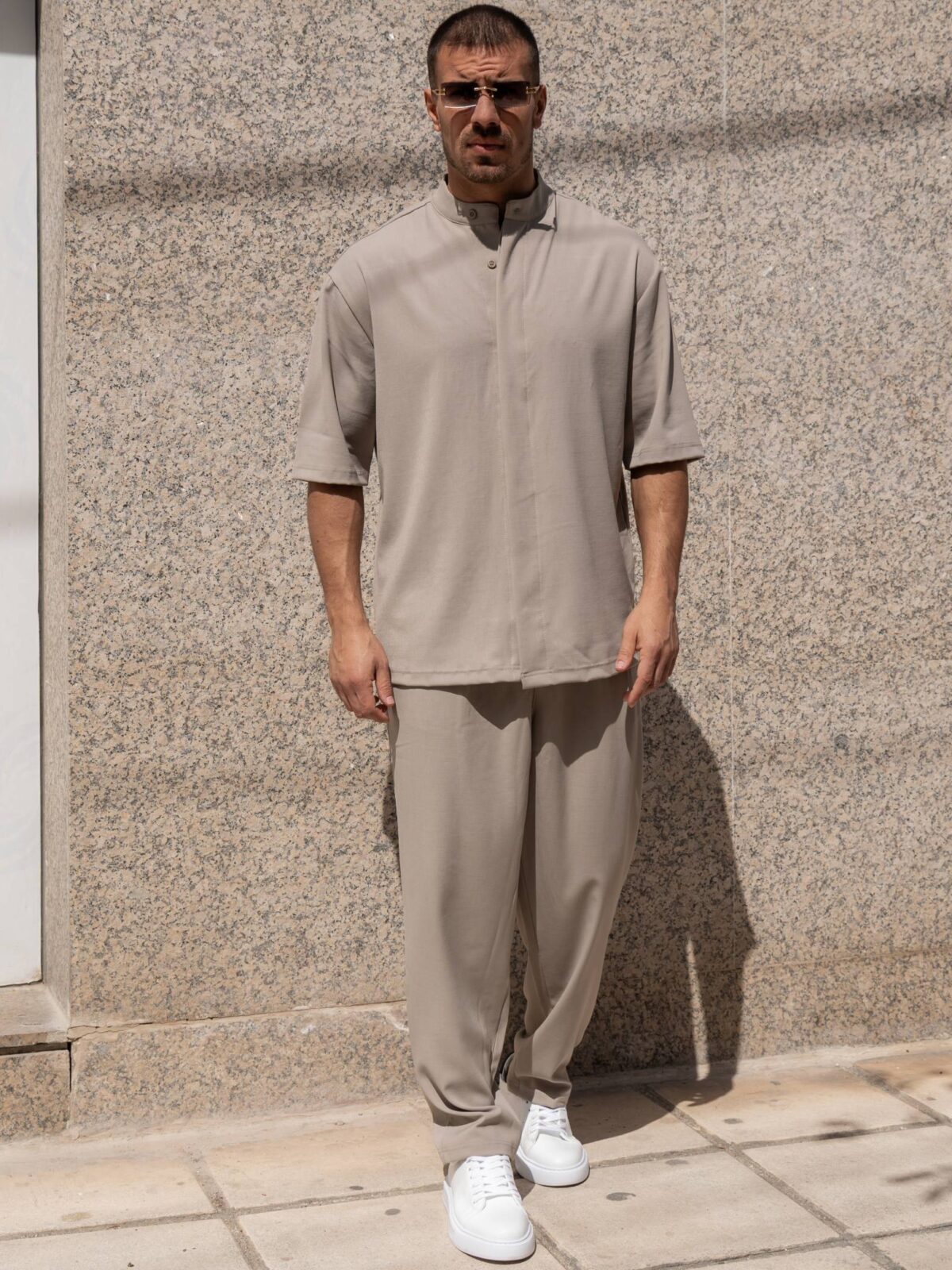 Παντελόνι χακί japaneese λινό σε oversized γραμμή