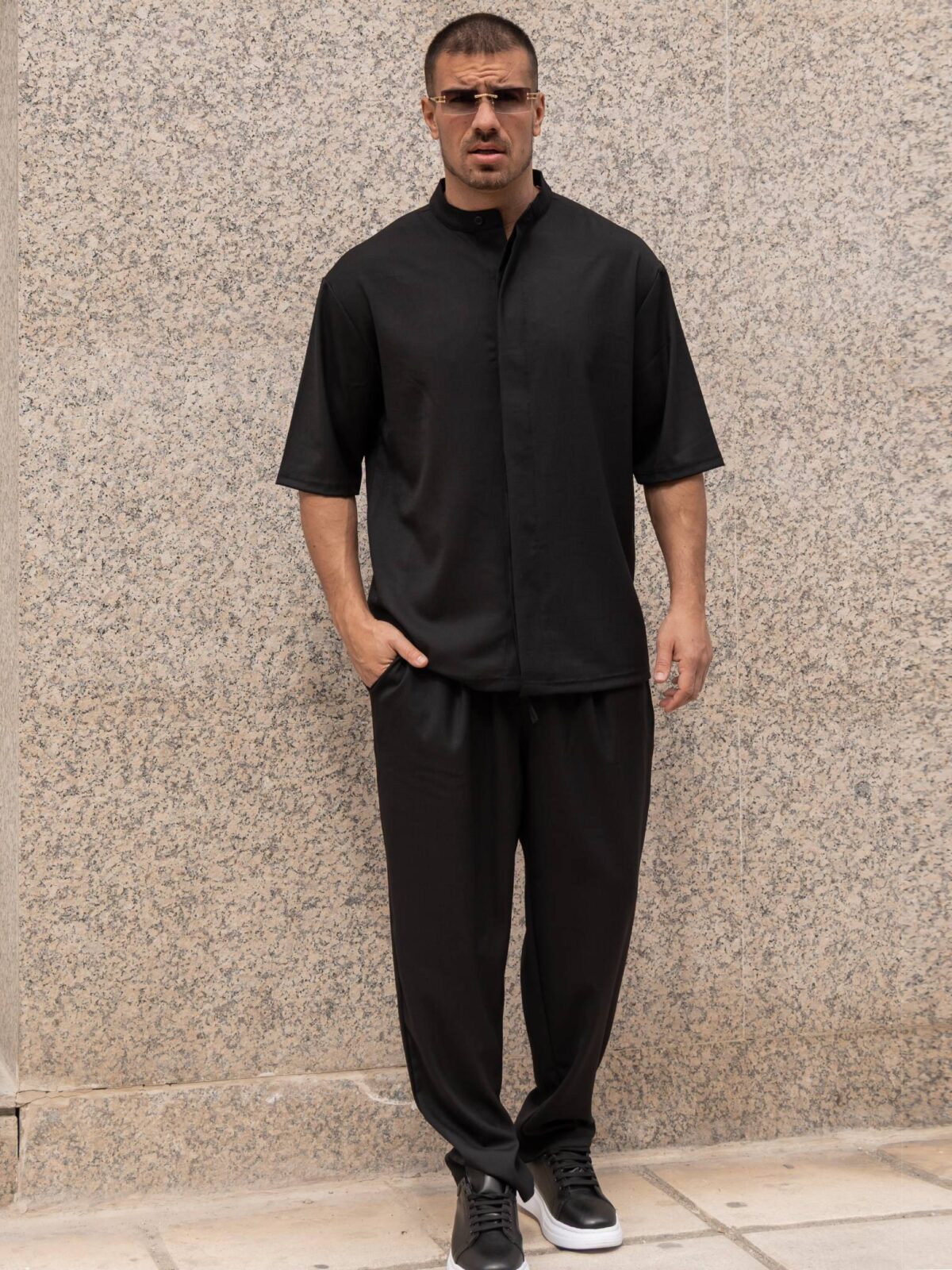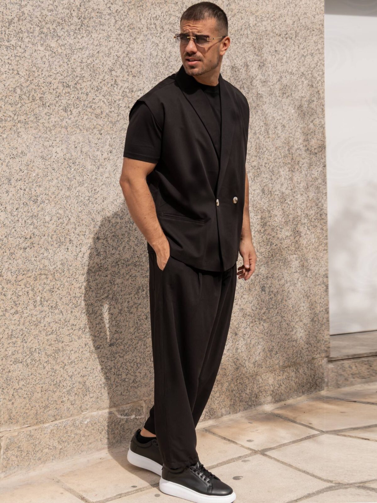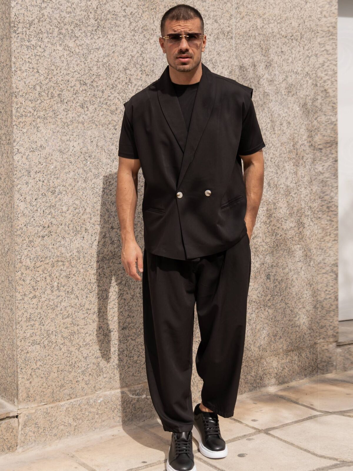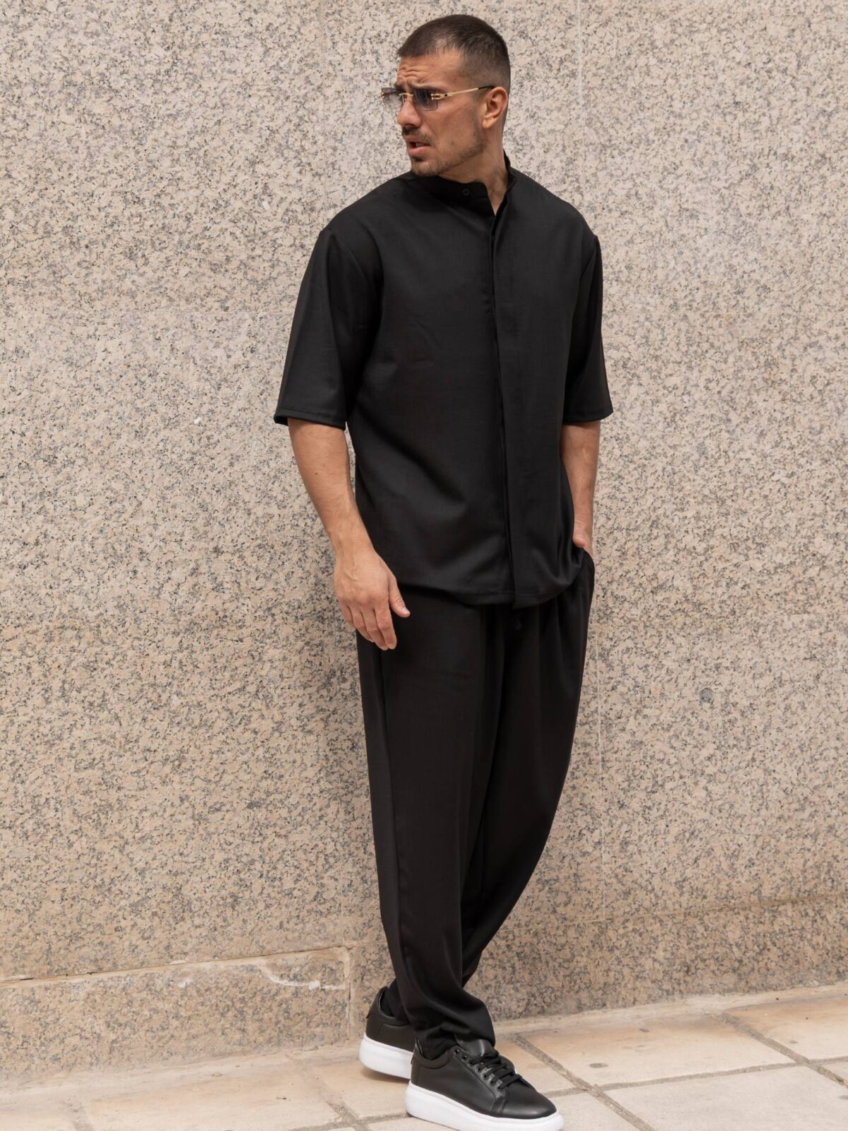 Παντελόνι μαύρο japaneese λινό σε oversized γραμμή
