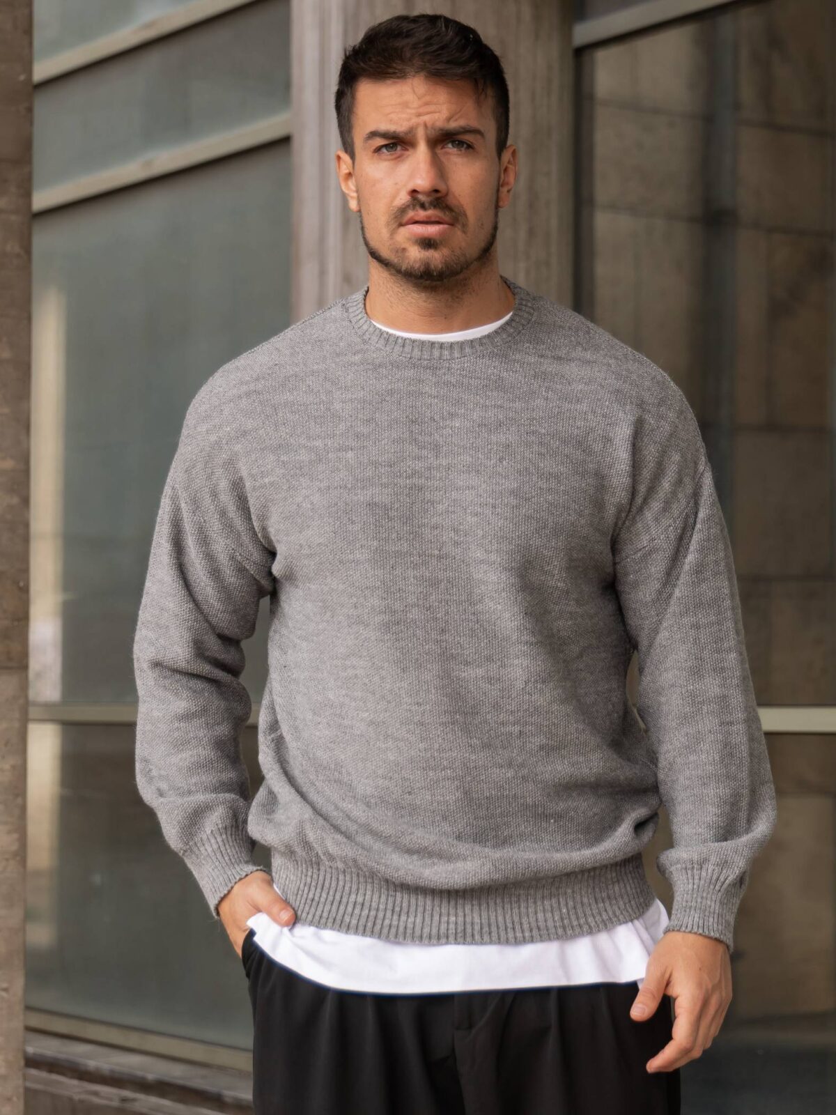 Μπλούζα μάλλινη γκρι σε oversized γραμμή