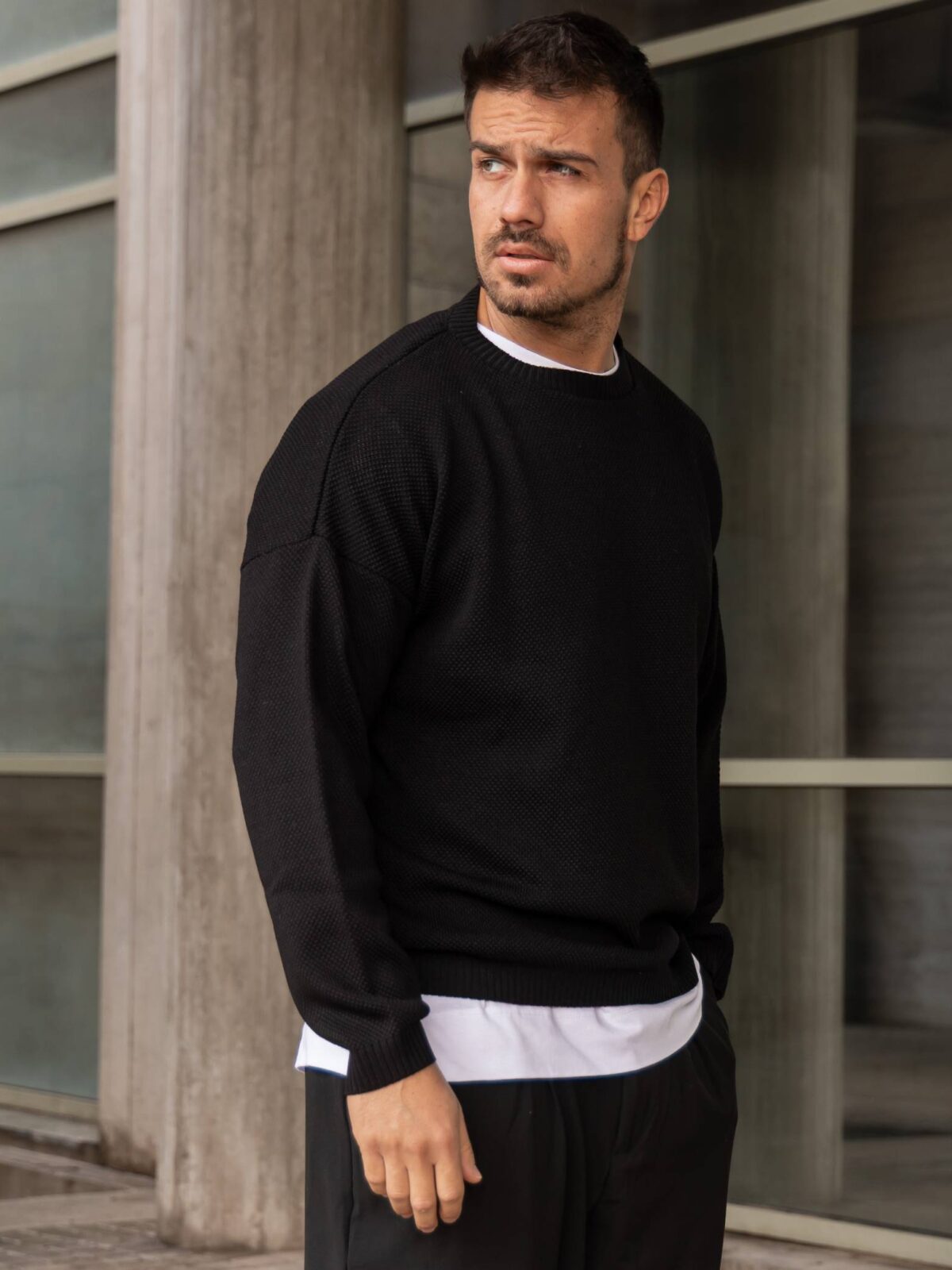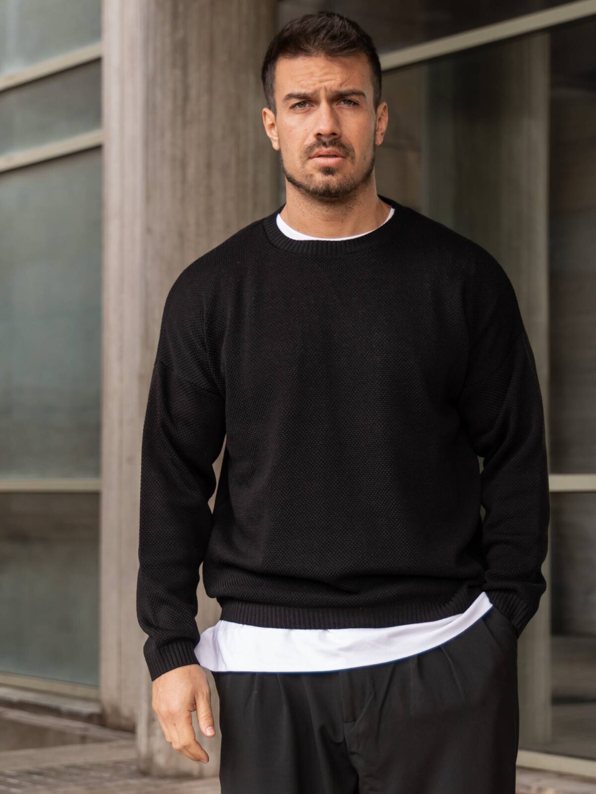 Μπλούζα πλεκτή μαύρη σε άνετη γραμμή