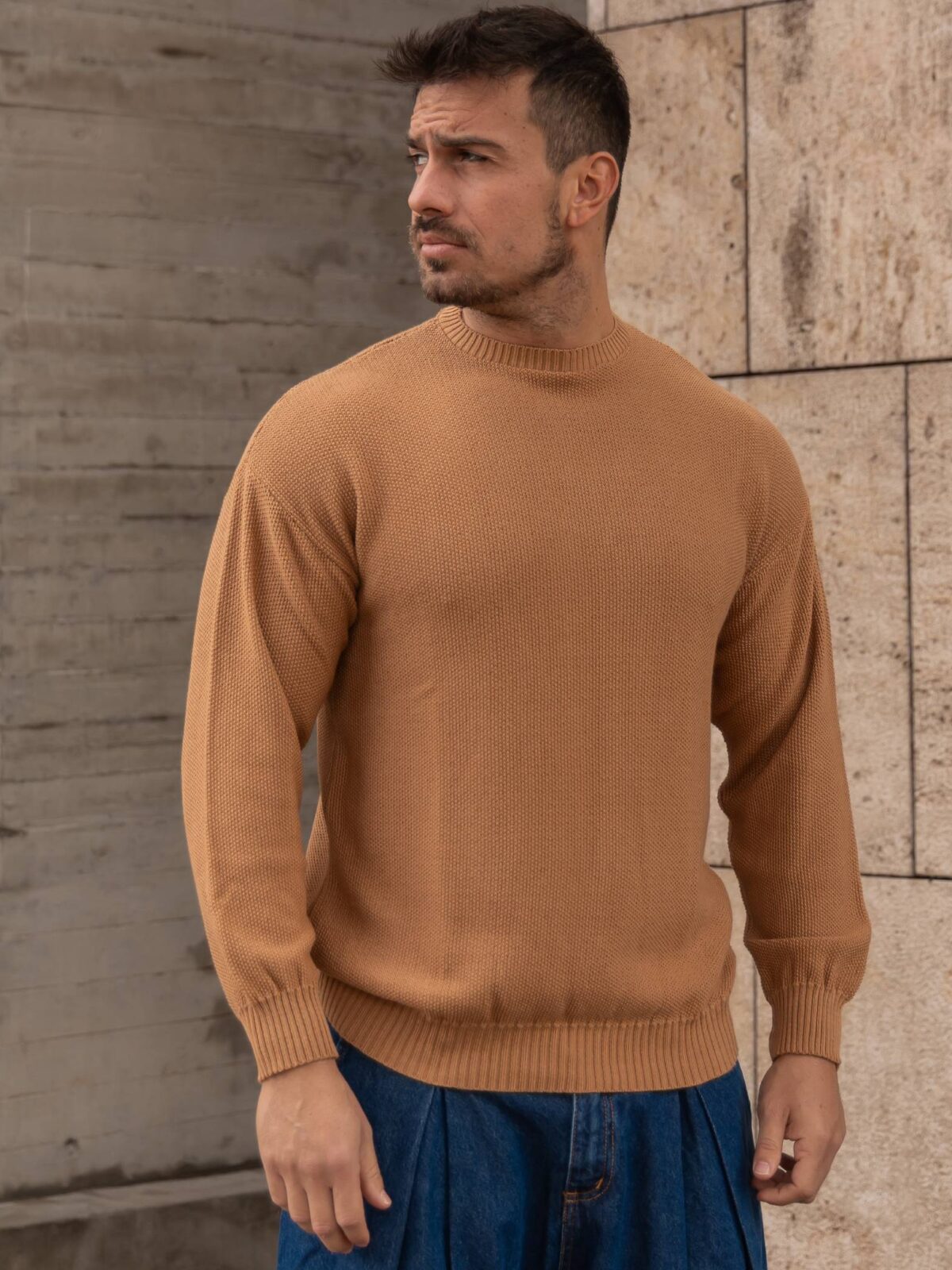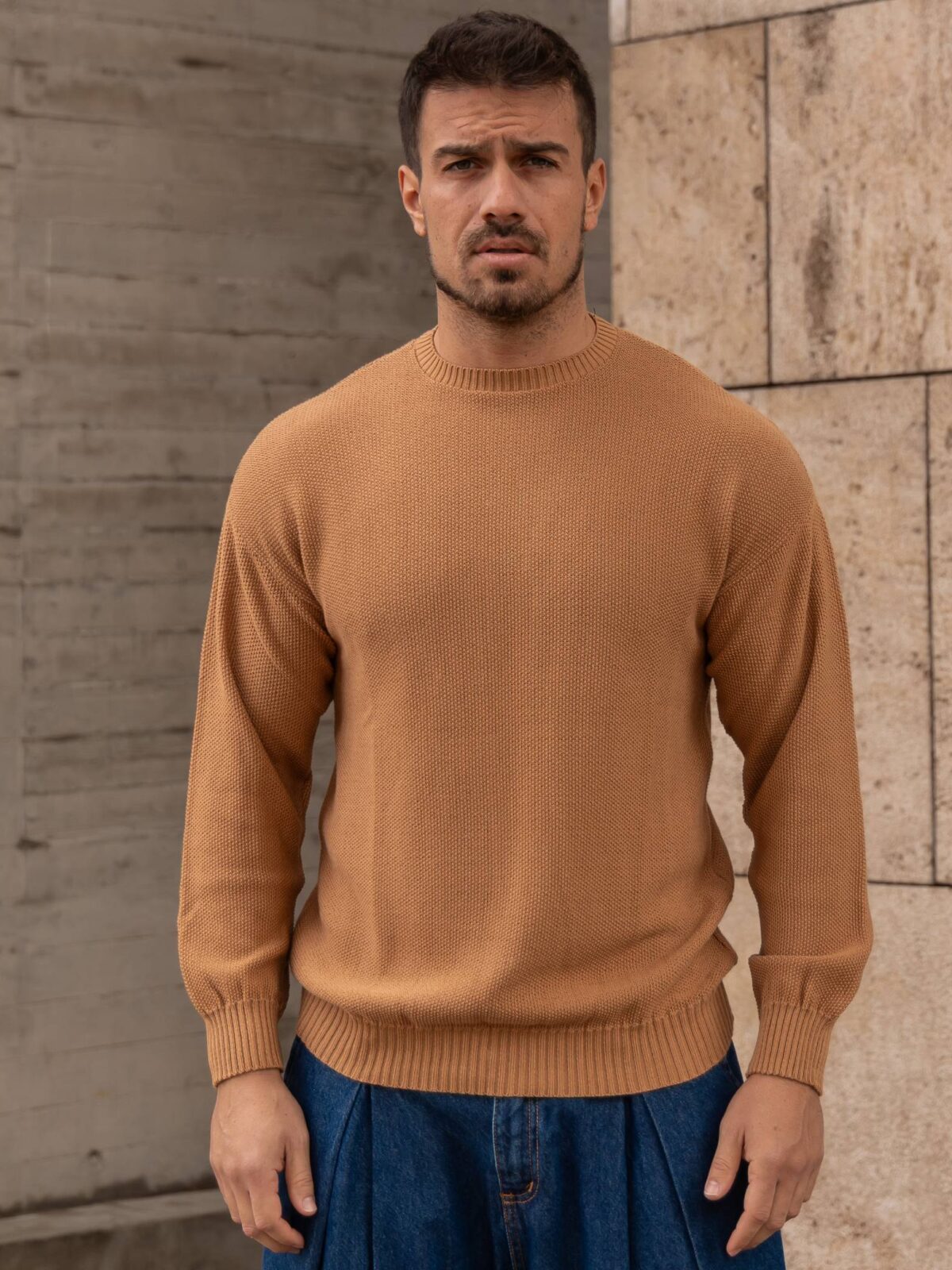 Μπλούζα πλεκτή camel σε άνετη γραμμή