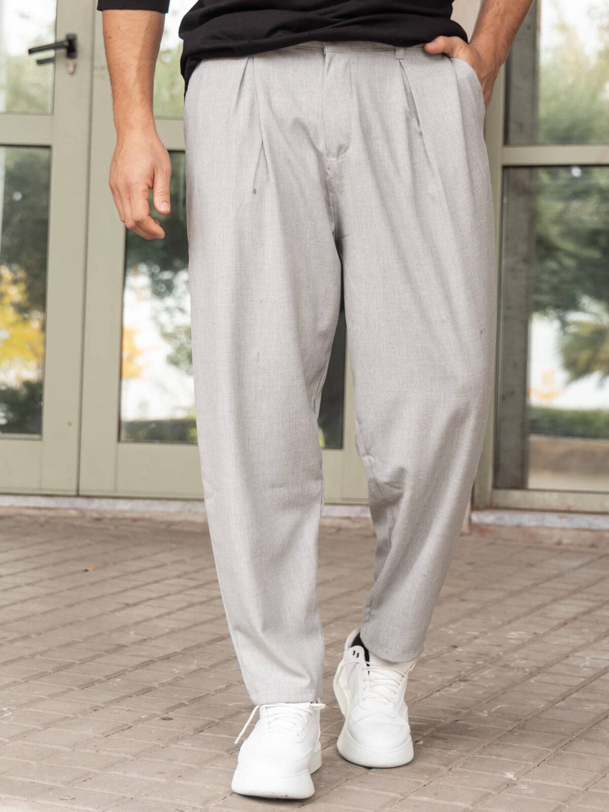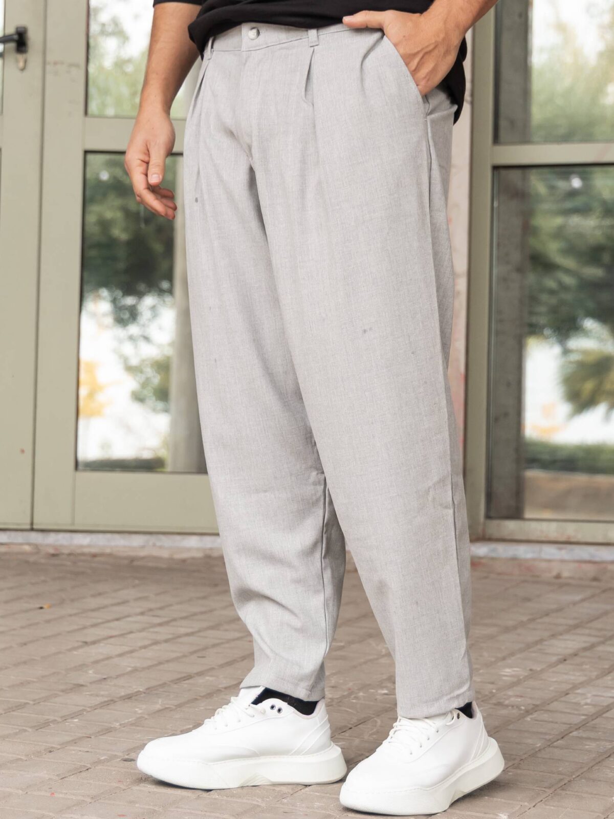 Παντελόνι γκρι με πιέτες σε άνετη γραμμή