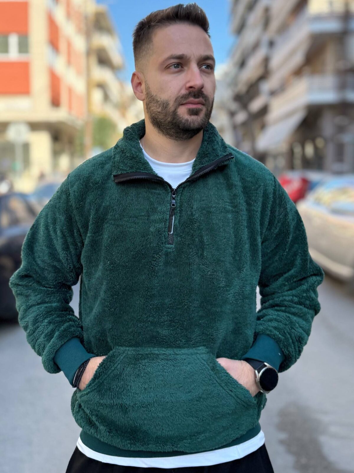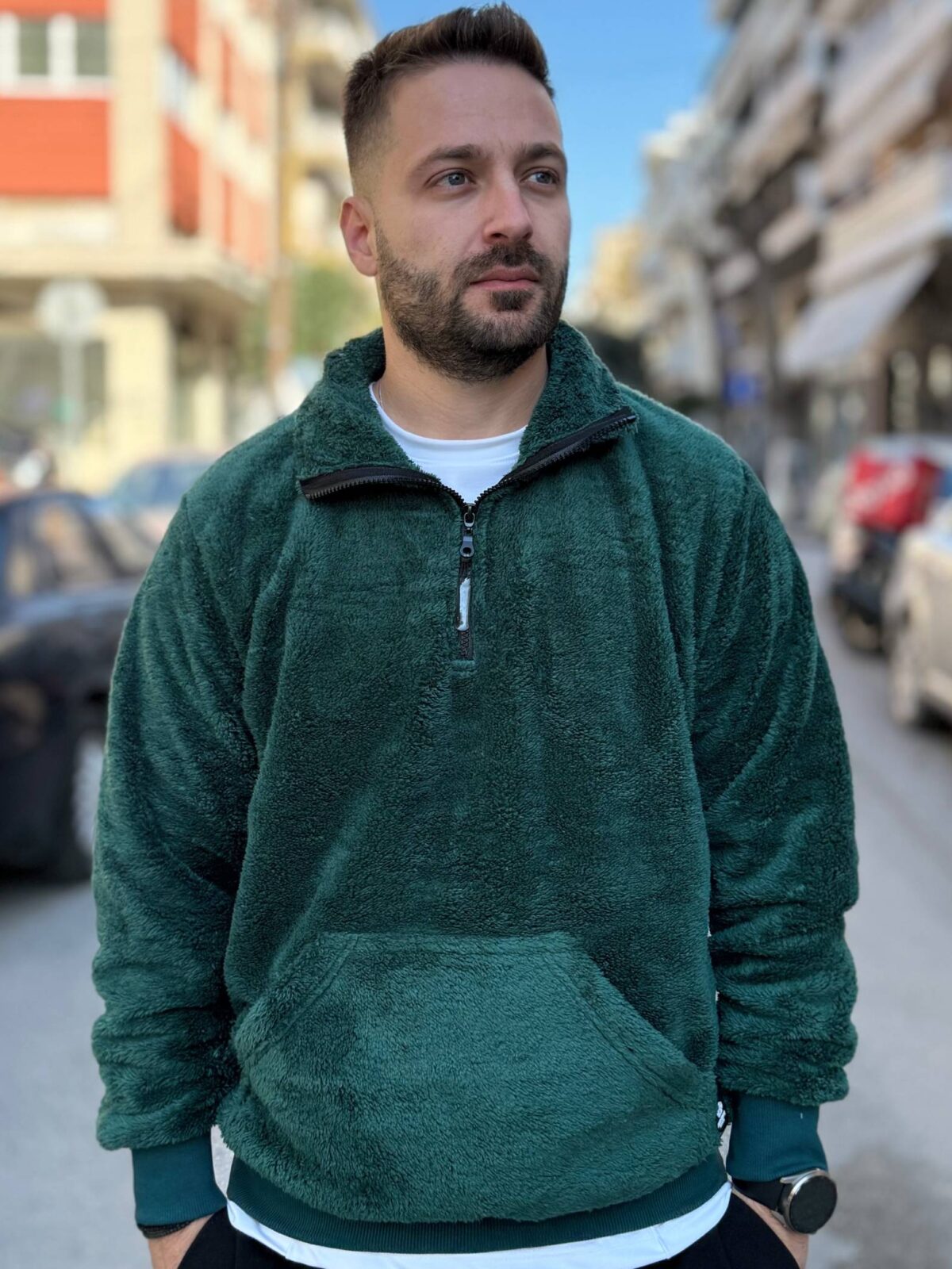 Fleece φούτερ γούνινο πράσινο με φερμουάρ σε oversized γραμμή