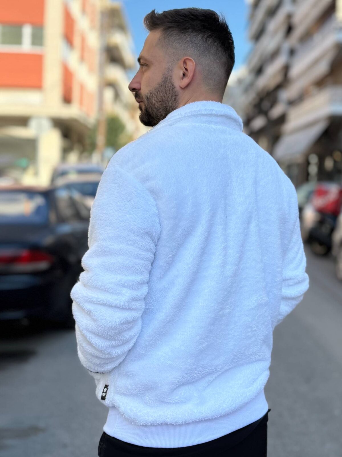 Fleece φούτερ γούνινο λευκό με φερμουάρ σε oversized γραμμή