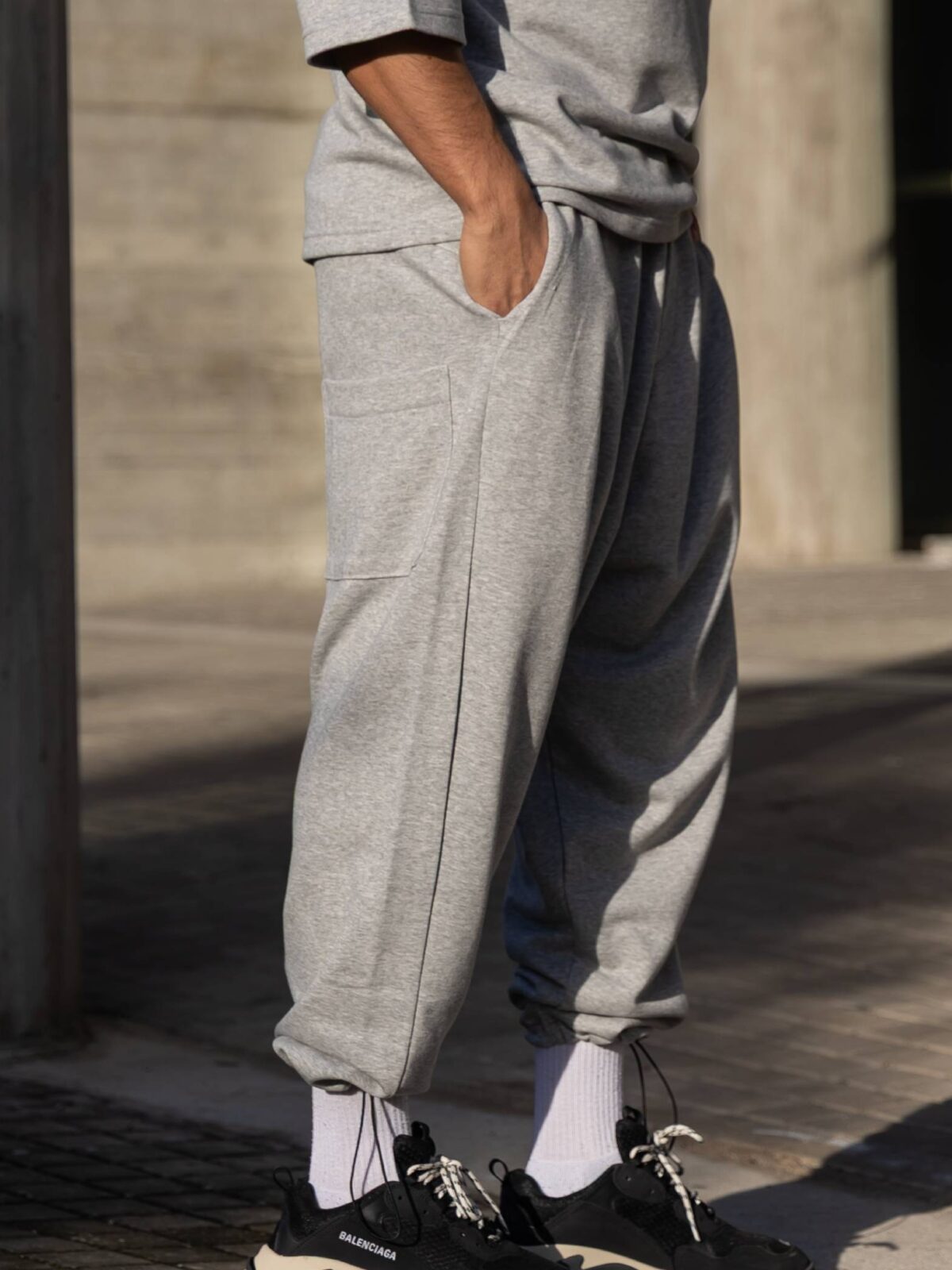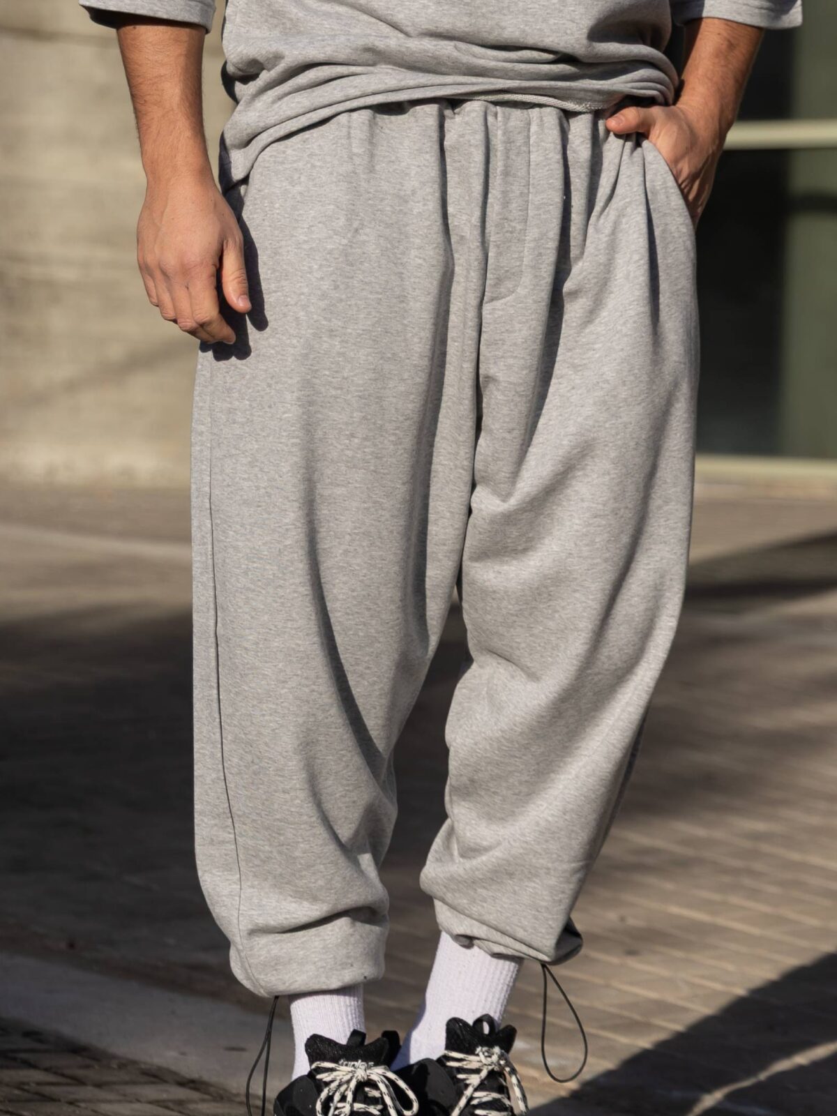 Φόρμα japaneese γκρι με κορδόνι baggy σε oversized γραμμή