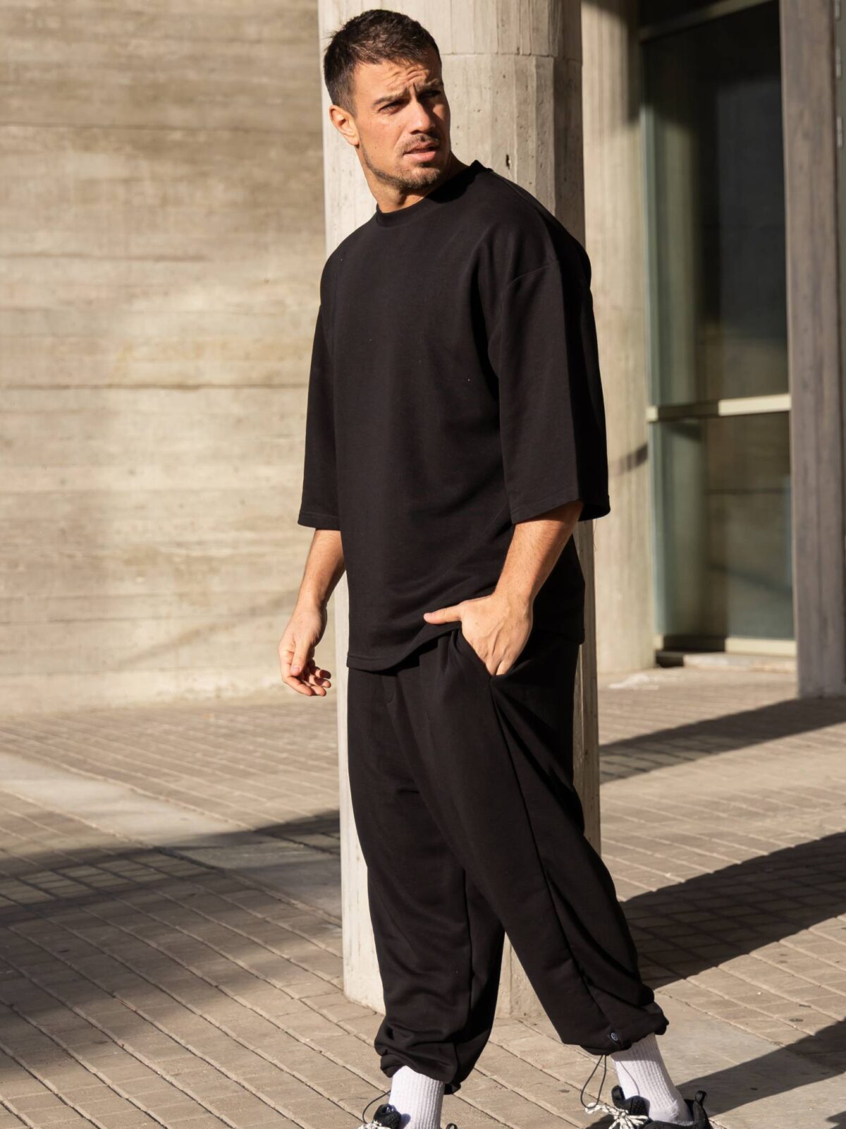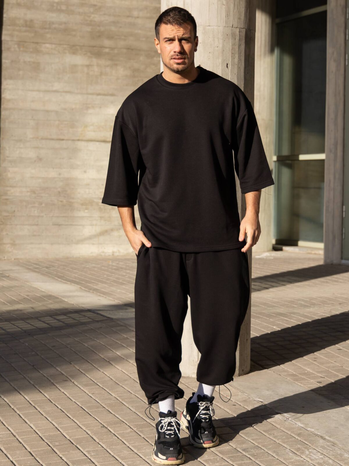 Σετ T-shirt & japaneese baggy φόρμα μαύρη σε oversized γραμμή