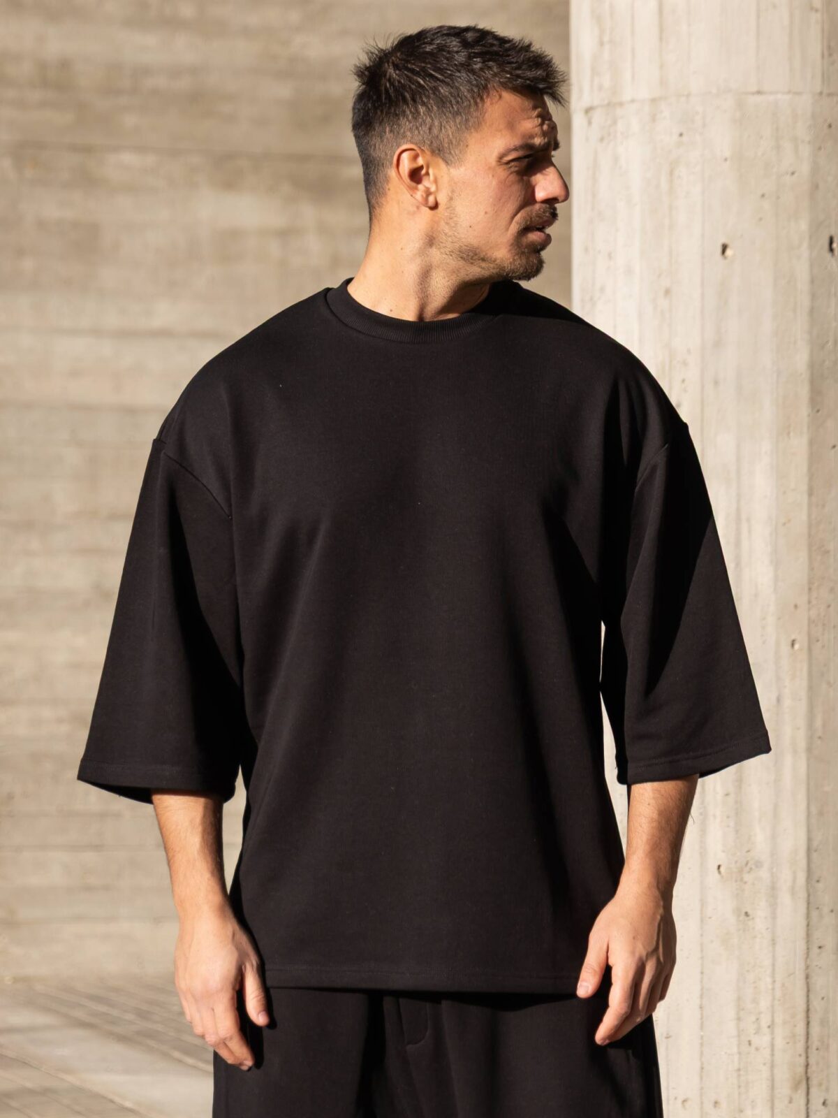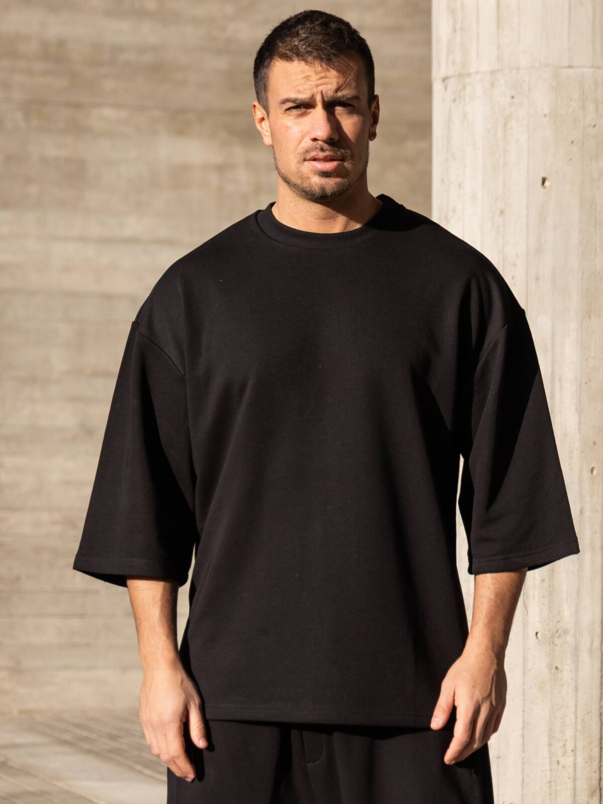 T-shirt μπλούζα 3/4 μαύρη σε oversized γραμμή