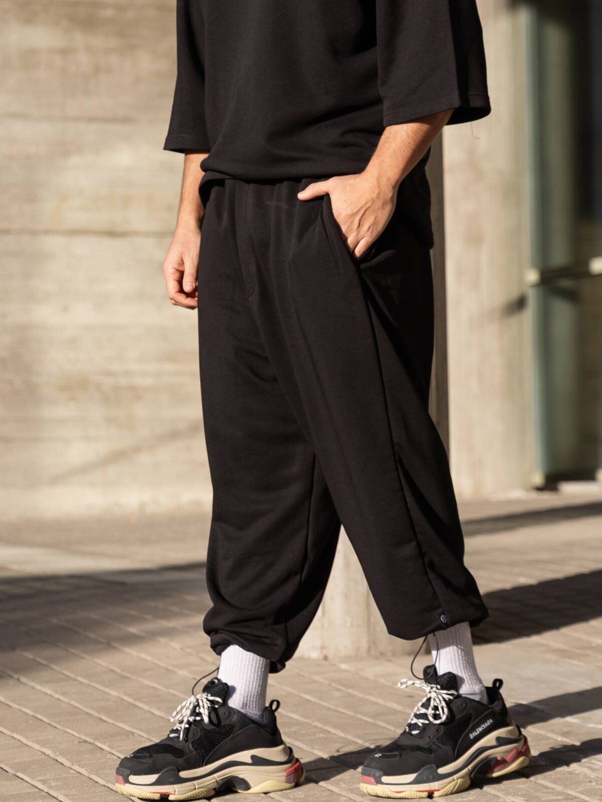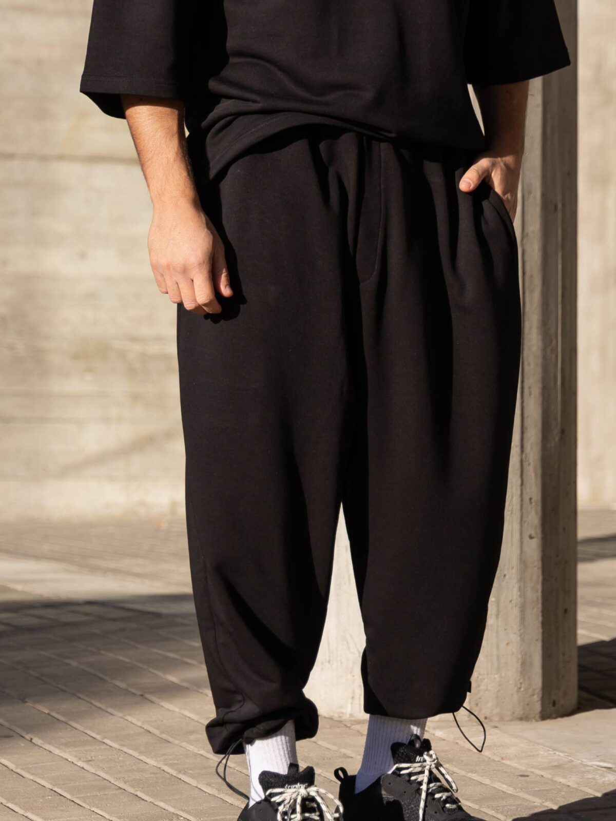 Φόρμα japaneese μαύρη με κορδόνι baggy σε oversized γραμμή