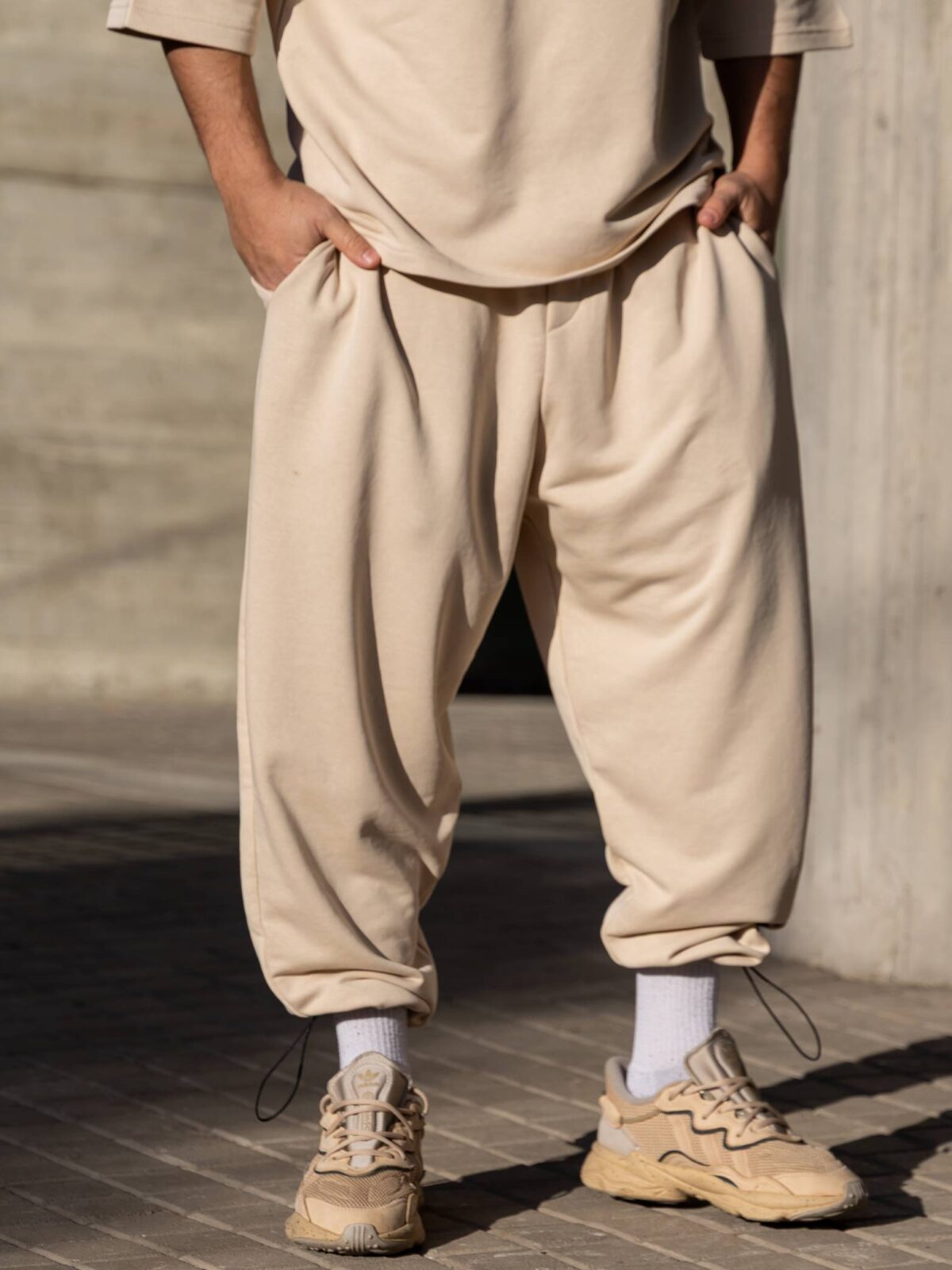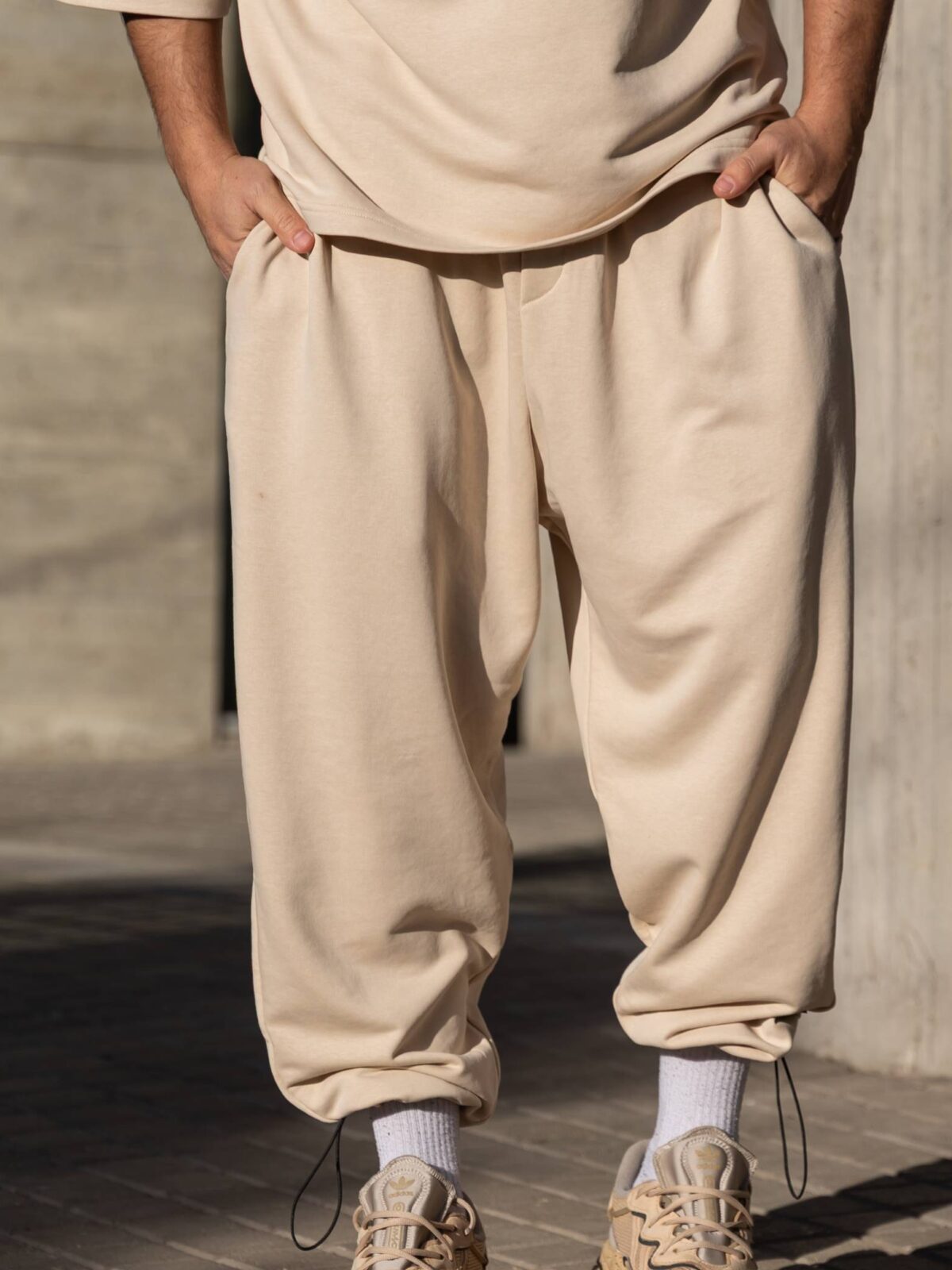 Φόρμα japaneese μπεζ με κορδόνι baggy σε oversized γραμμή