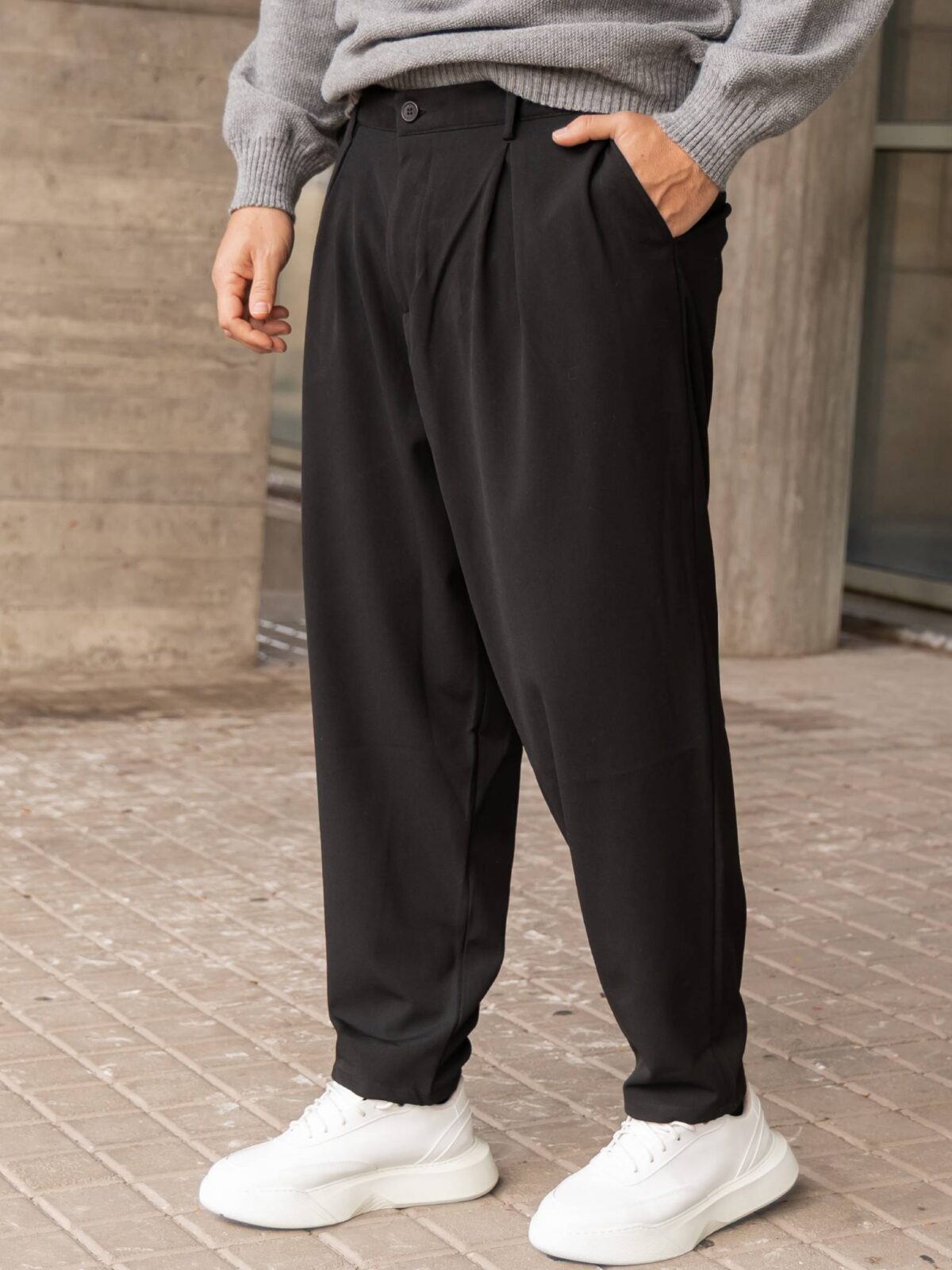 Παντελόνι μαύρο με πιέτες σε άνετη γραμμή