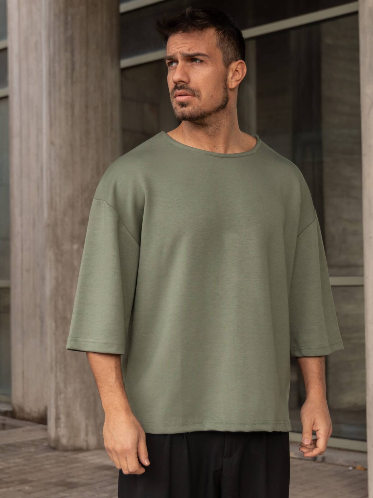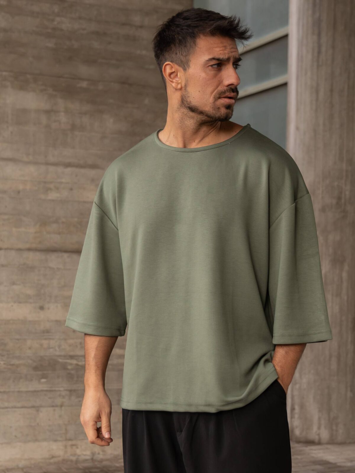 T-Shirt χακί με 3/4 μανίκι σε oversized γραμμή