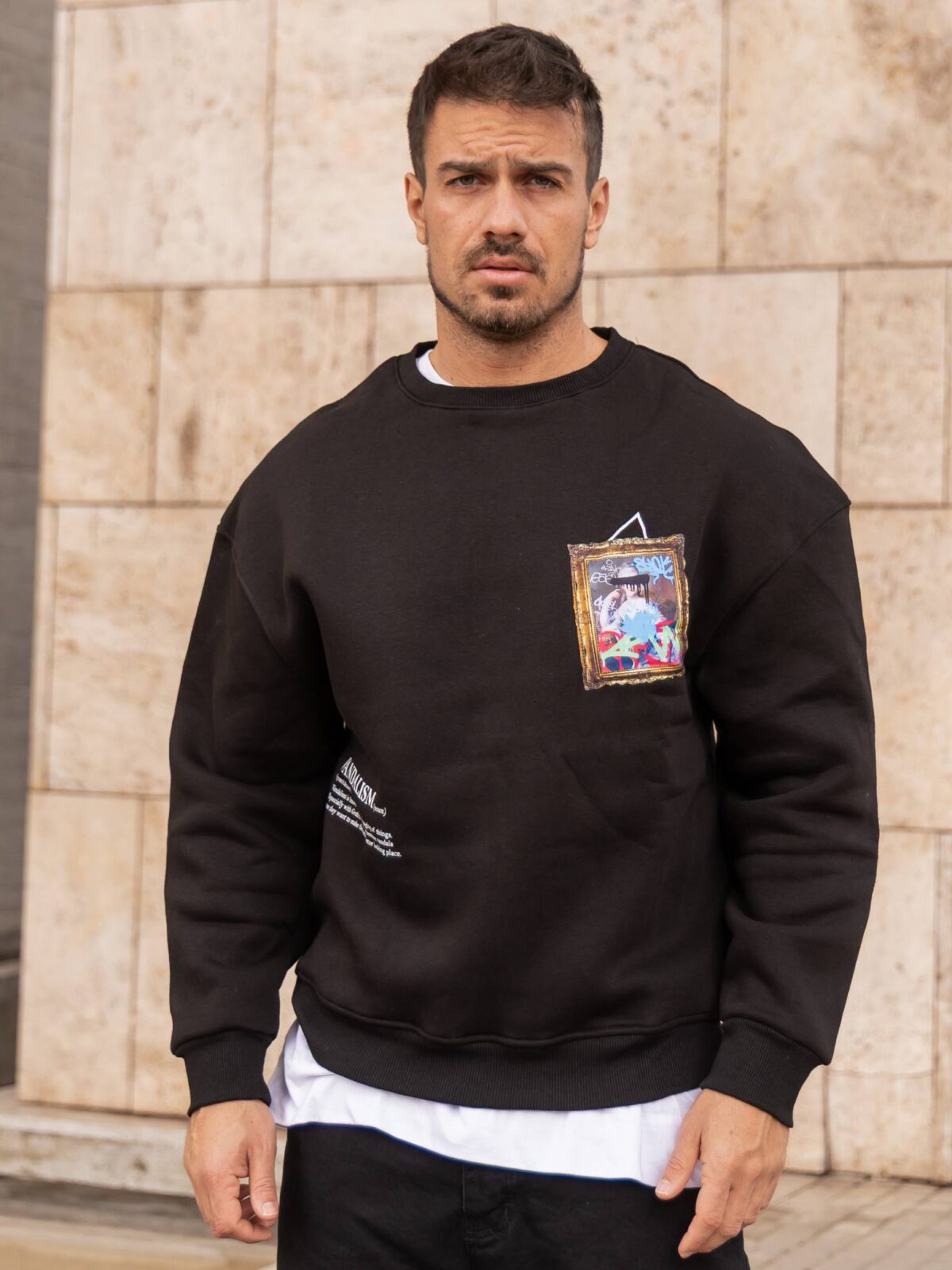 Φούτερ μαύρη με στάμπα σε oversized γραμμή