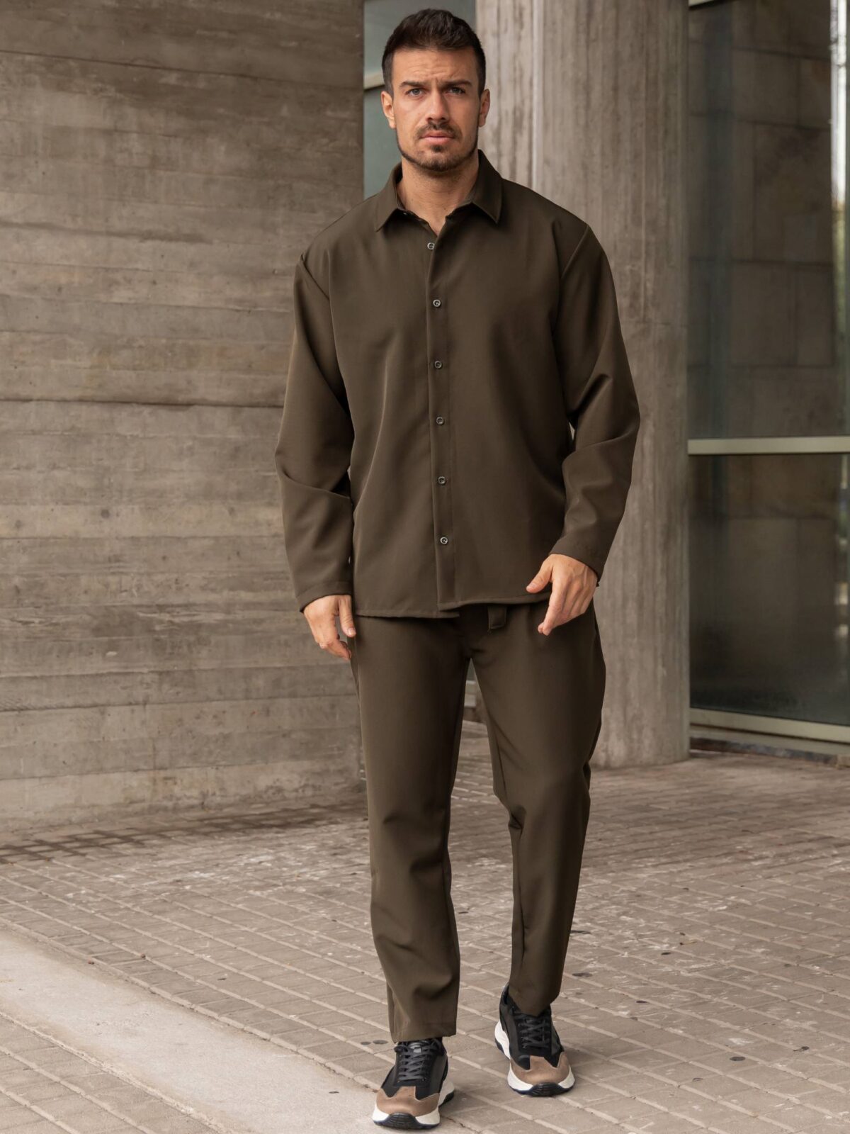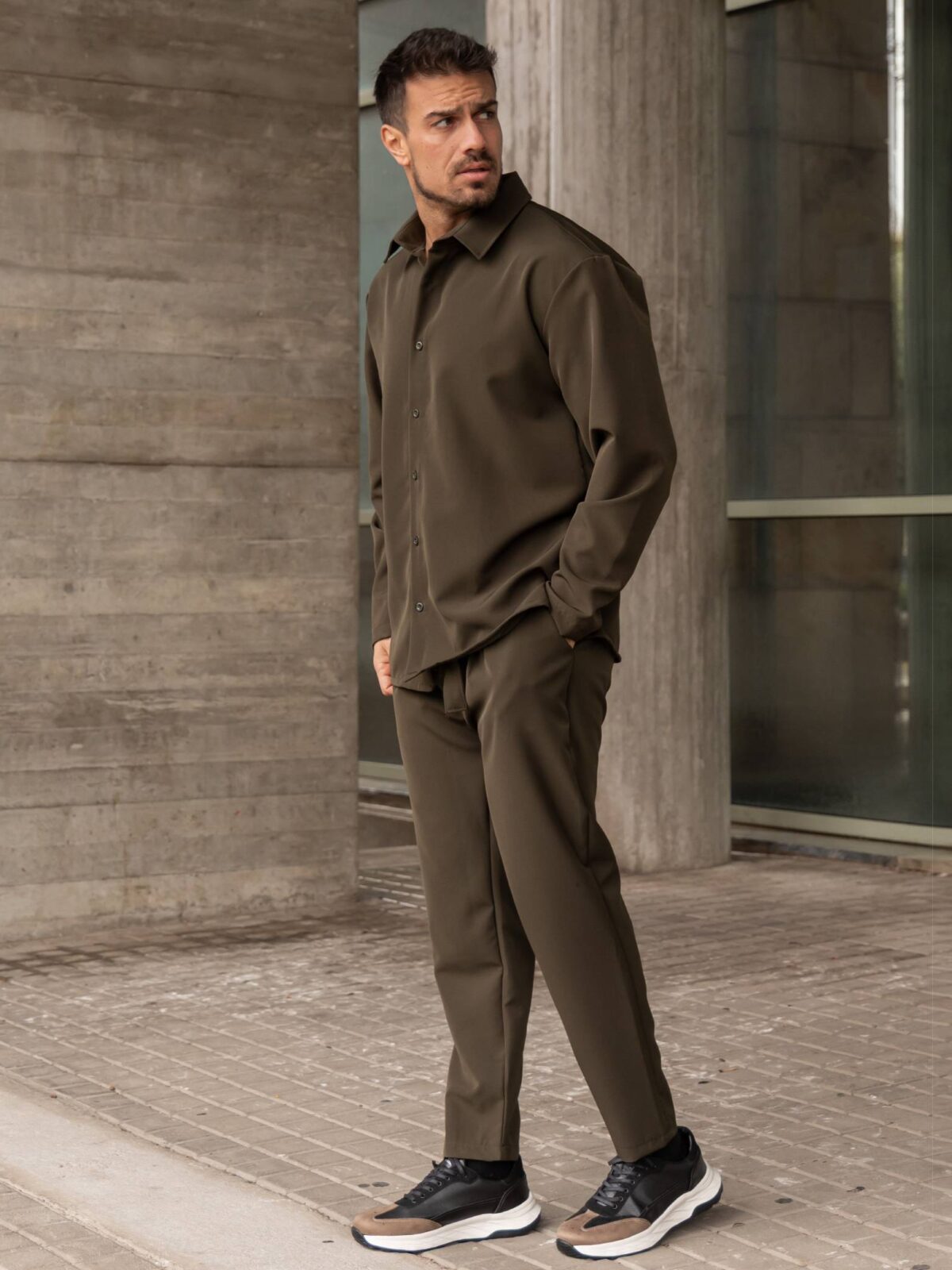Σετ παντελόνι & πουκάμισο λαδί σε άνετη γραμμή