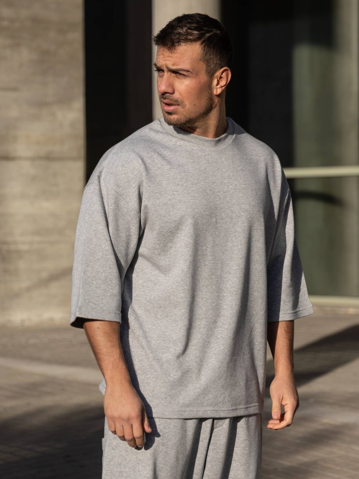 Σετ T-shirt & japaneese baggy φόρμα γκρι σε oversized γραμμή
