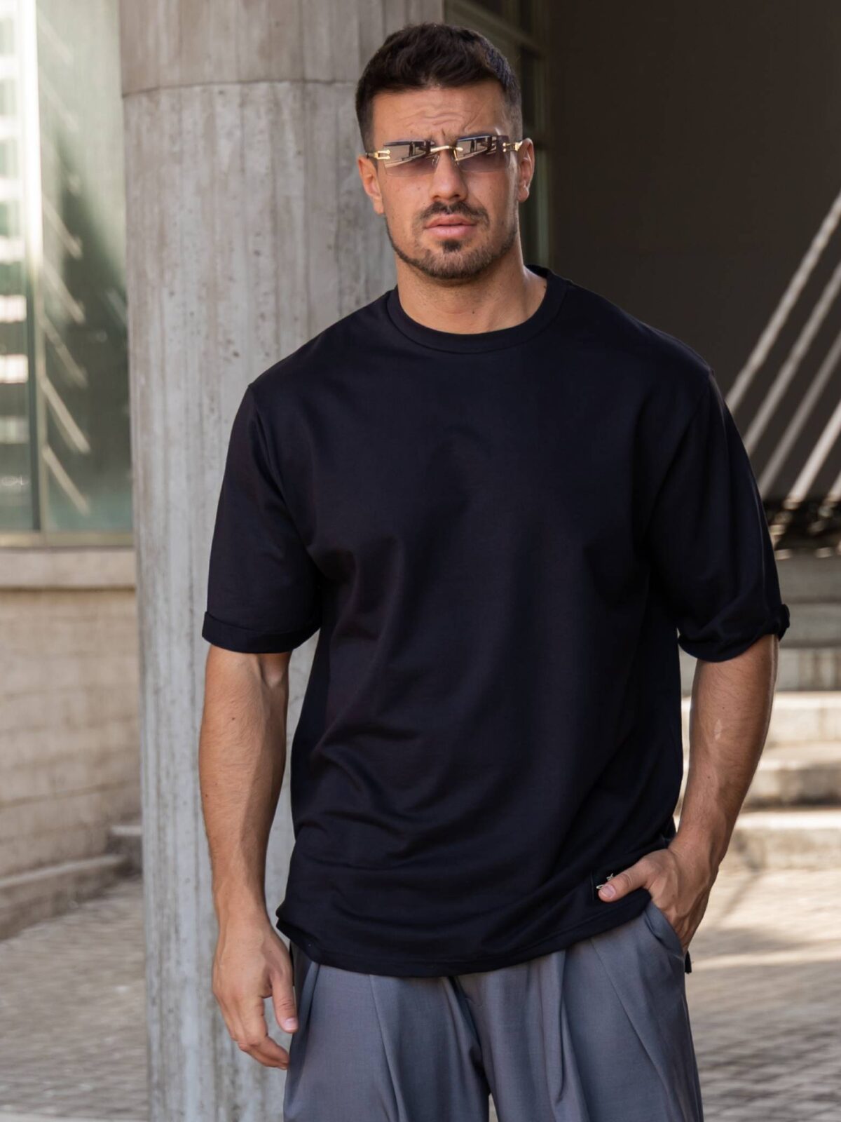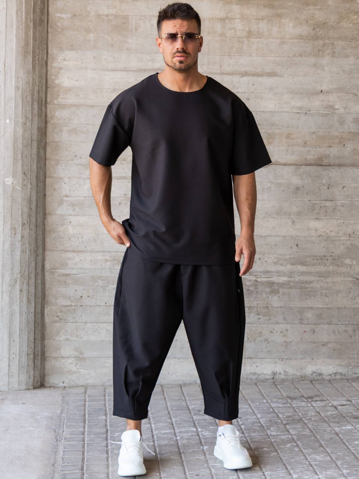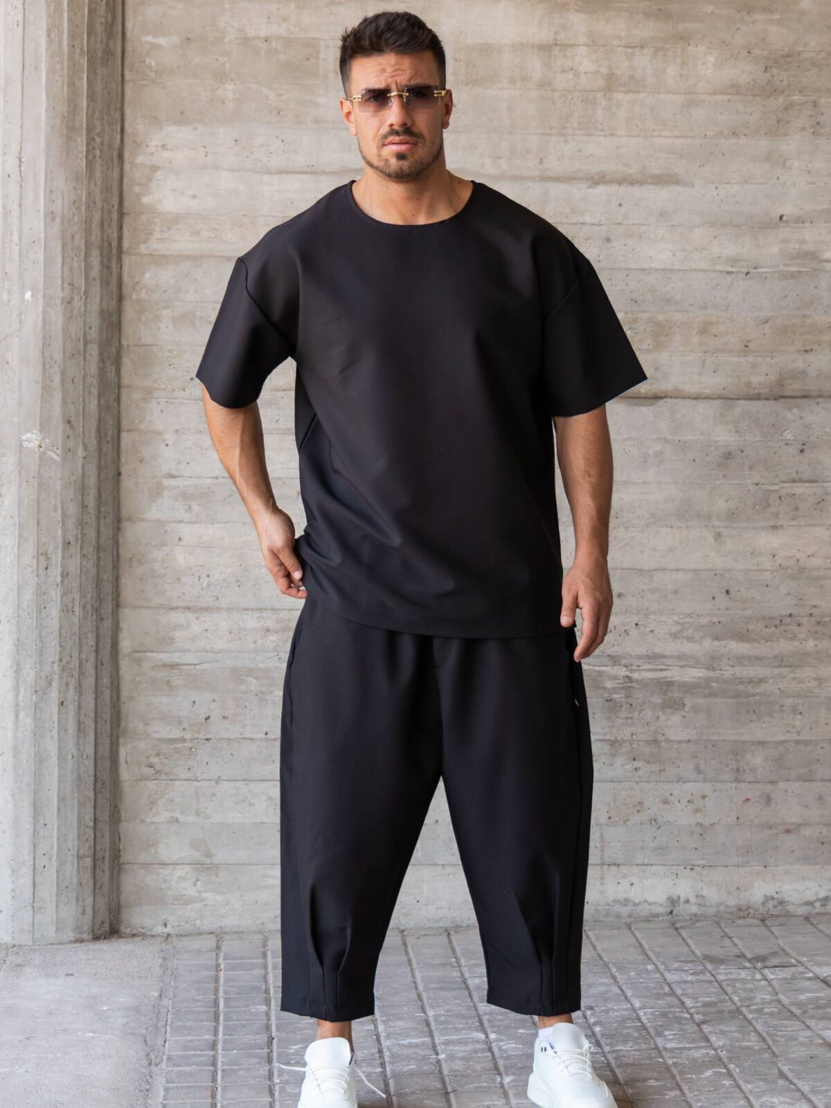 Σετ παντελόνι & T-shirt μαύρο σε oversized γραμμή