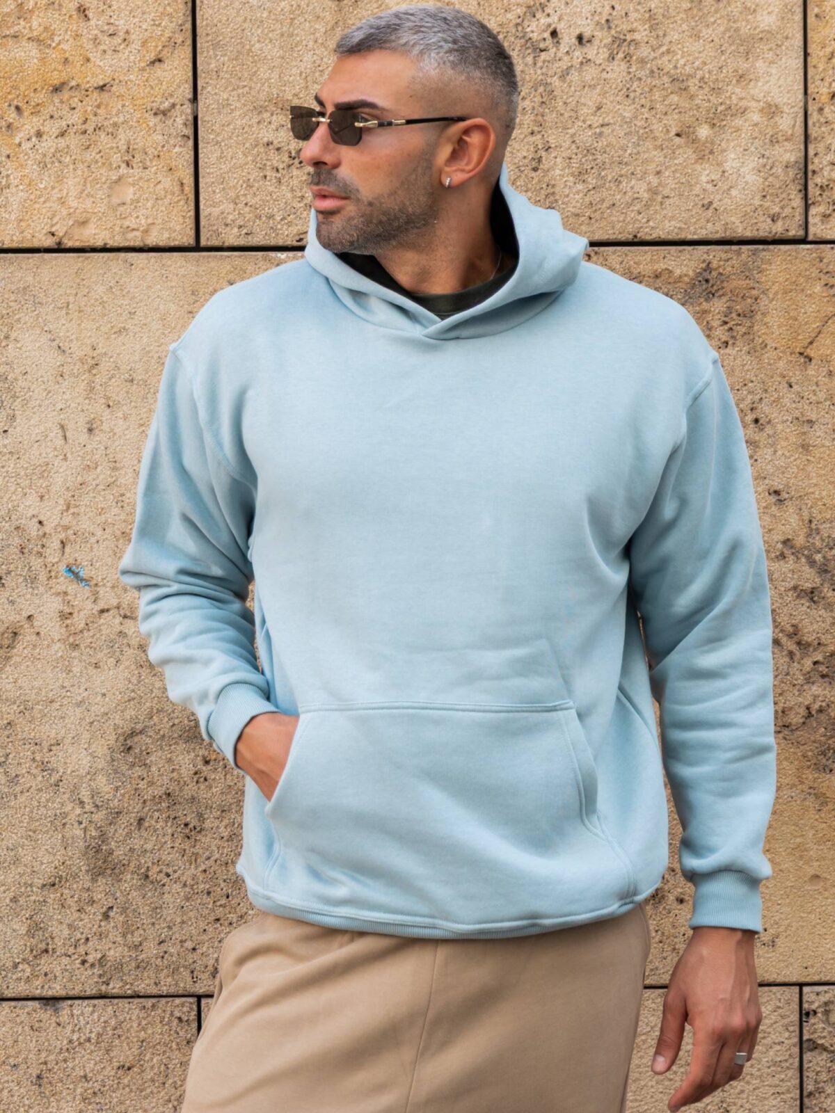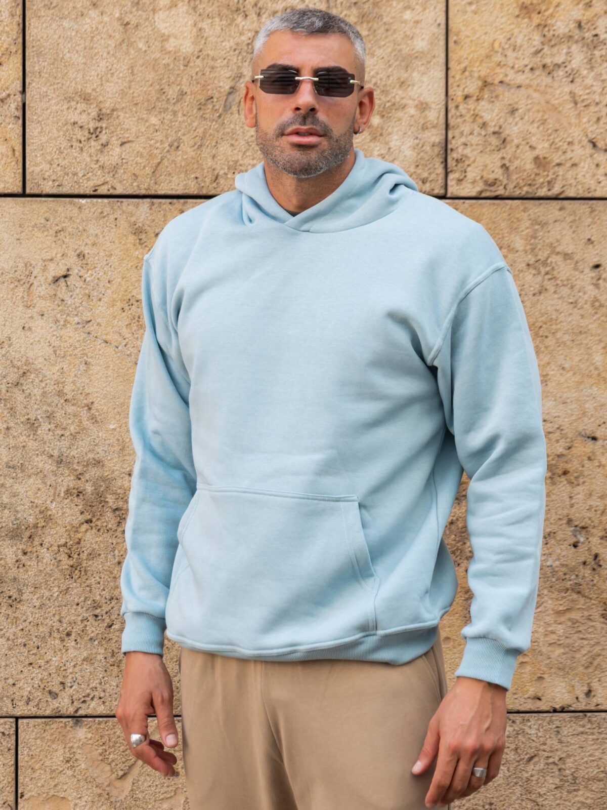 Φούτερ σιέλ με κουκούλα σε oversized γραμμή