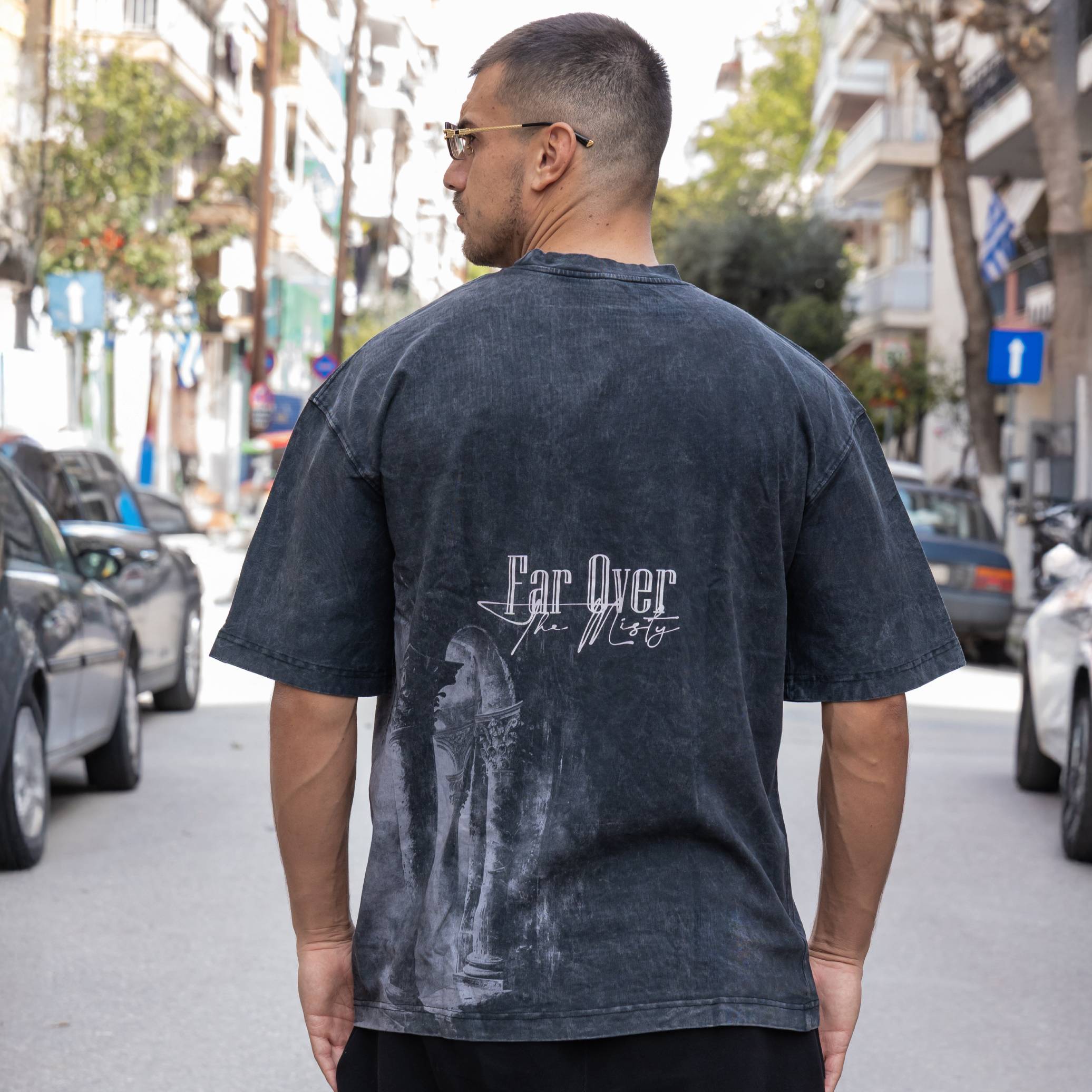 Σετ παντελόνι & πουκάμισο μαύρο μαο με κουμπί σε oversized γραμμή