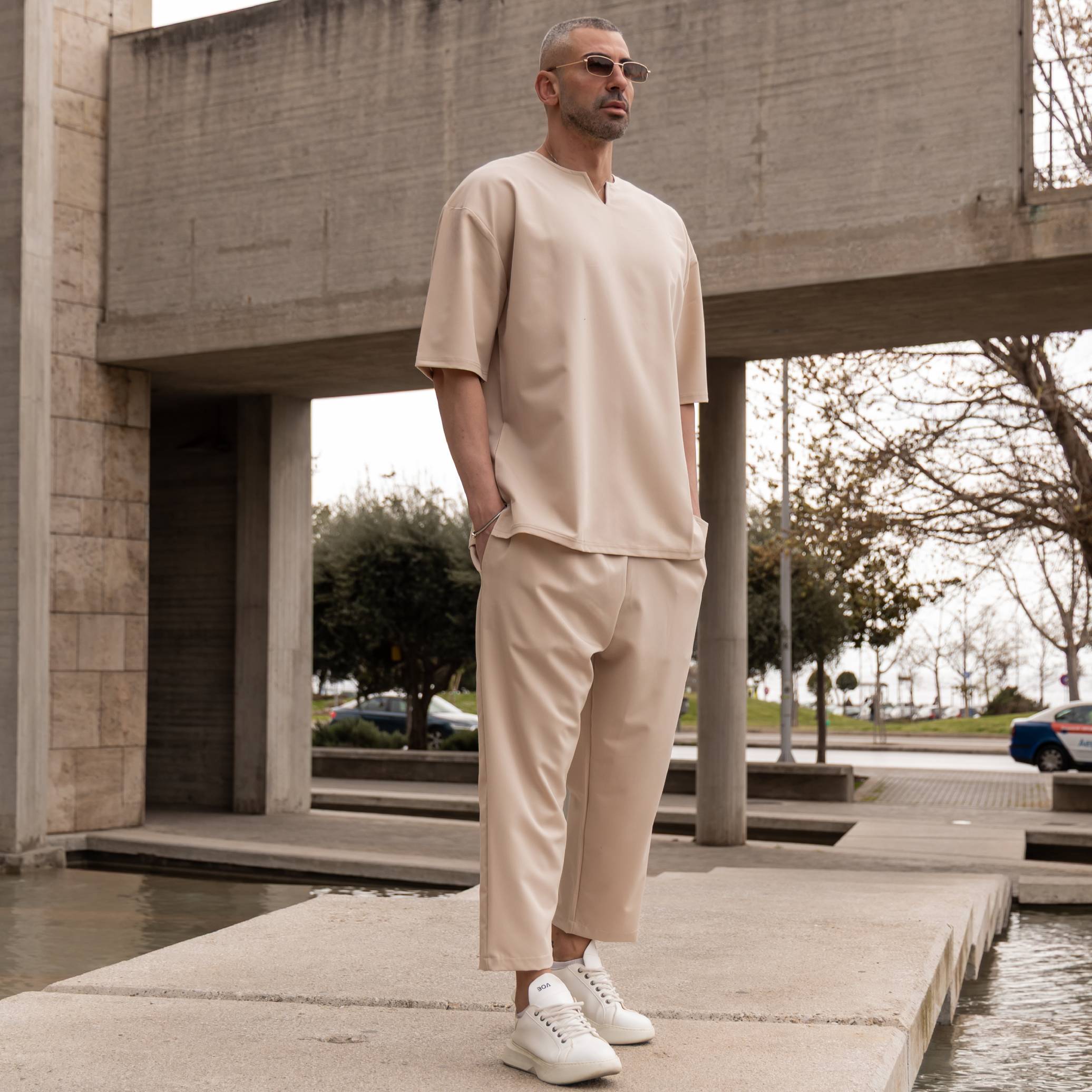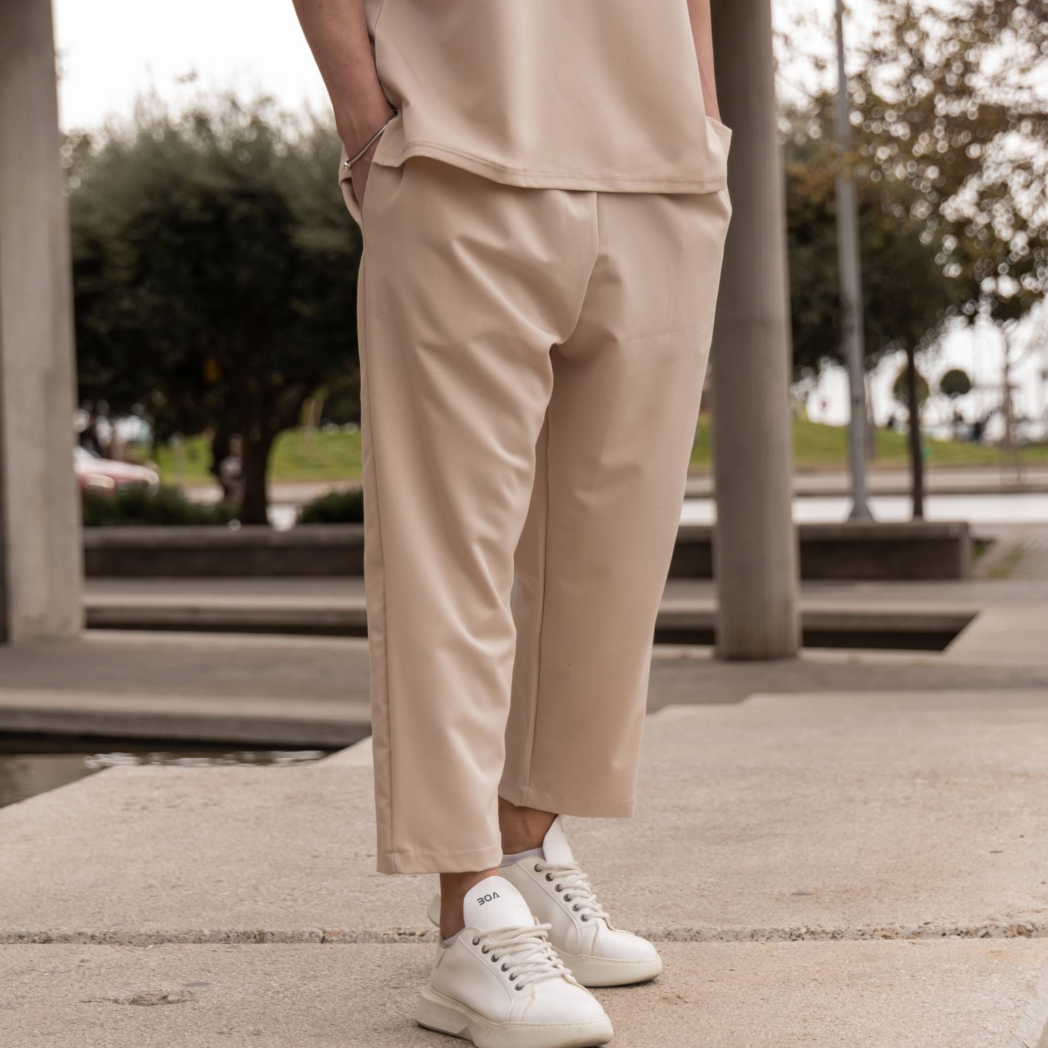Φόρμα παντελόνι μόκα με κορδόνι σε κανονική γραμμή