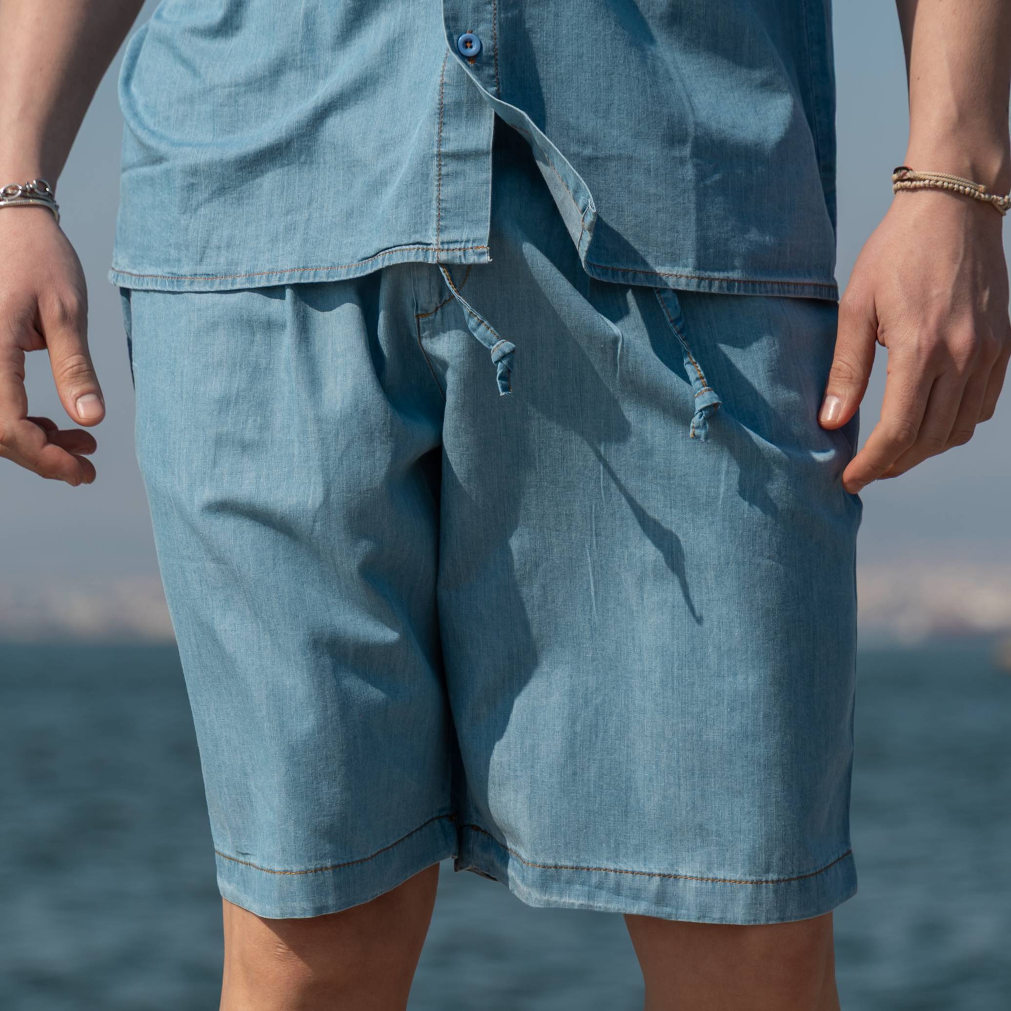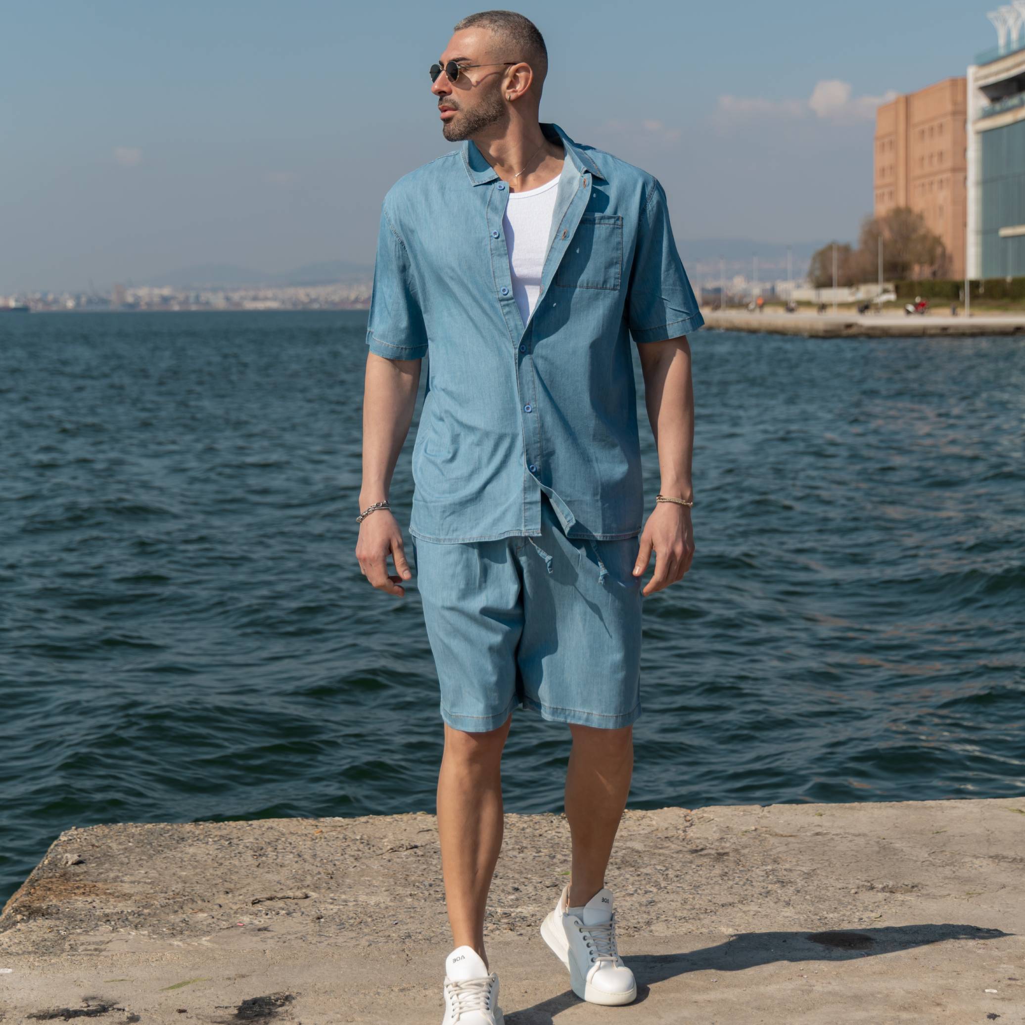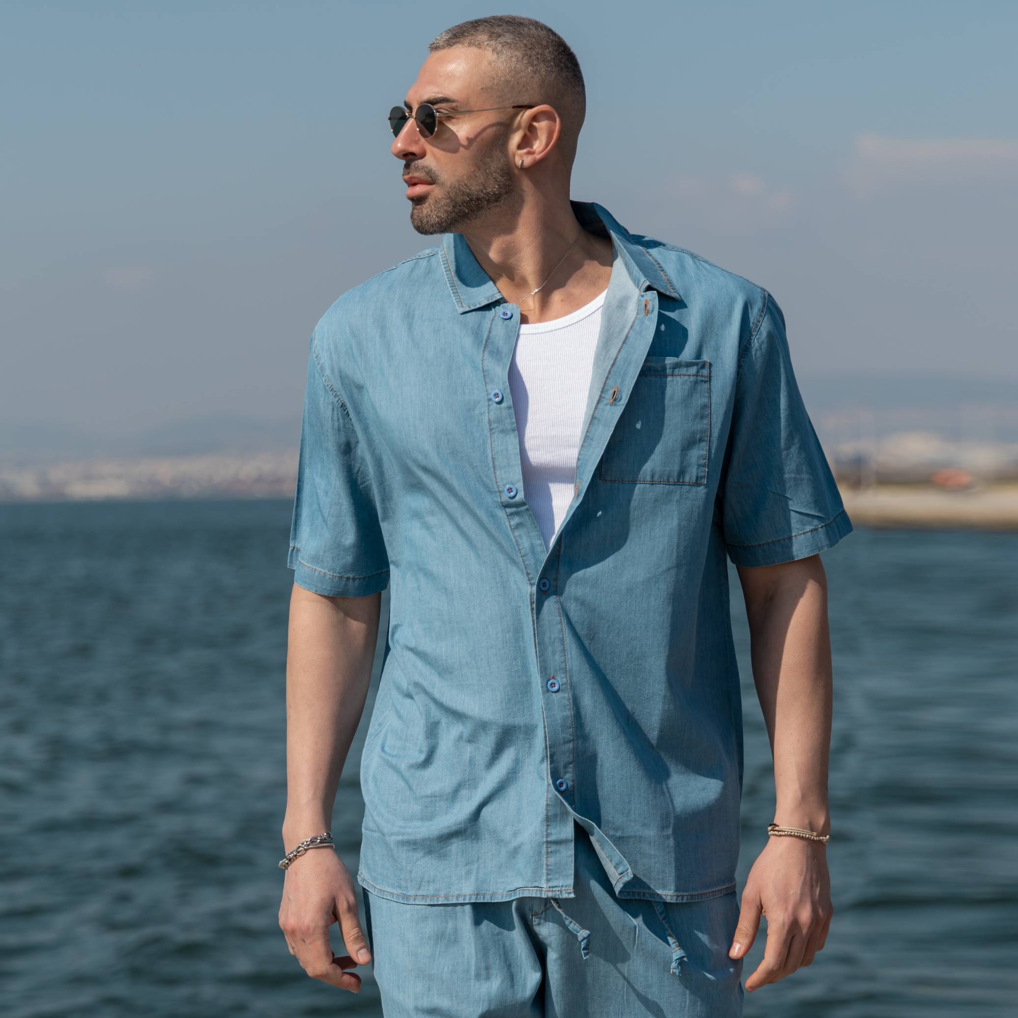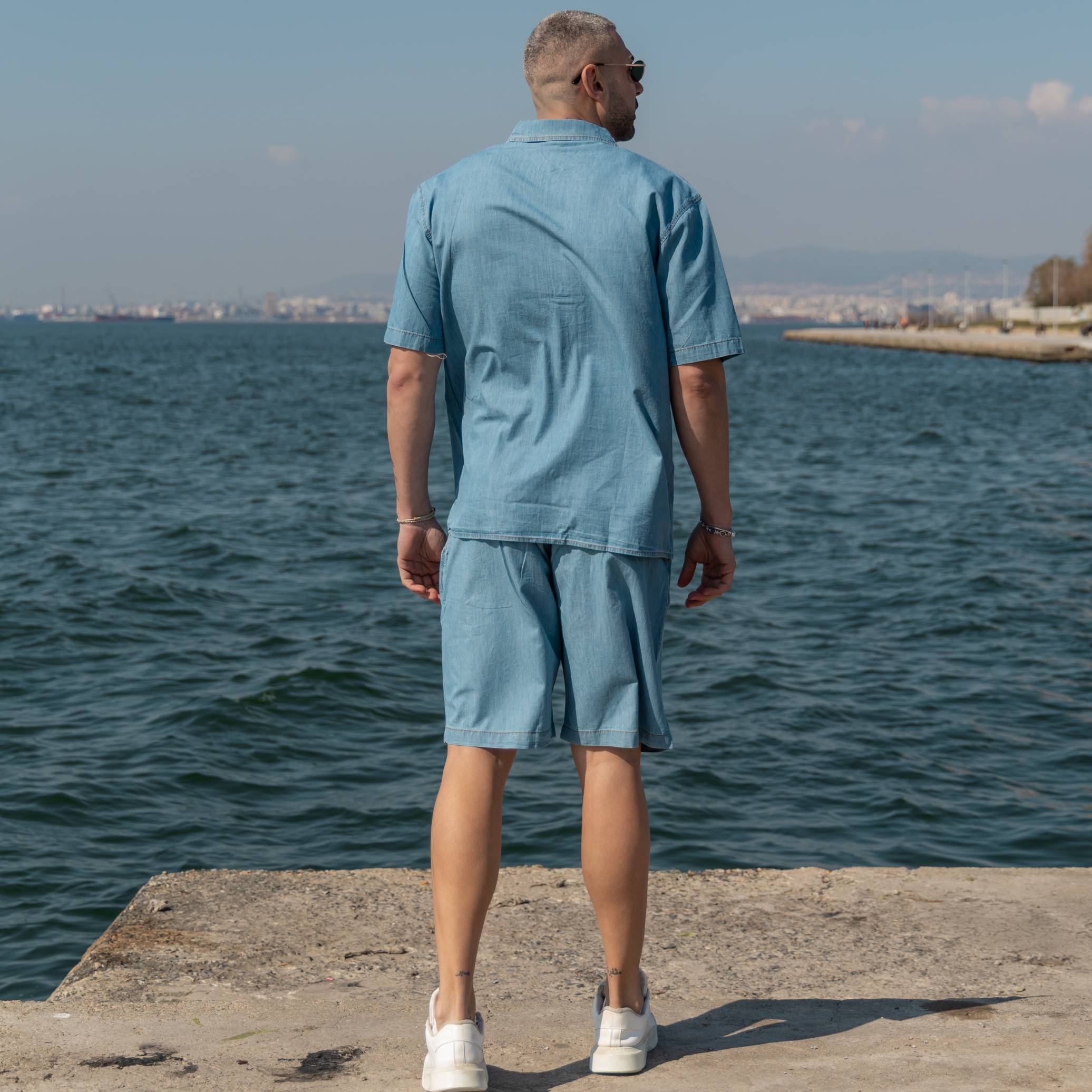 Σετ παντελόνι & πουκάμισο μαύρο μαο με κουμπί σε oversized γραμμή