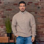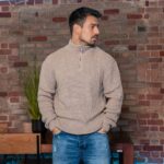 Μπλούζα πλεκτή μπεζ με φερμουάρ σε κανονική γραμμή