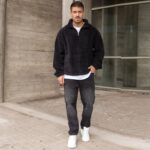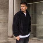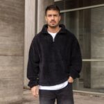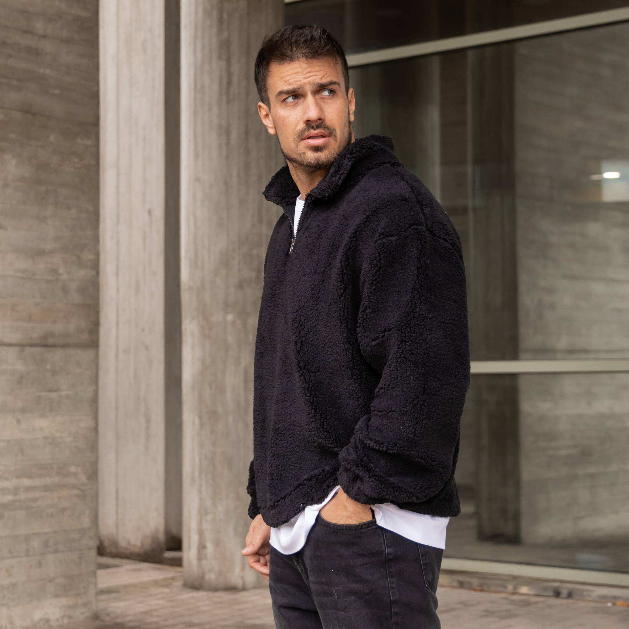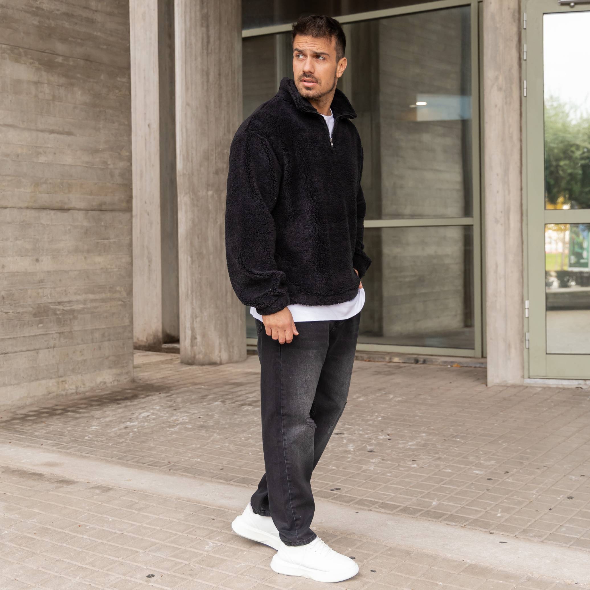 Fleece φούτερ μαύρο με φερμουάρ σε oversized γραμμή