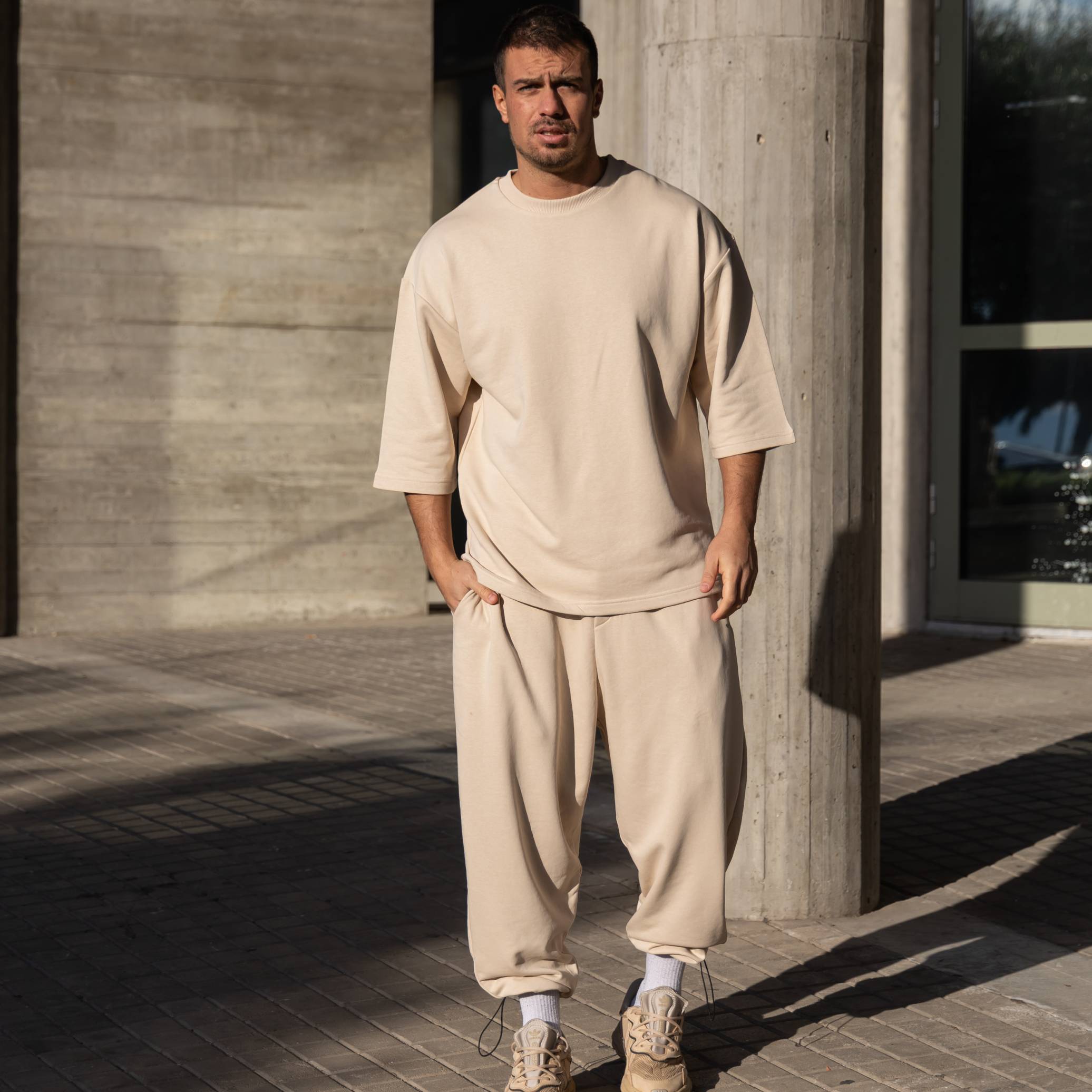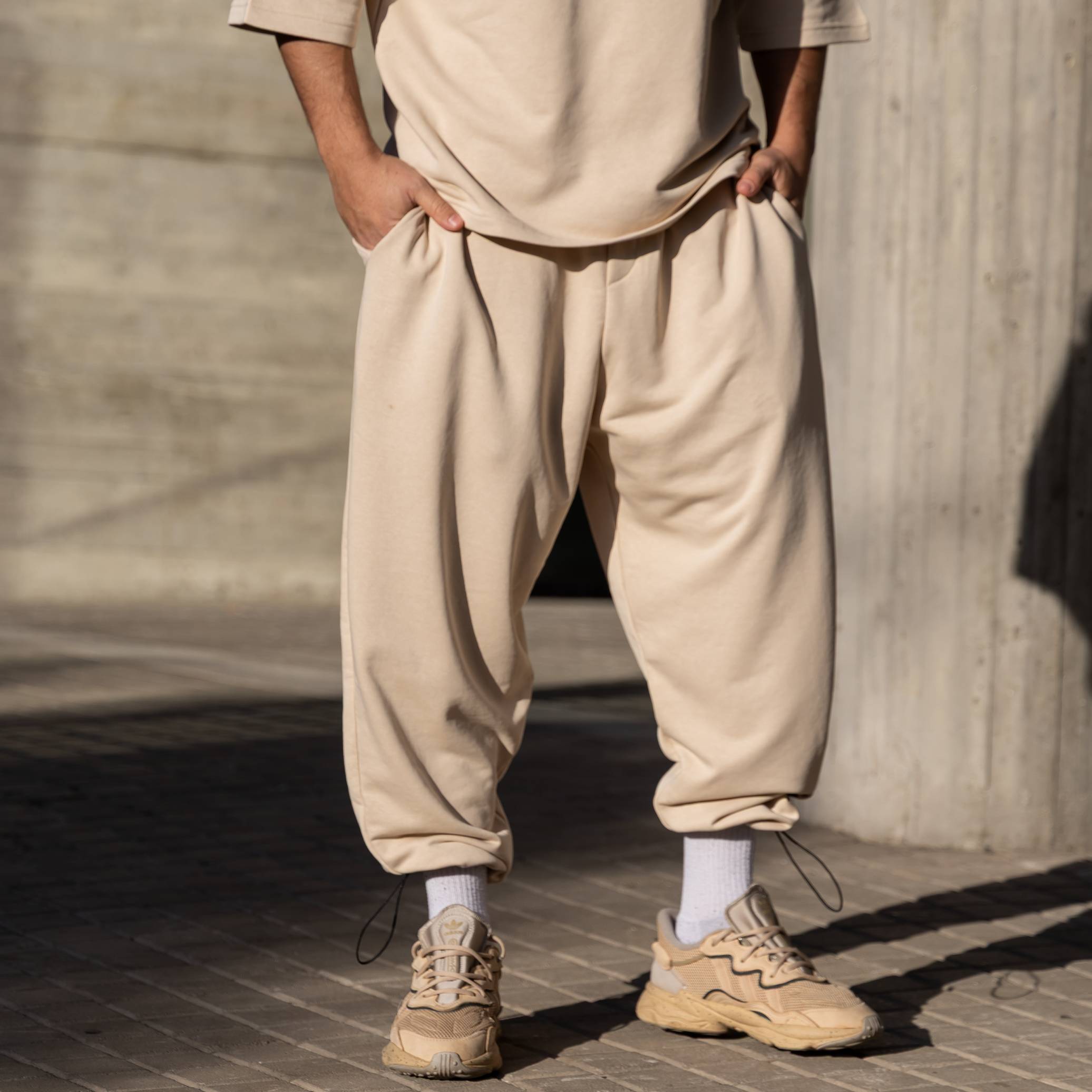 Φόρμα japaneese μπεζ με κορδόνι baggy σε oversized γραμμή