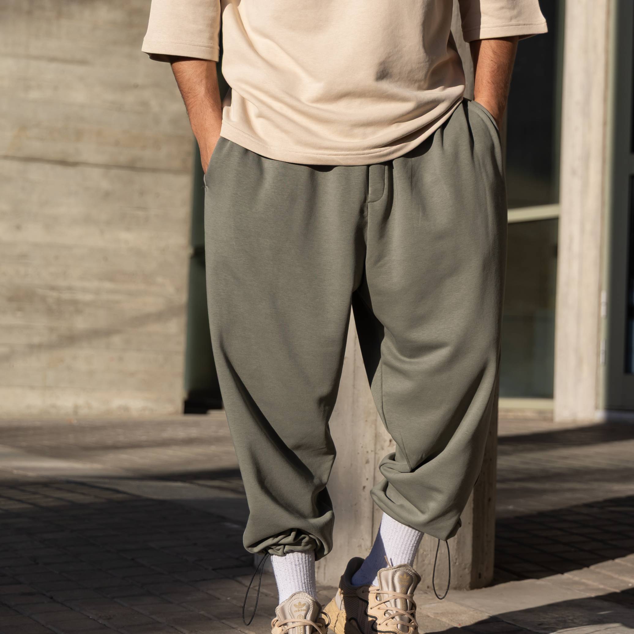 Φόρμα japaneese χακί με κορδόνι baggy σε oversized γραμμή