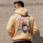 Φούτερ μπεζ labubu με κουκούλα σε άνετη γραμμή