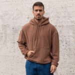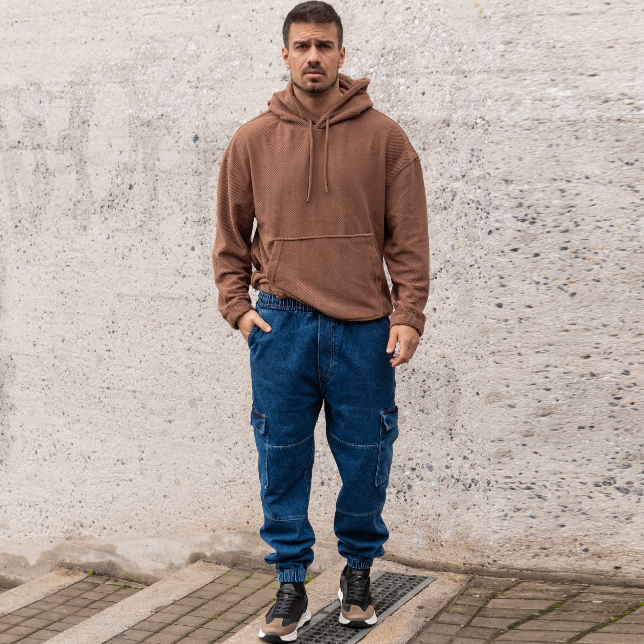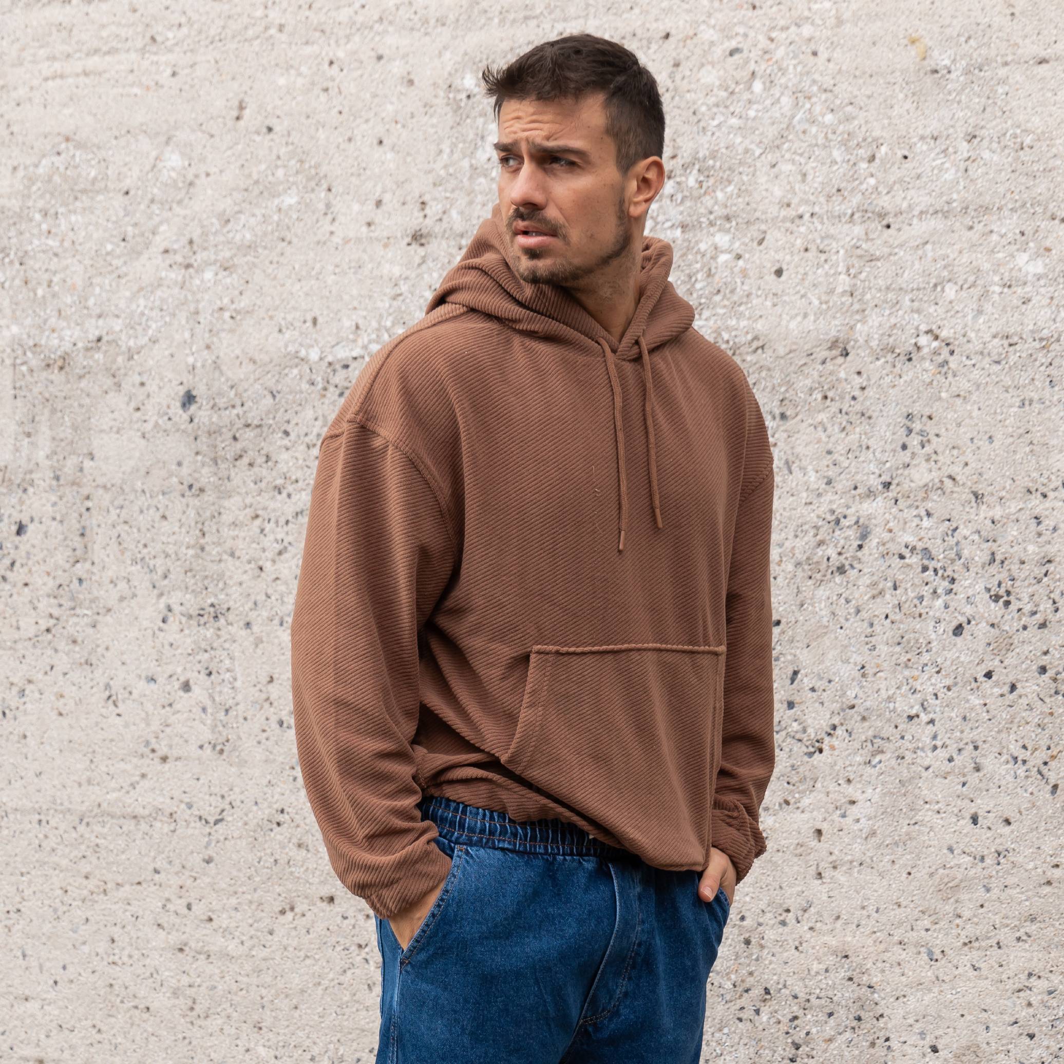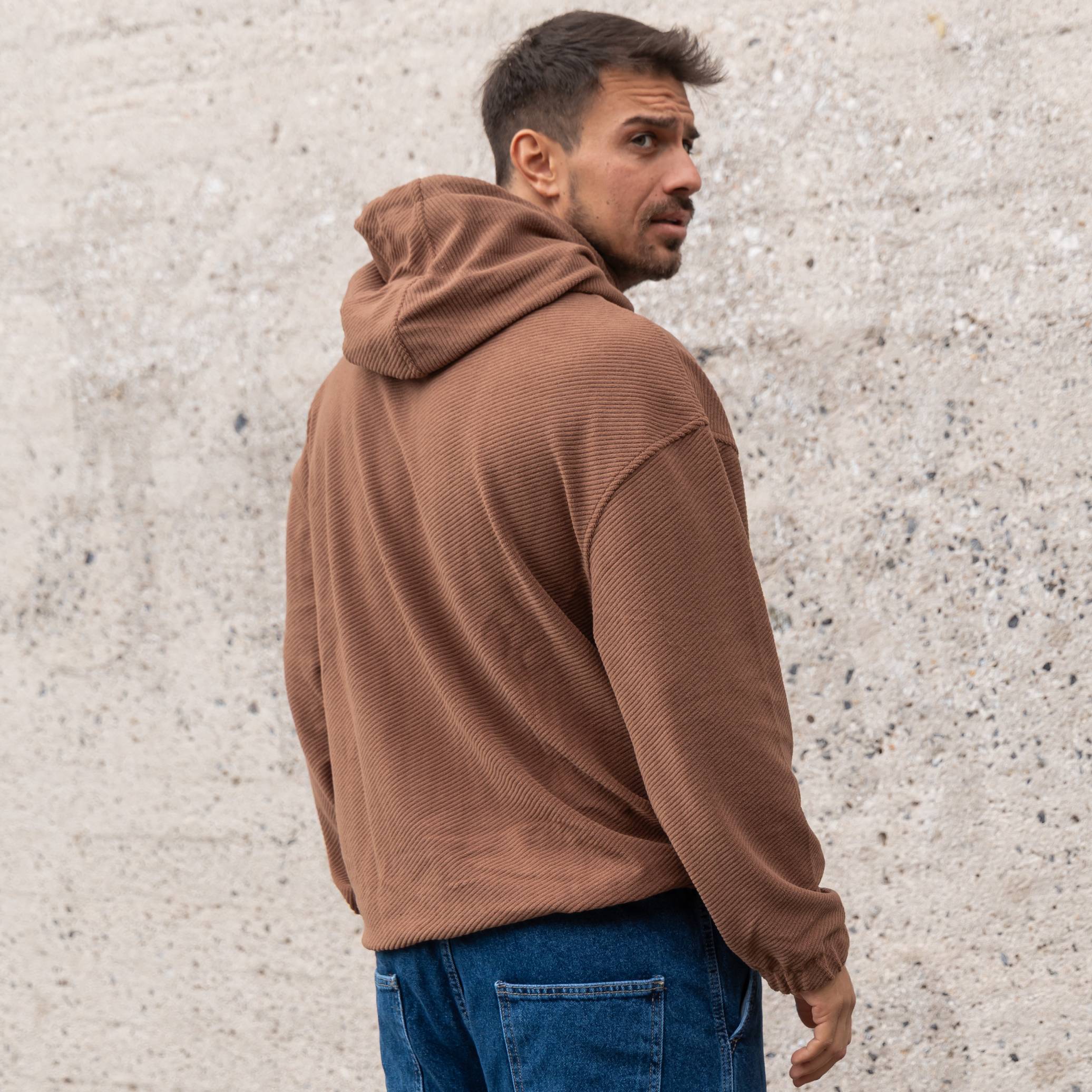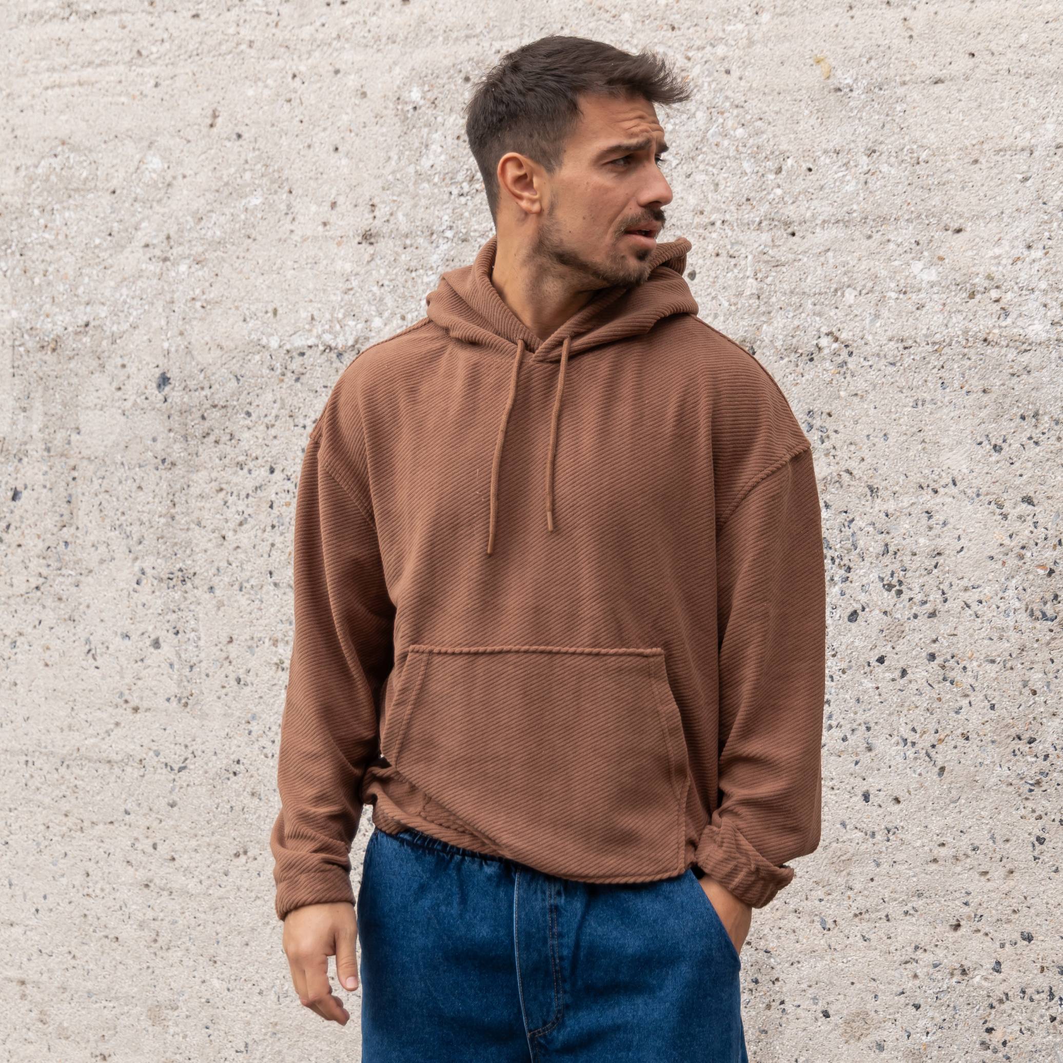 Φούτερ κοτλέ καφέ με κουκούλα σε oversized γραμμή