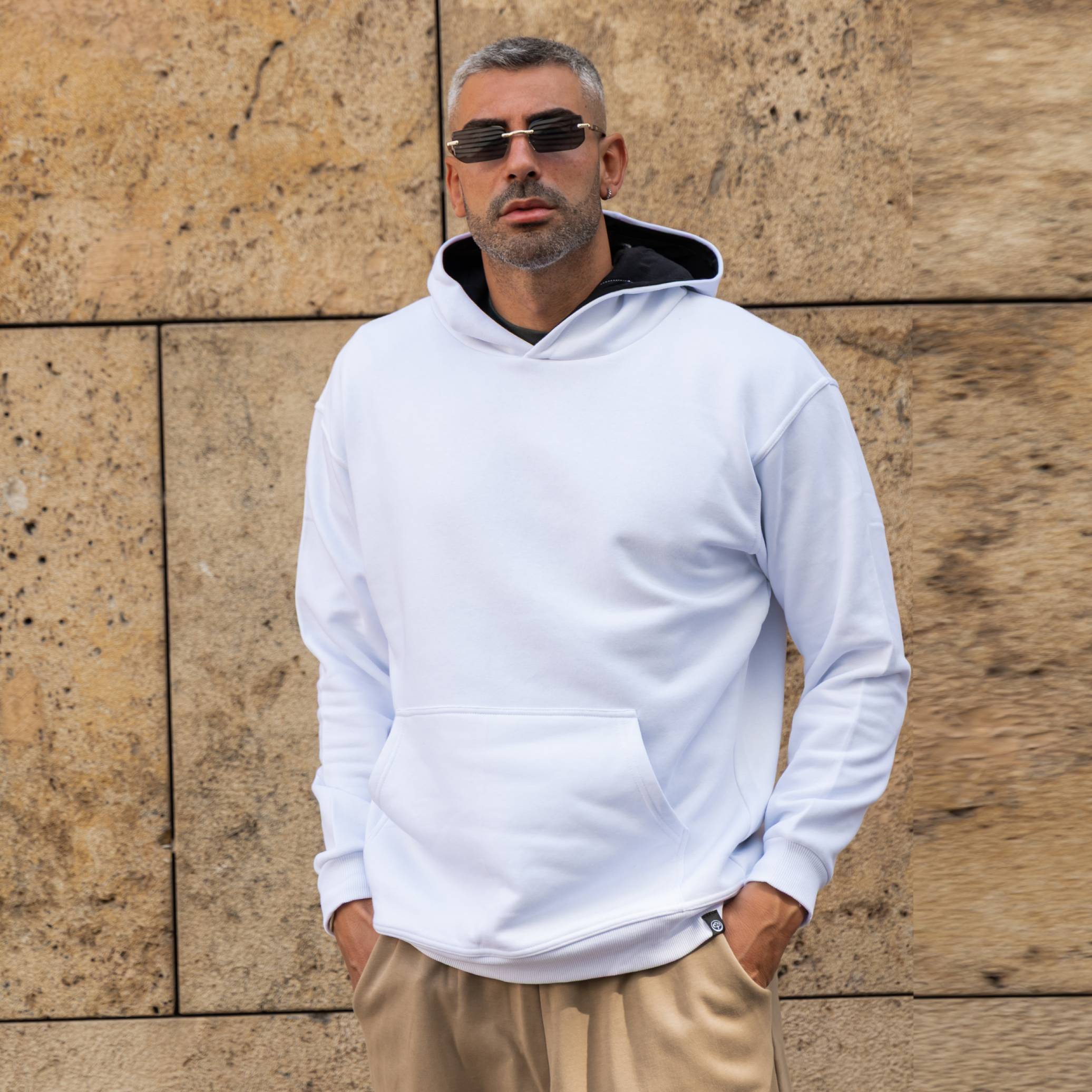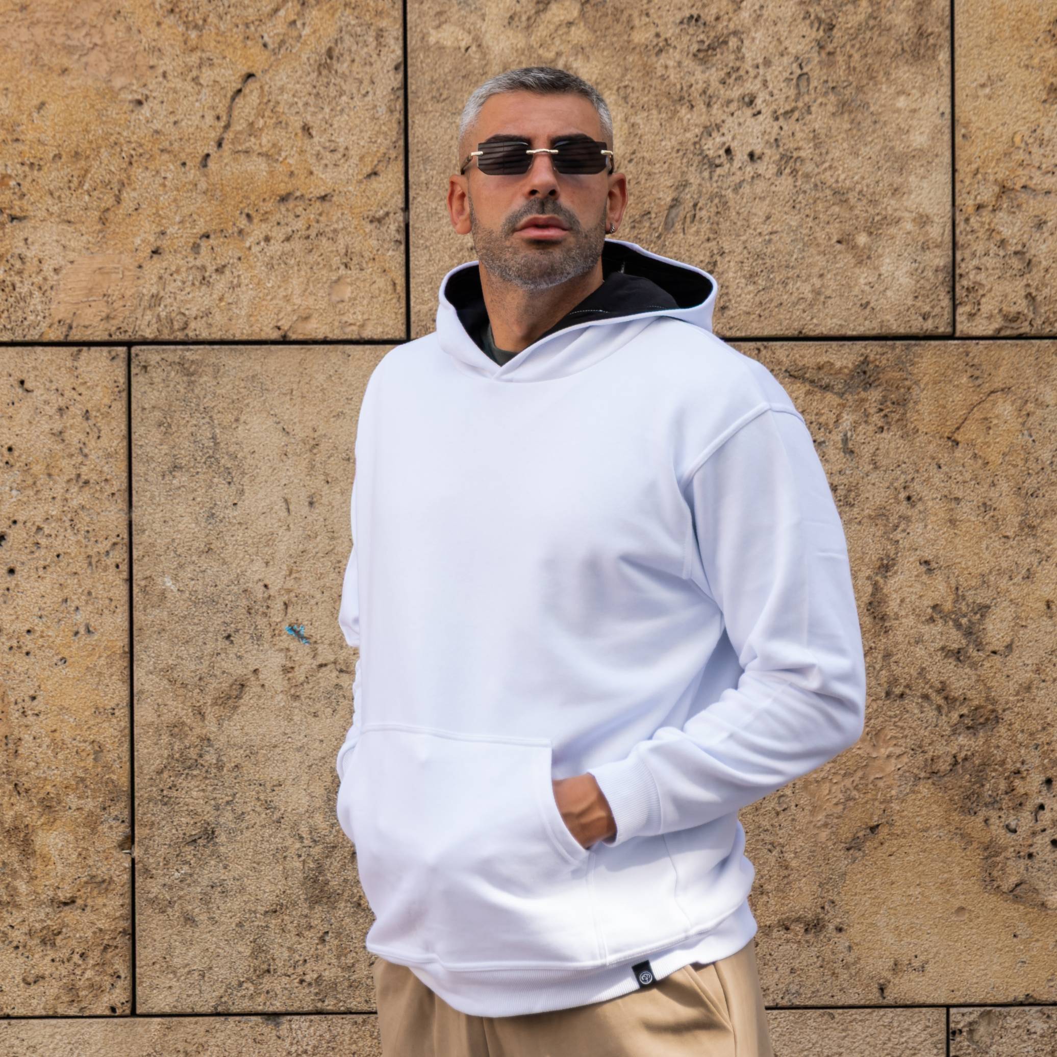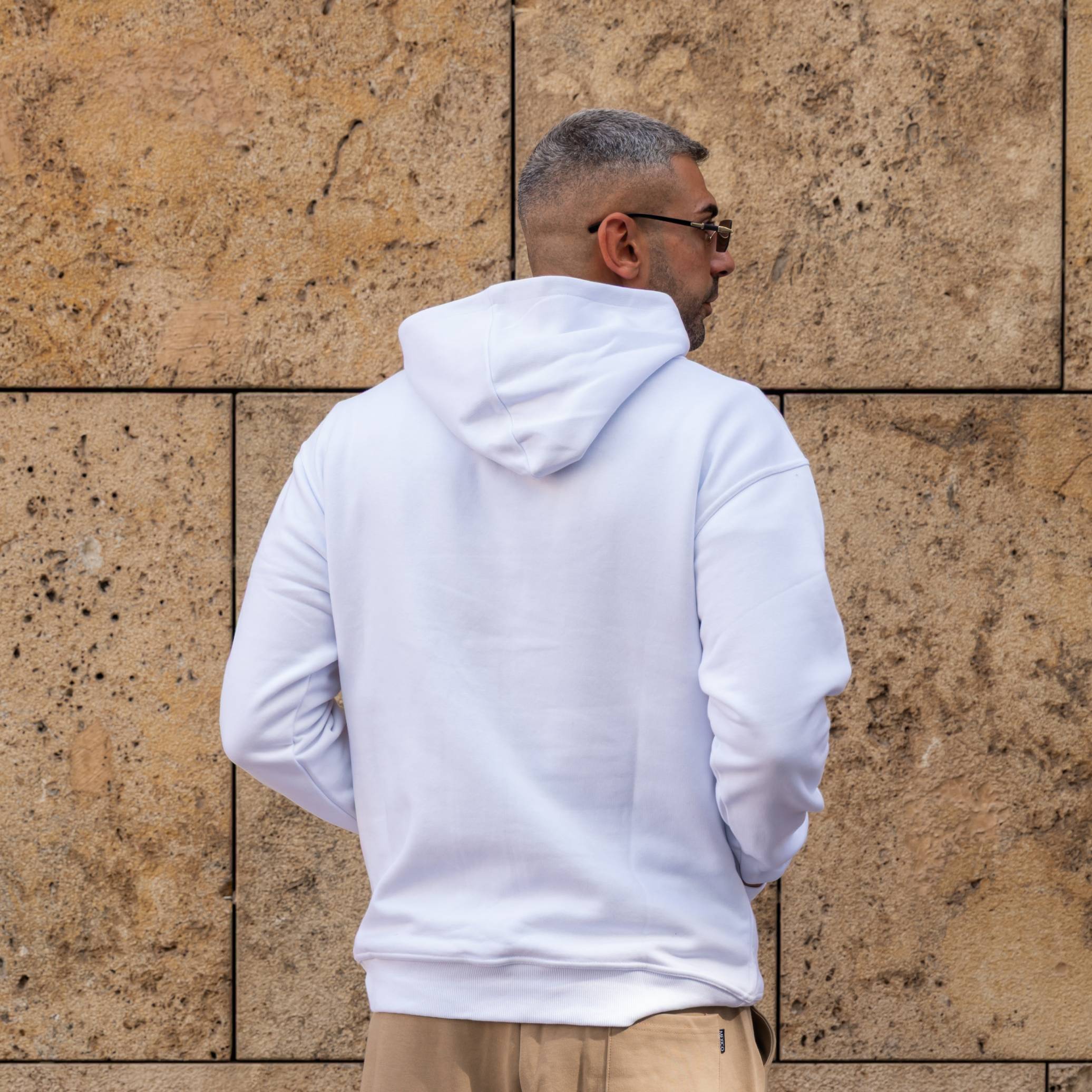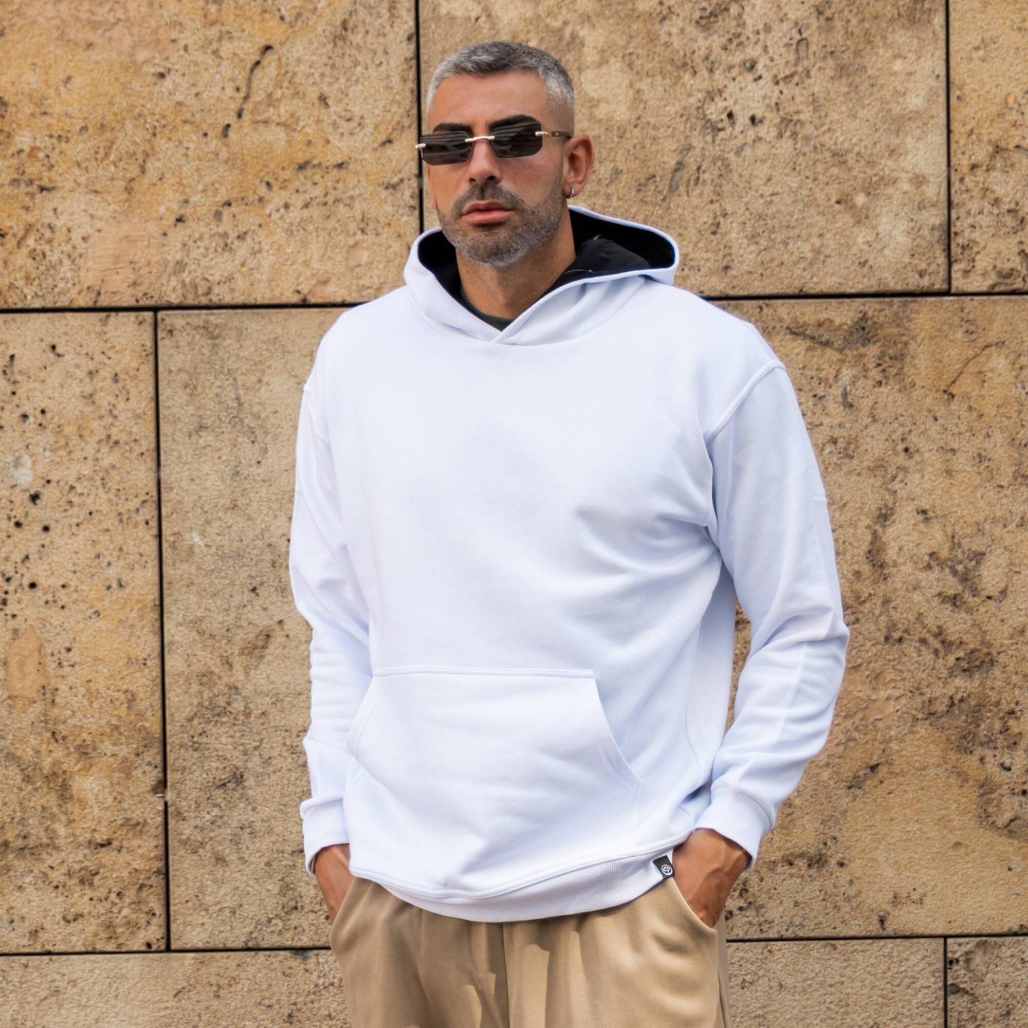 Φούτερ λευκό με κουκούλα σε oversized γραμμή
