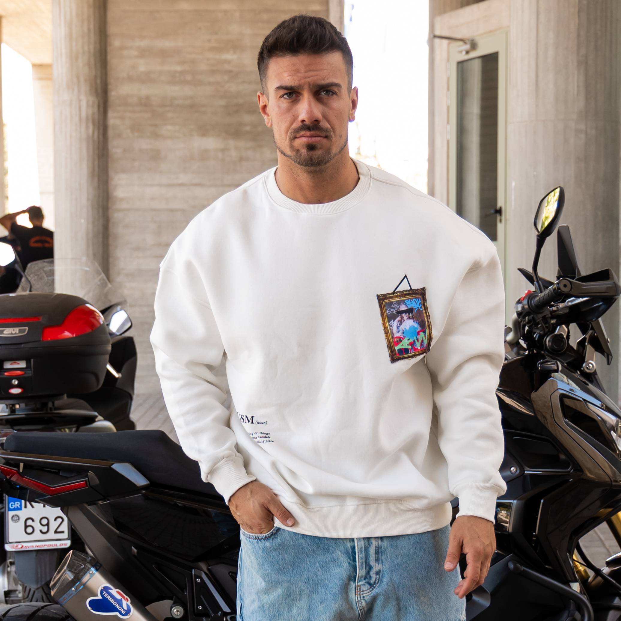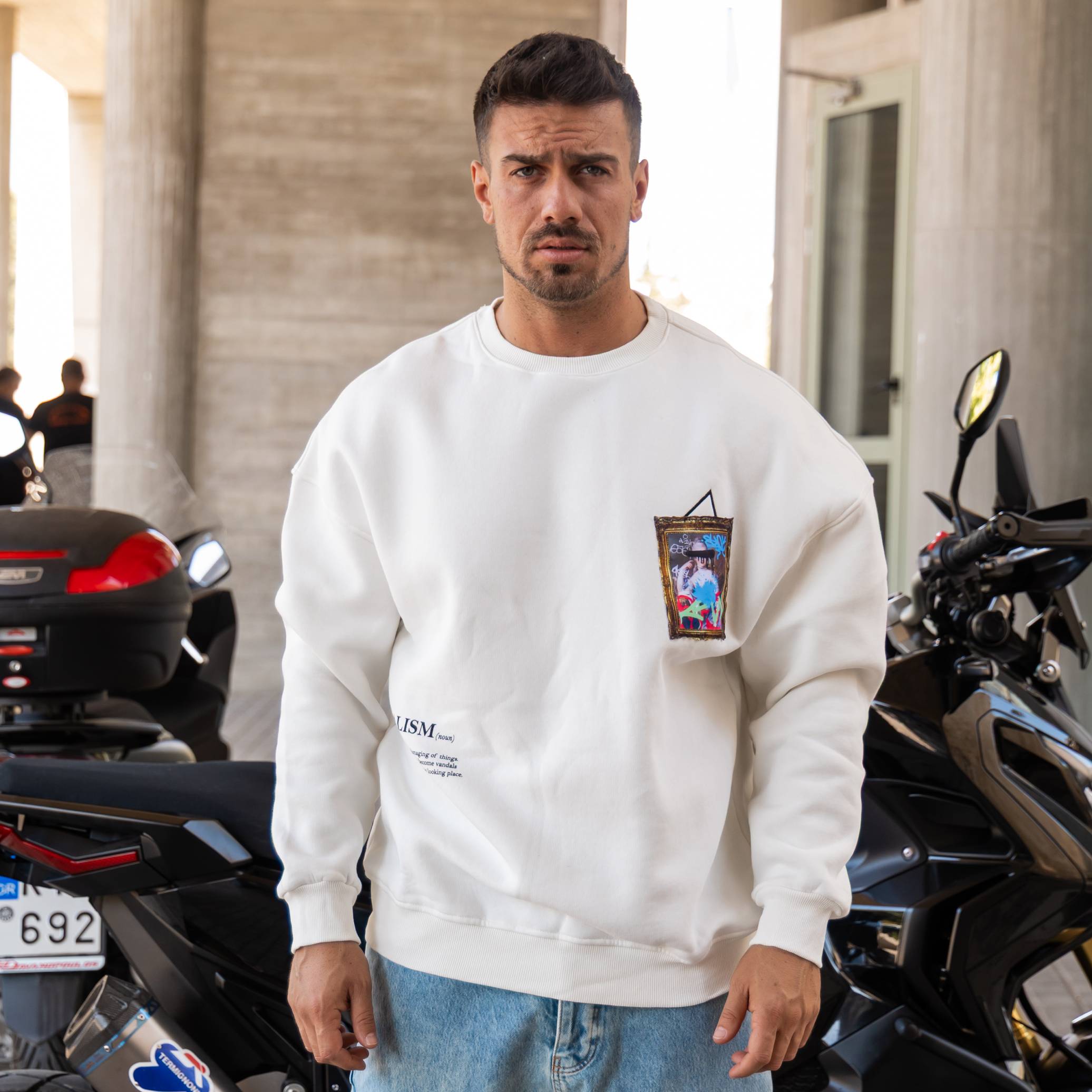 Φούτερ λευκό με στάμπα σε oversized γραμμή