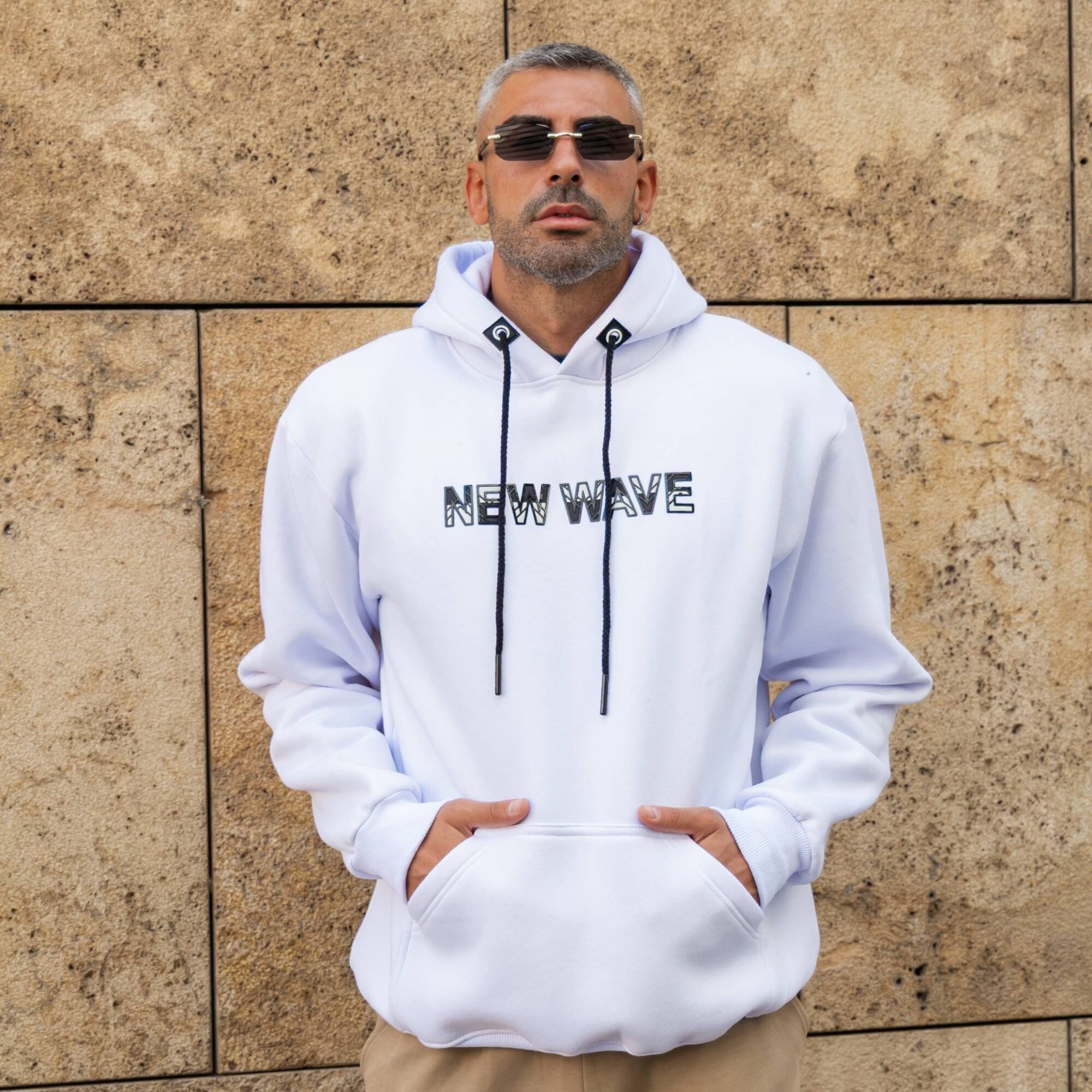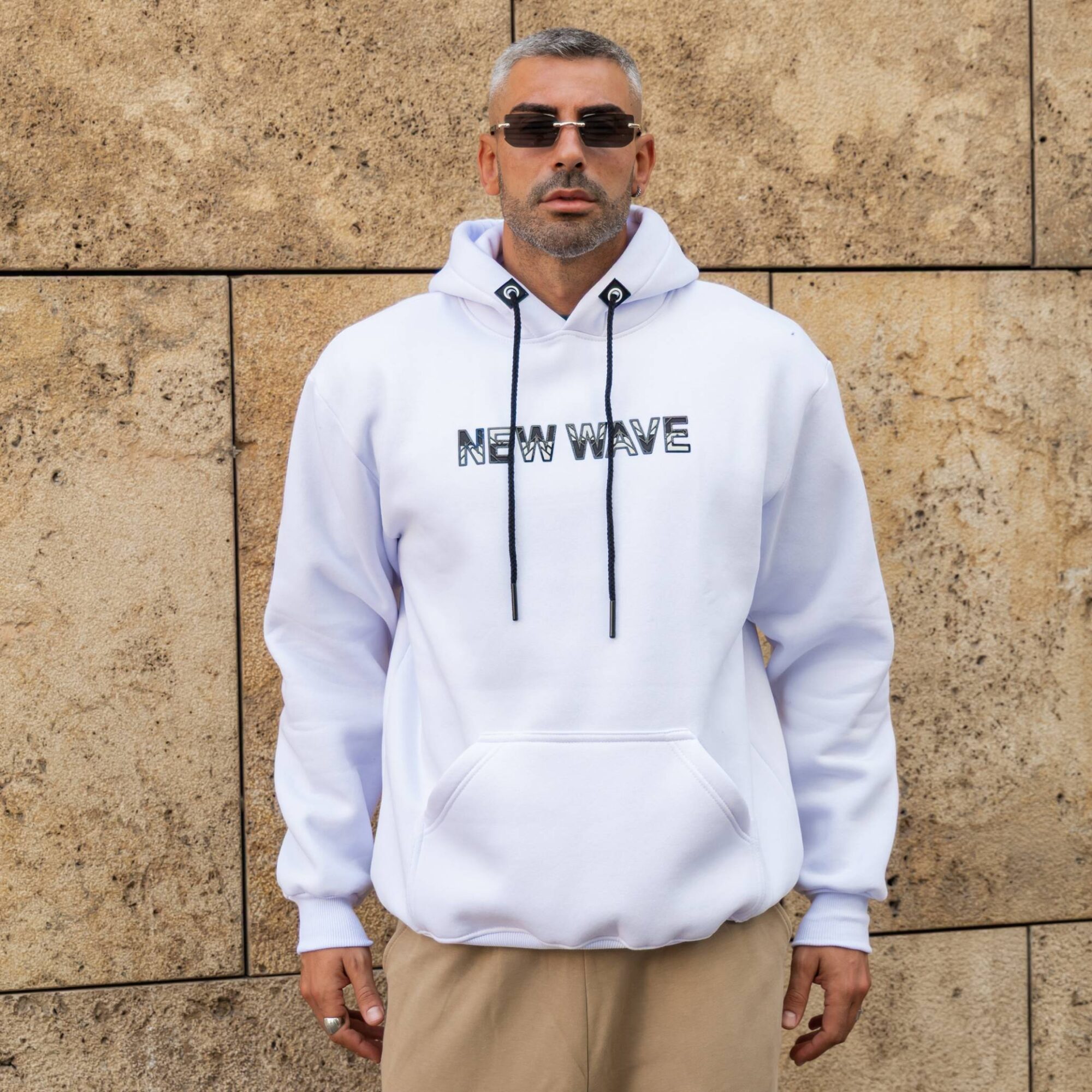 Φούτερ λευκό new wave σε κανονική γραμμή
