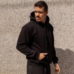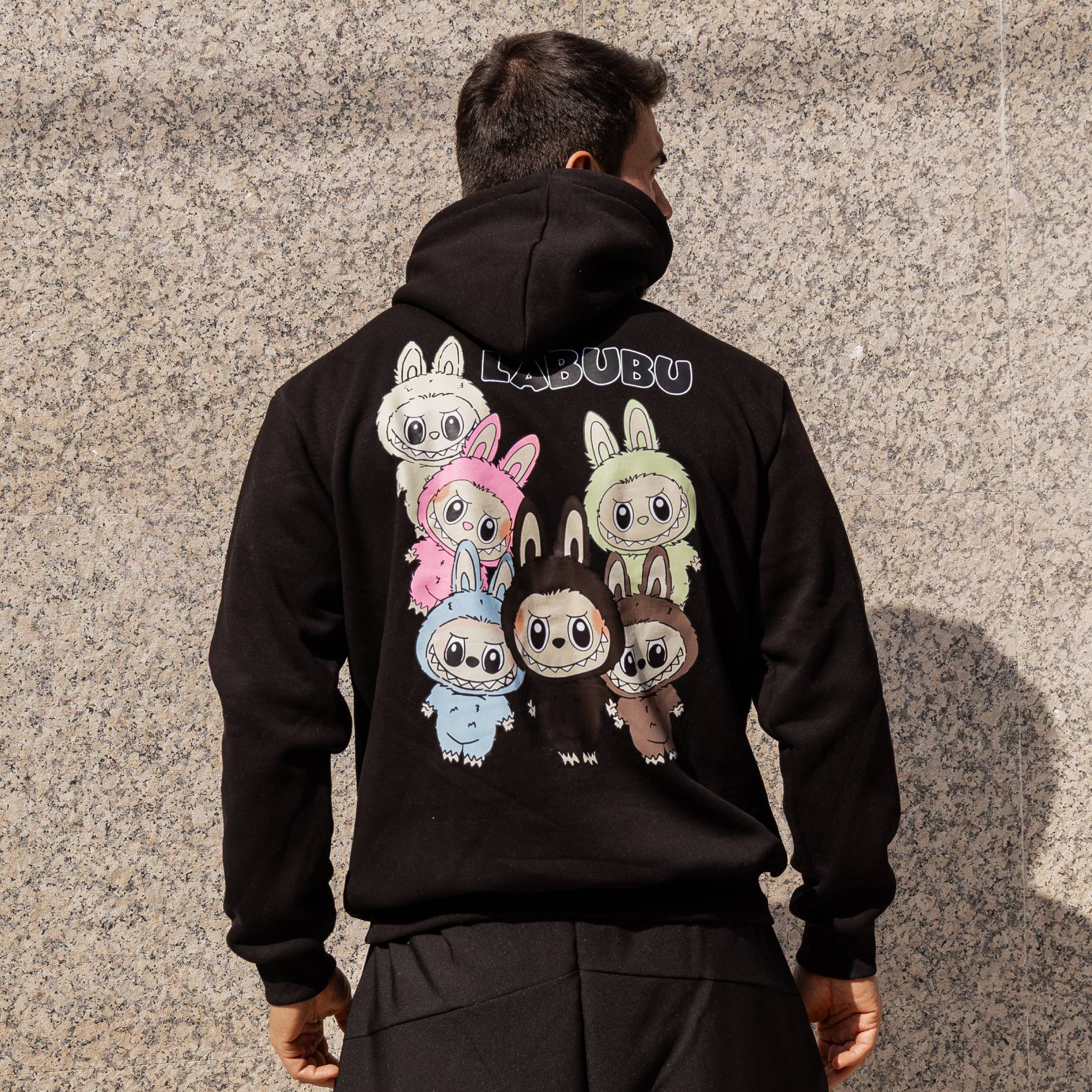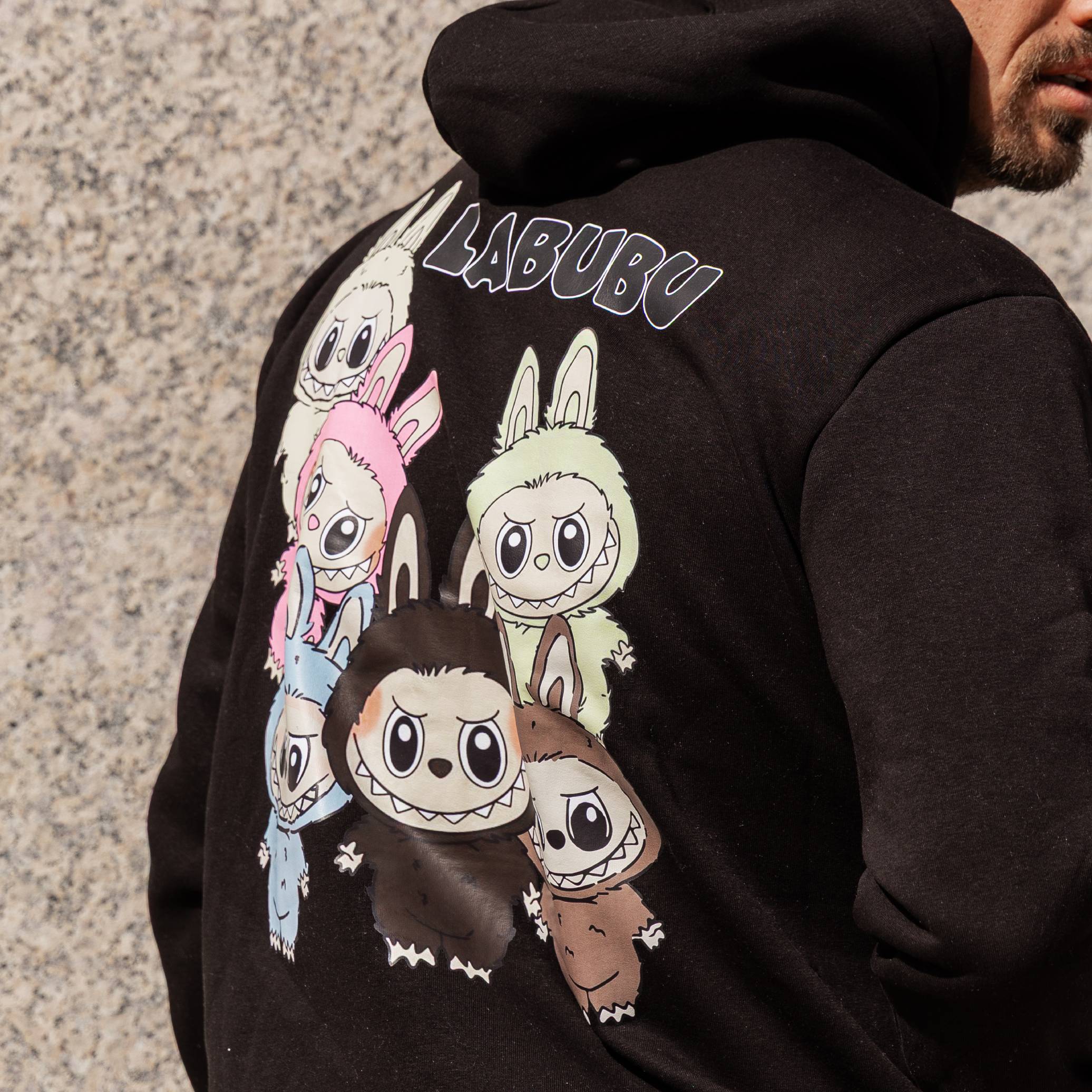 Φούτερ μαύρη labubu με κουκούλα σε άνετη γραμμή