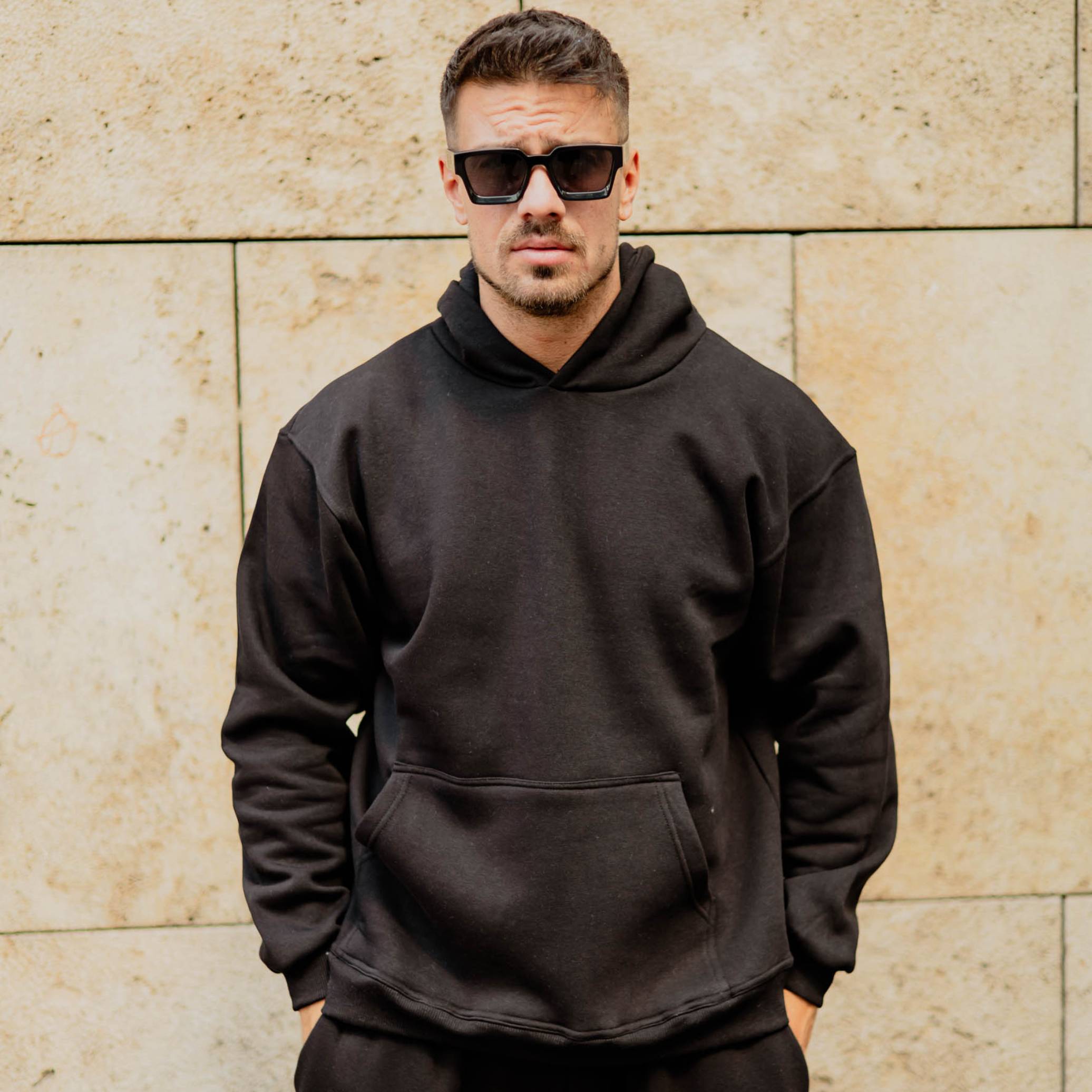 Φούτερ μαύρη με κουκούλα σε oversized γραμμή