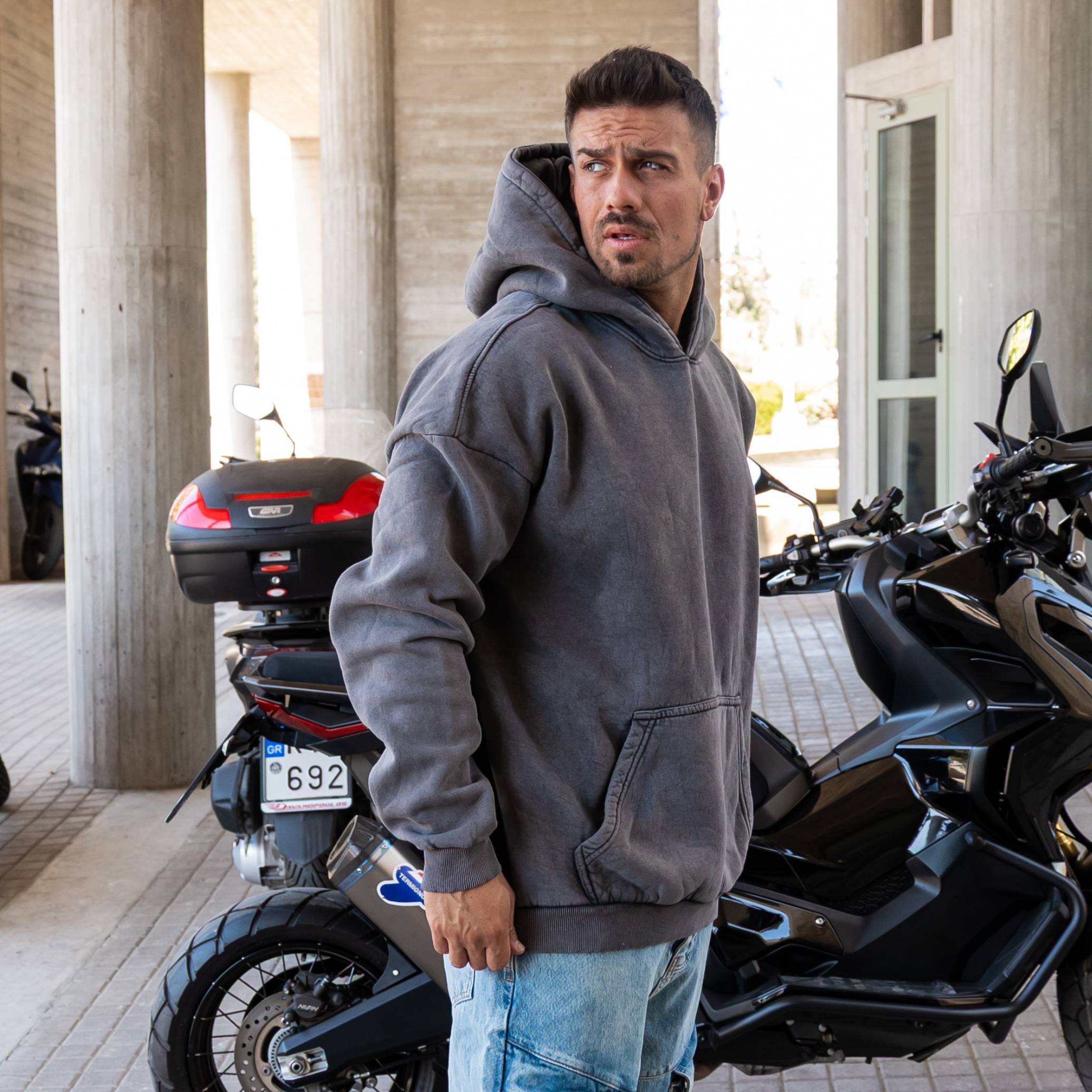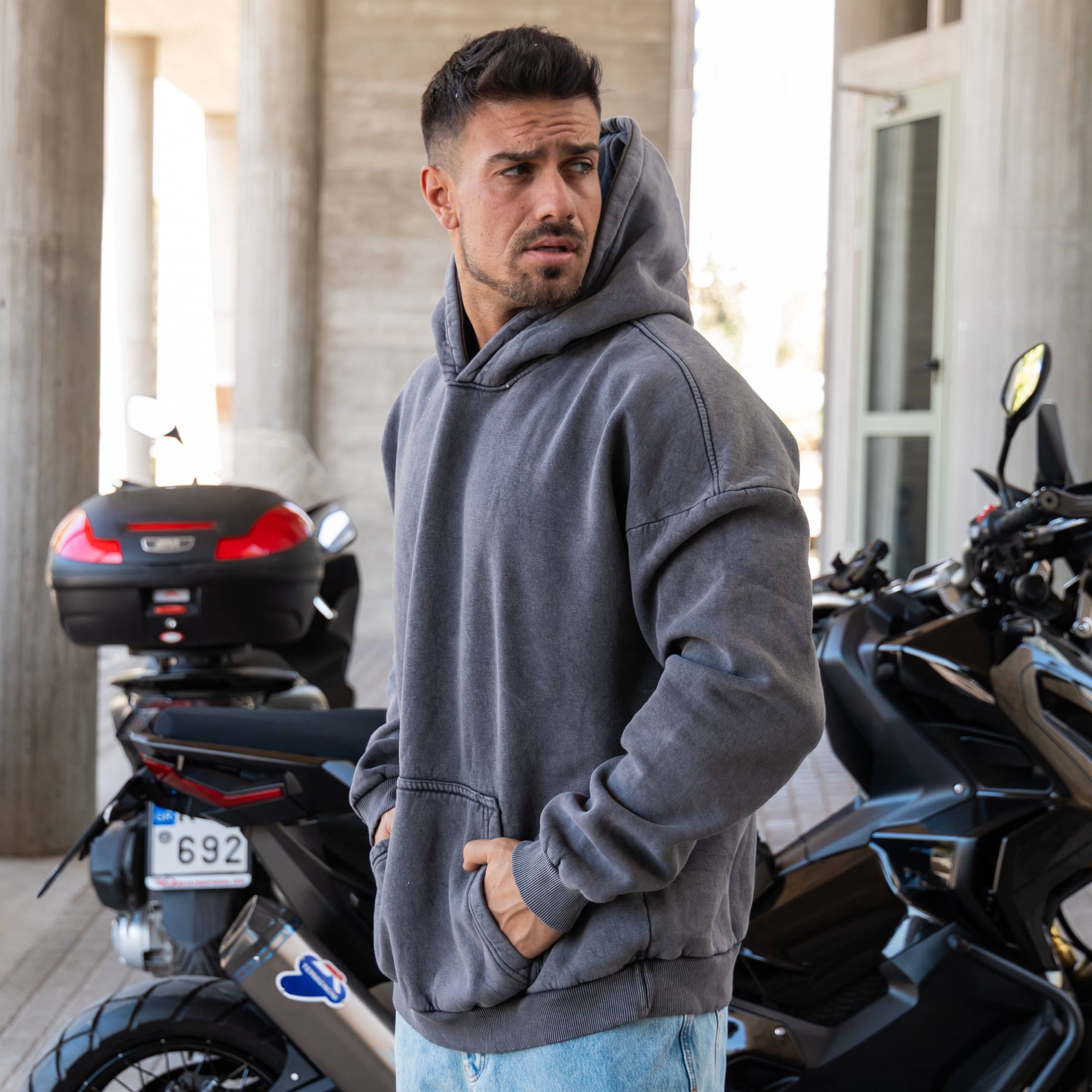 Φούτερ πετροπλυμένο με κουκούλα σε oversized γραμμή
