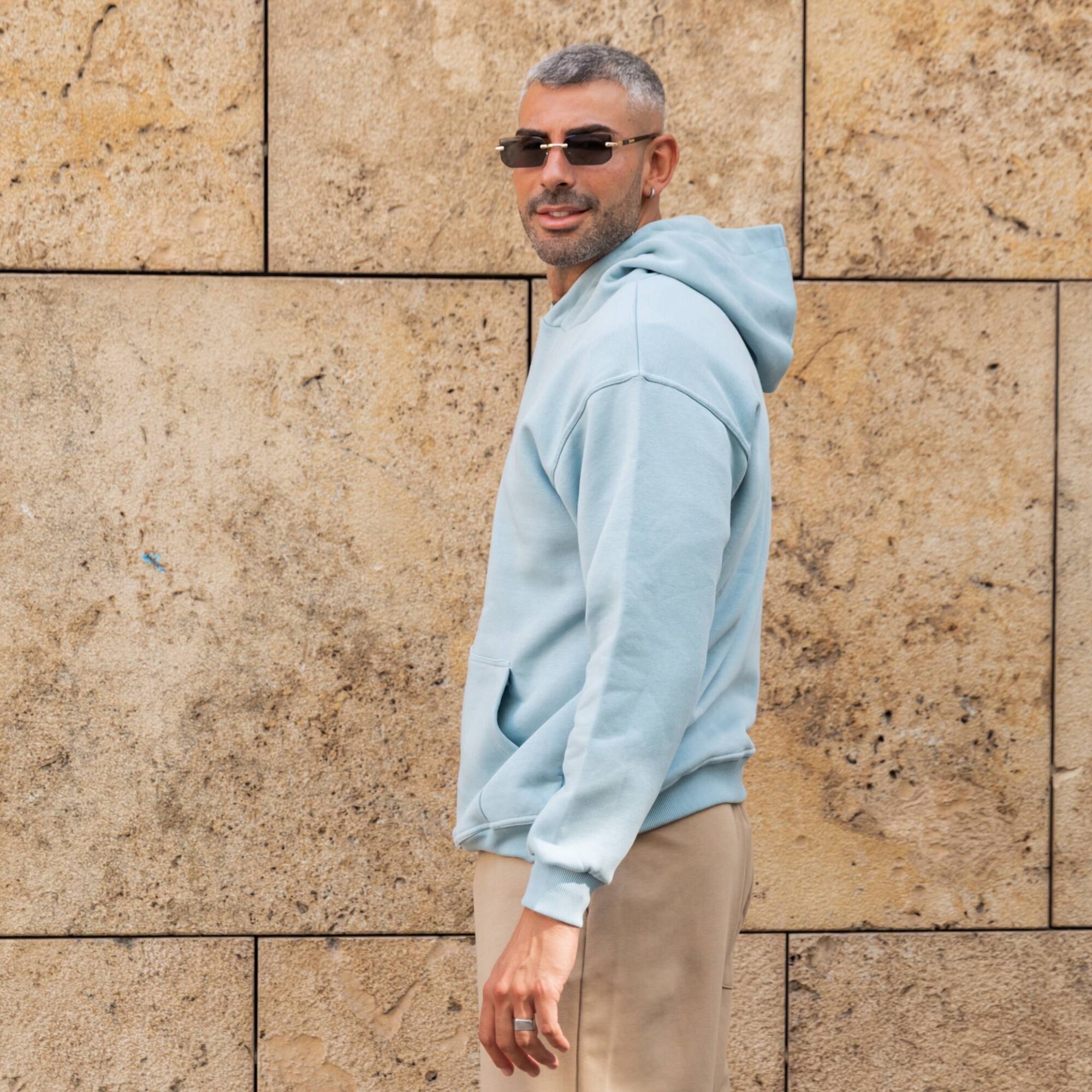 Φούτερ σιέλ με κουκούλα σε oversized γραμμή