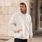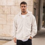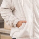 Γουνάκι ζακέτα μπεζ με φερμουάρ σε oversized γραμμή