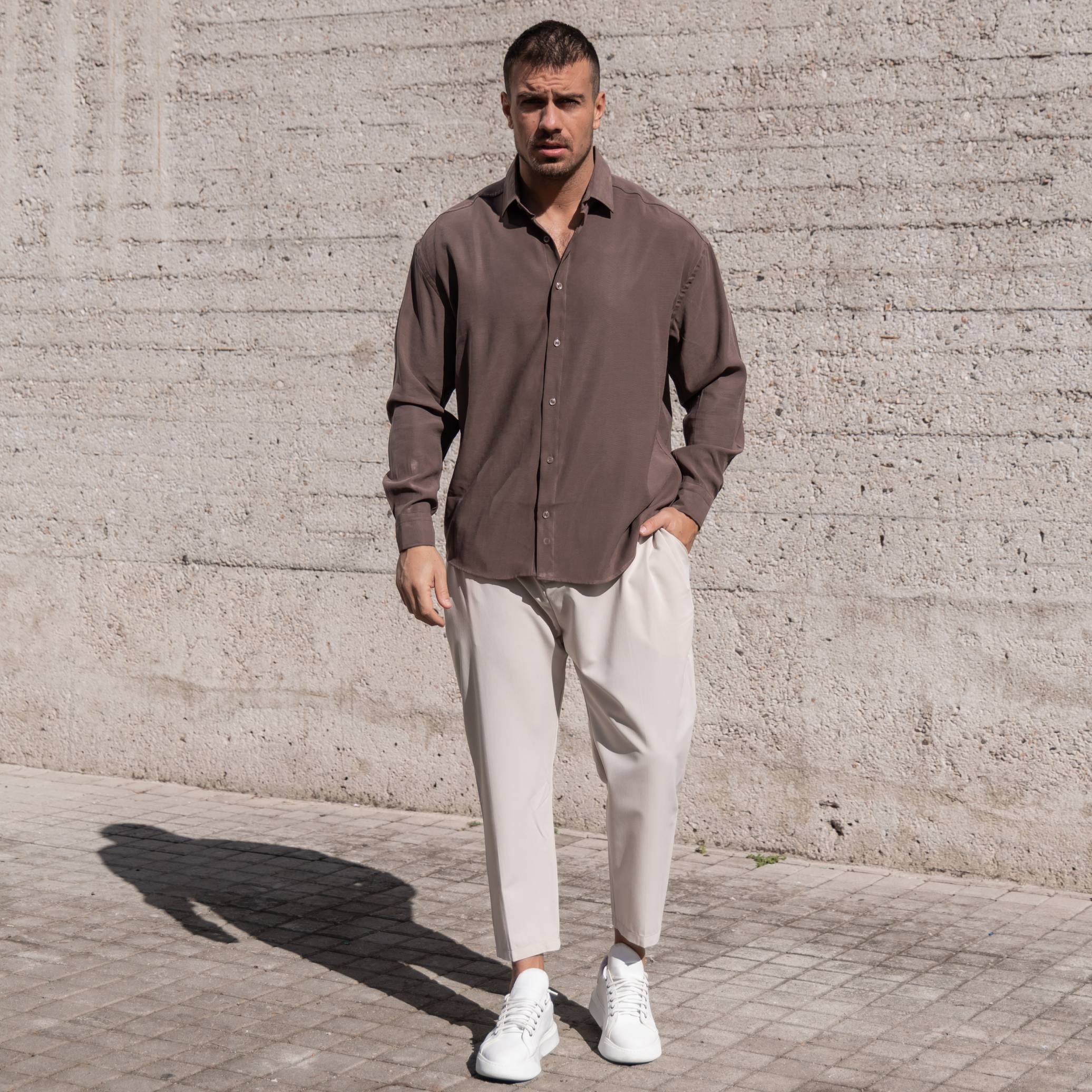Πουκάμισο κοτλέ γκρι σε κανονική γραμμή