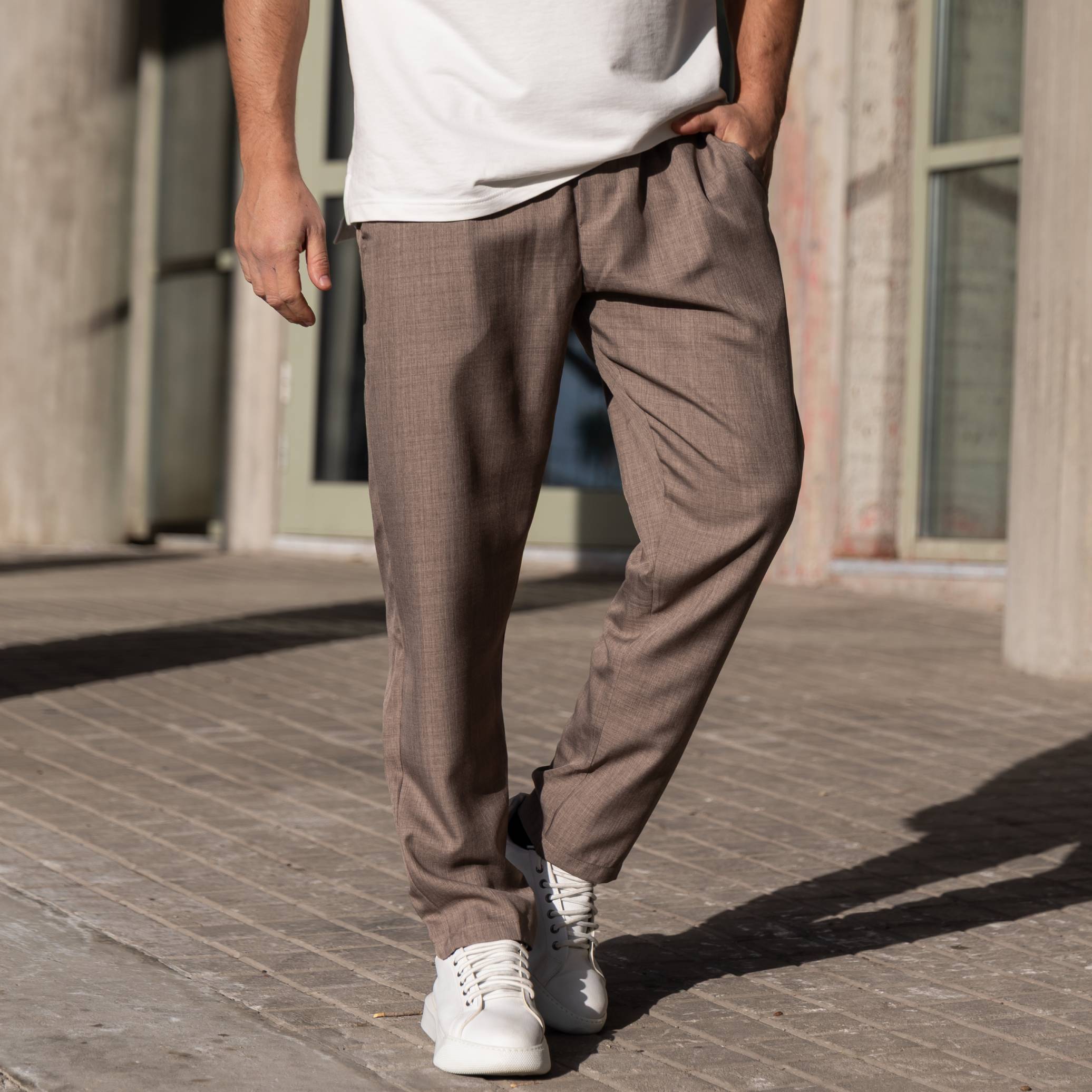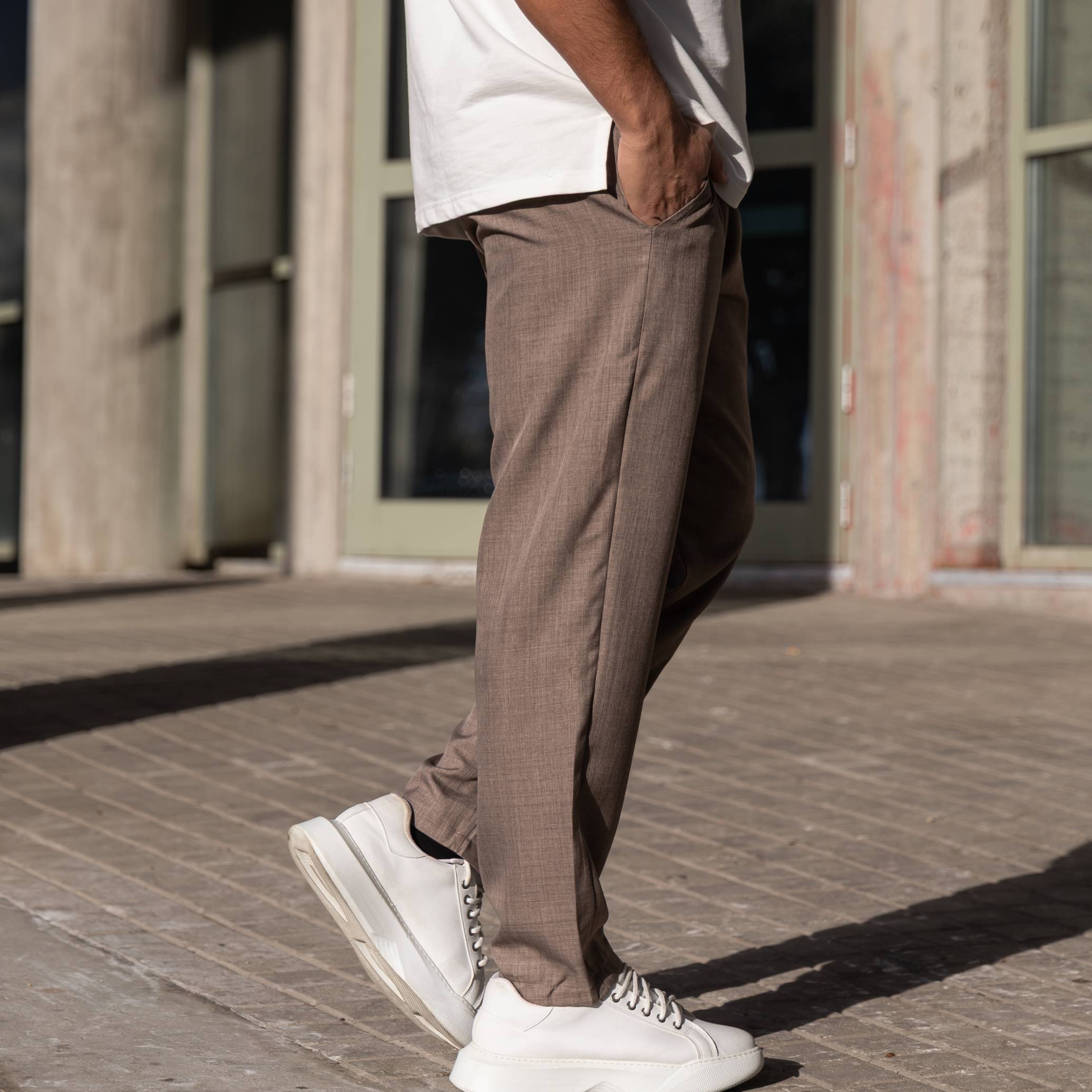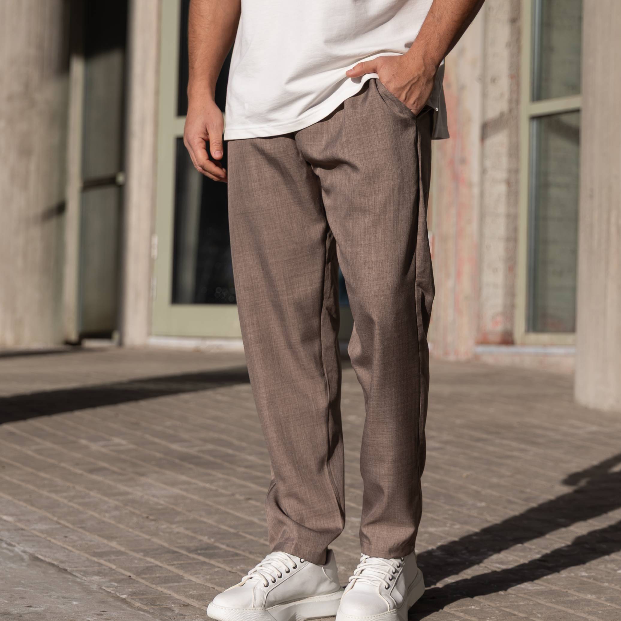 Παντελόνι μπεζ υφασμάτινο κανονική γραμμή