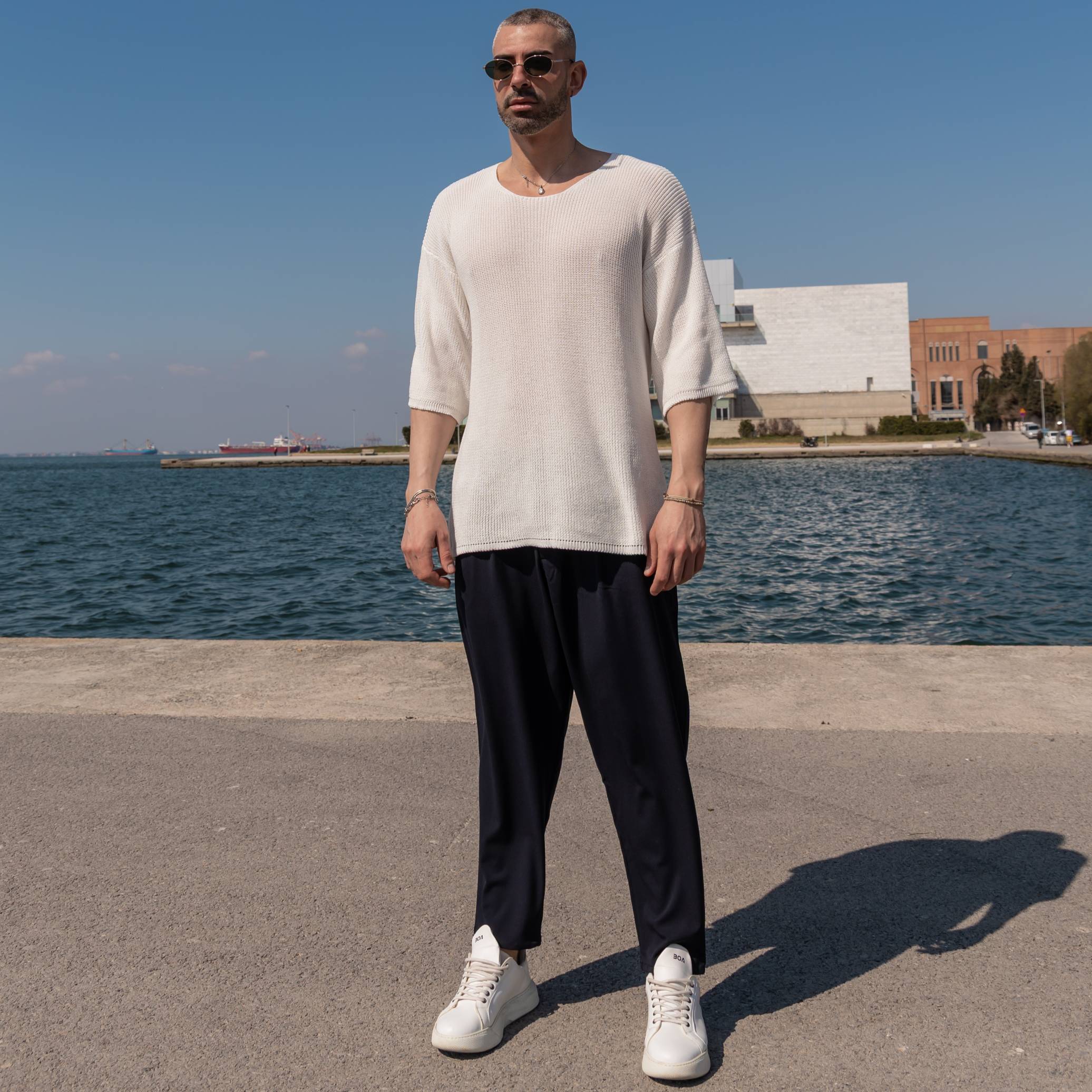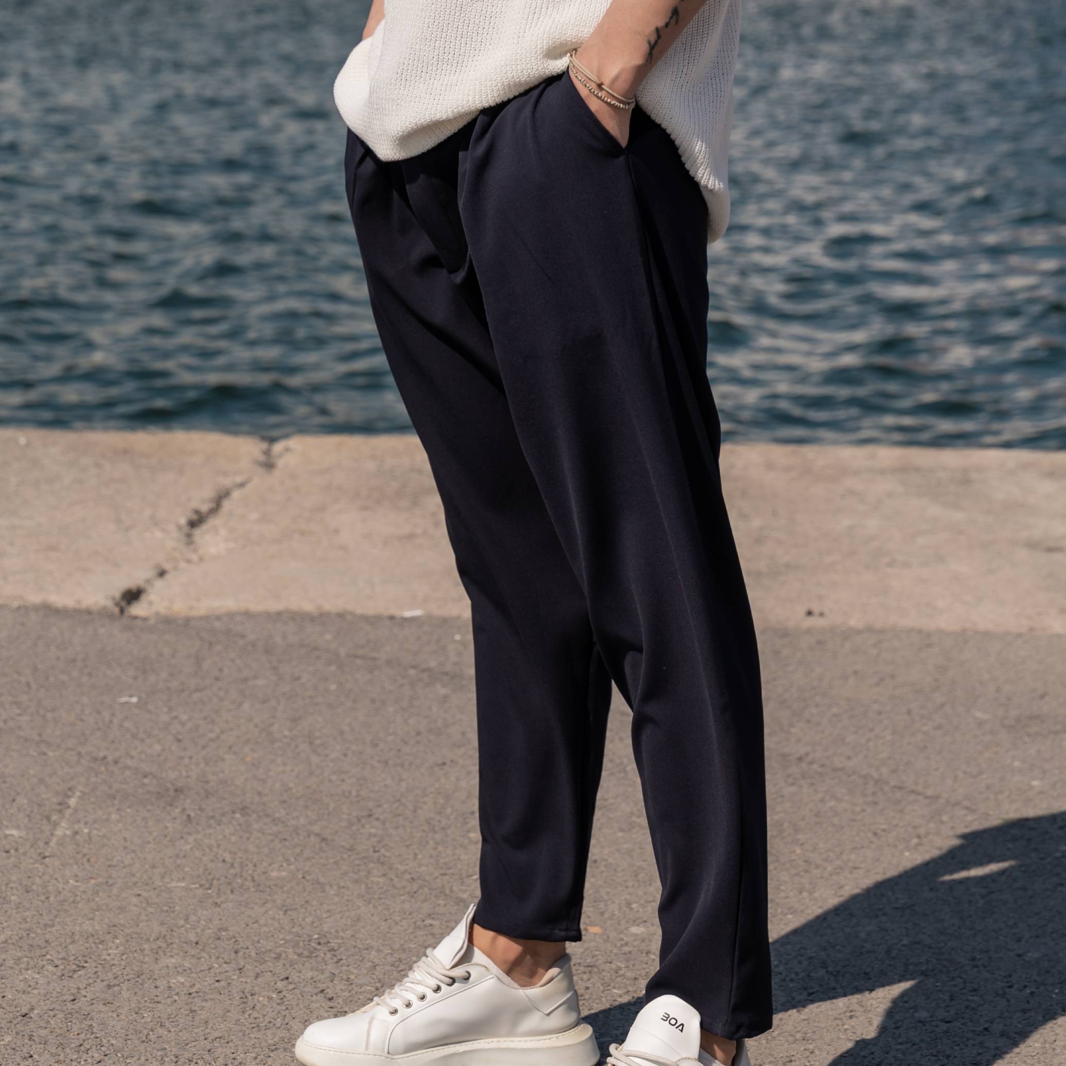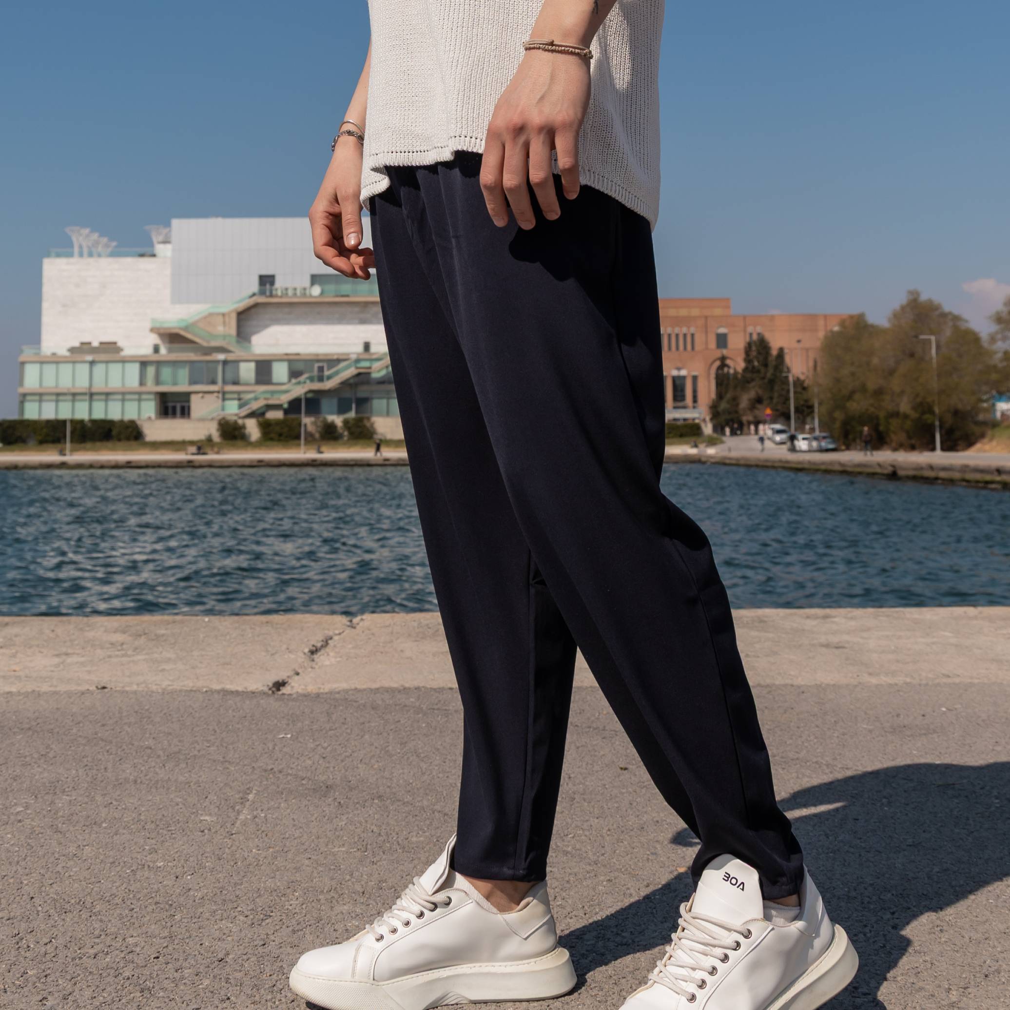 Παντελόνι μπλε με πιέτες σε άνετη γραμμή