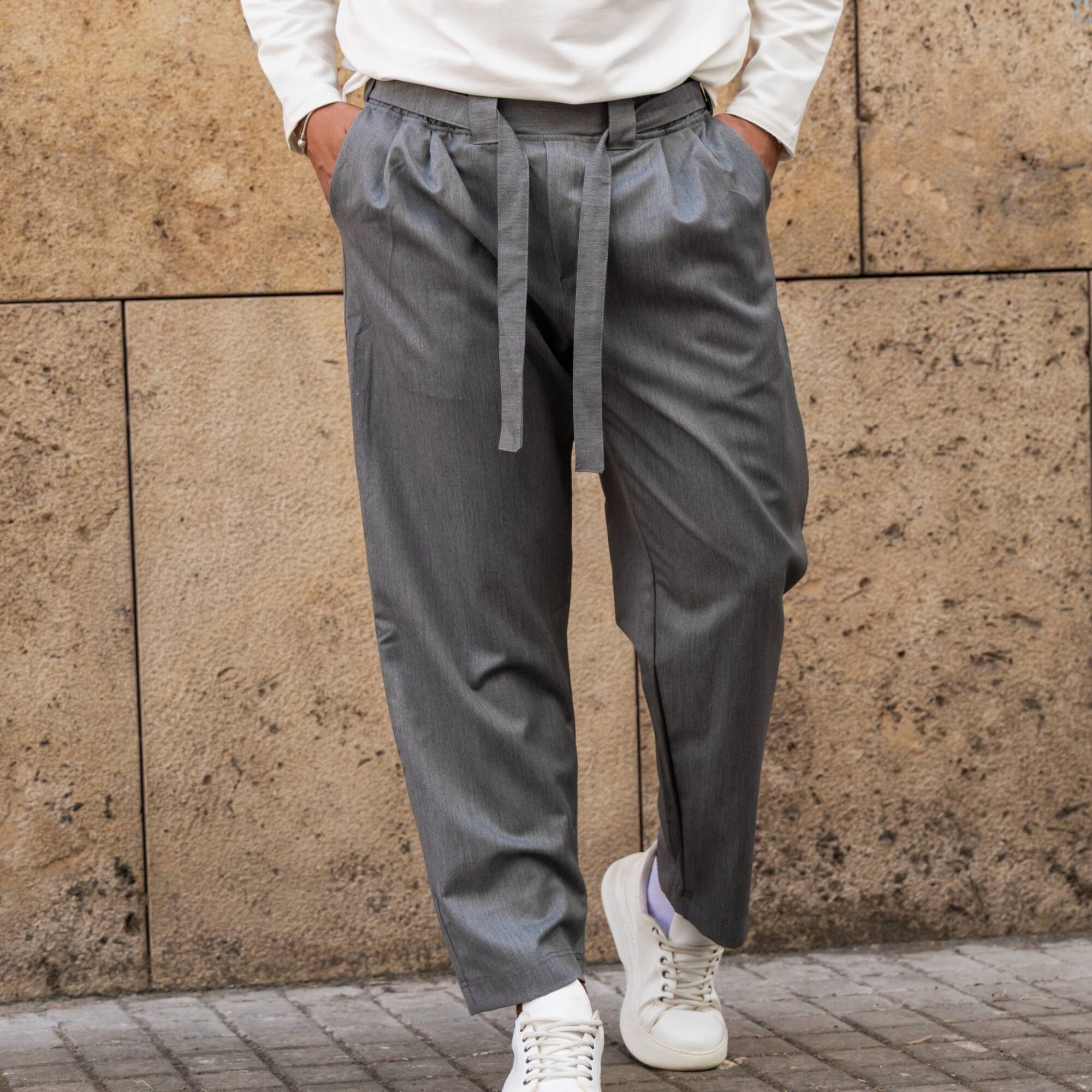 Παντελόνι γκρι baggy με ζώνη